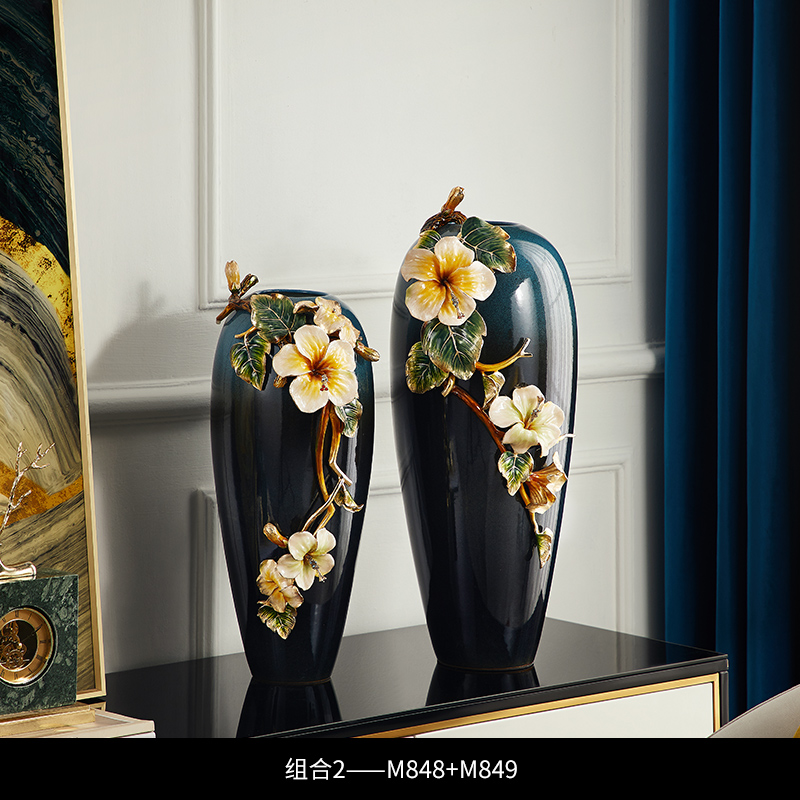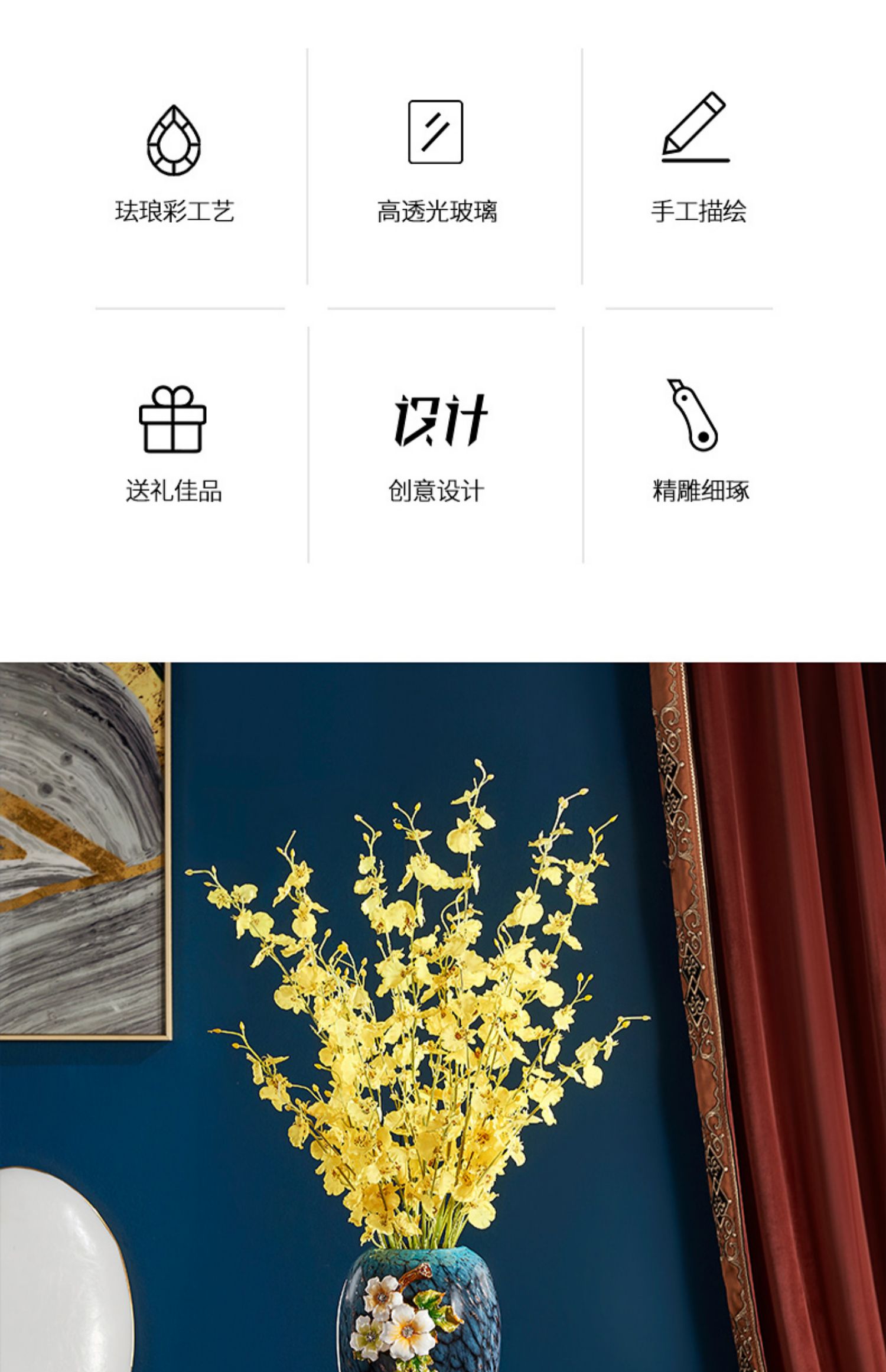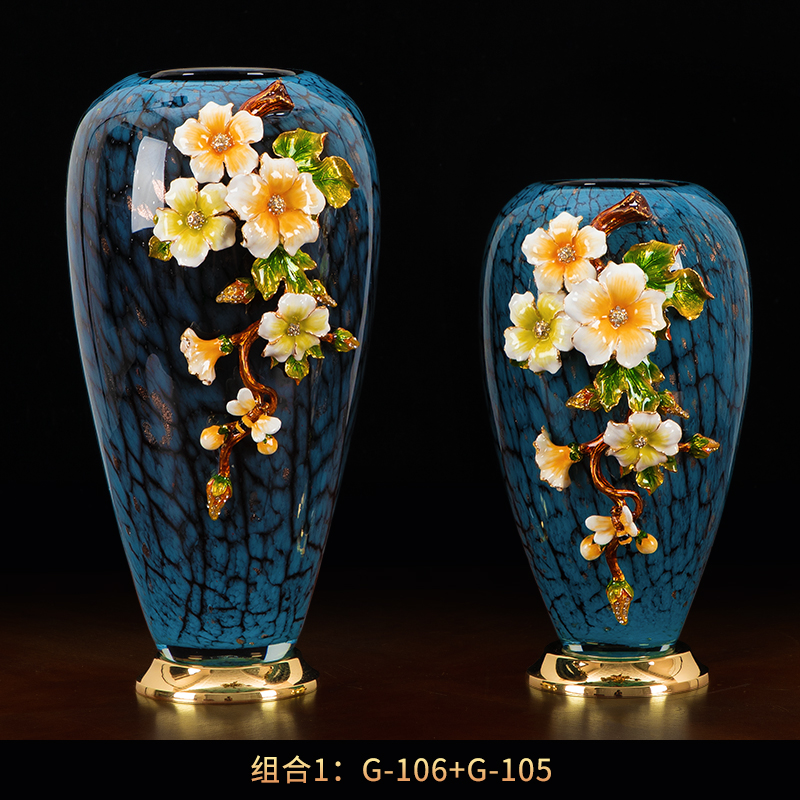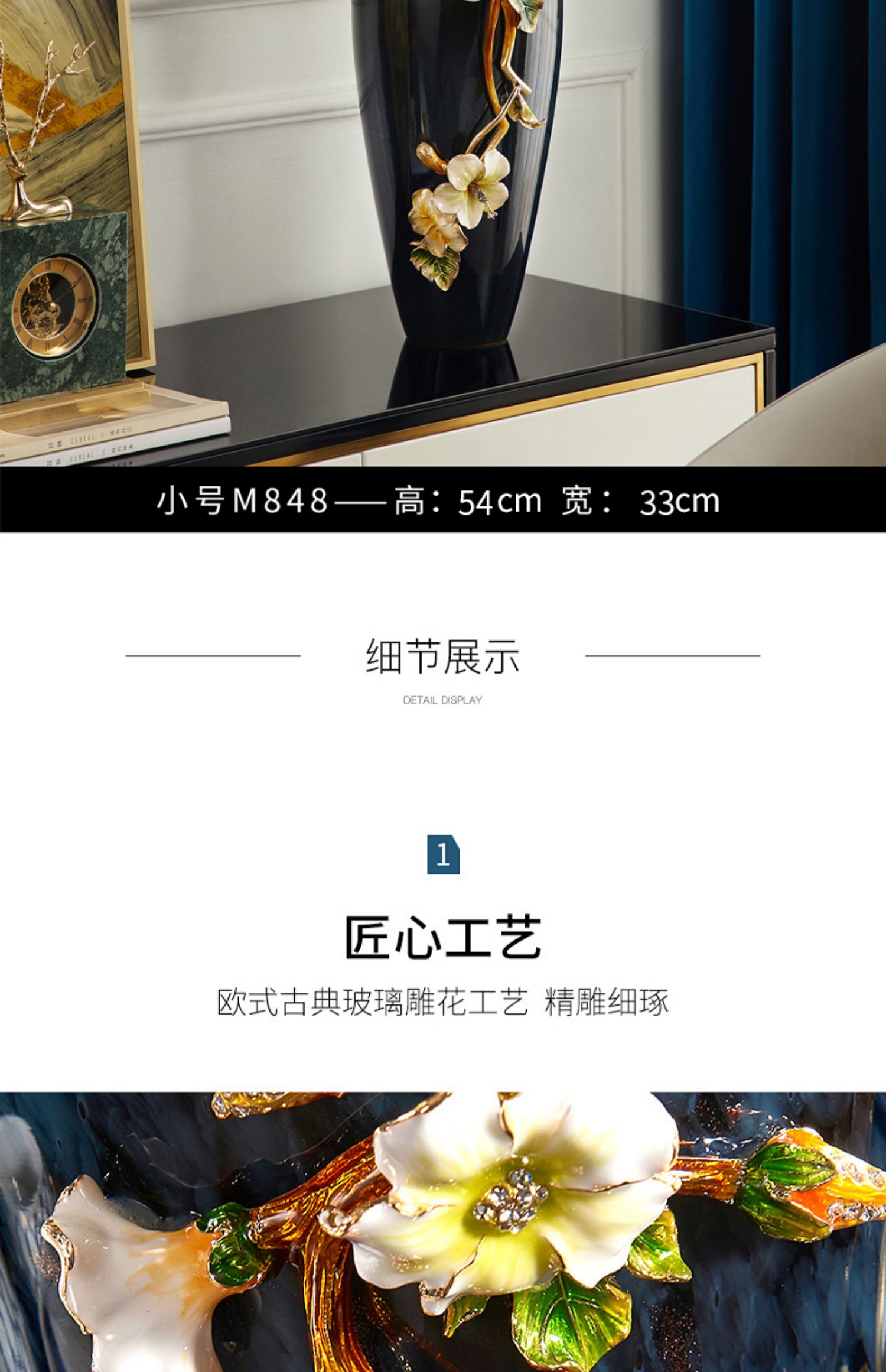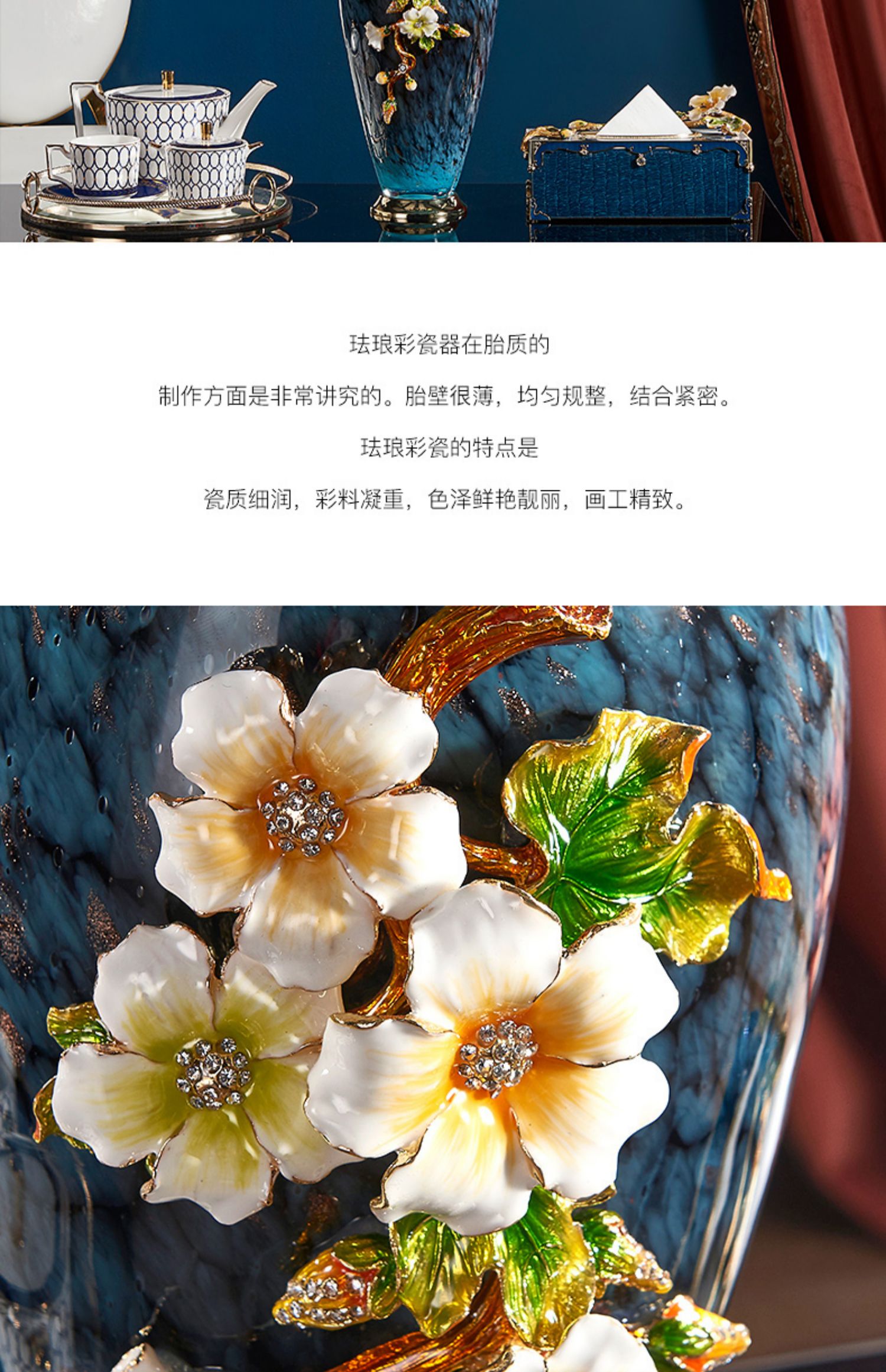 라이트 럭셔리 하이 엔드 에나멜 유리 꽃병 장식 거실 입구 유럽식 홈 꽃-미국식 홈 장식 9 벨벳