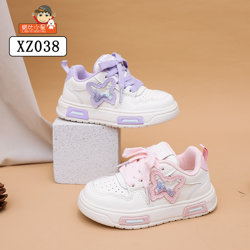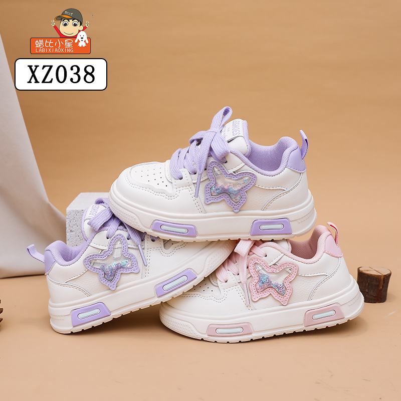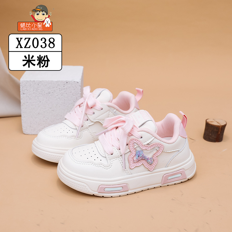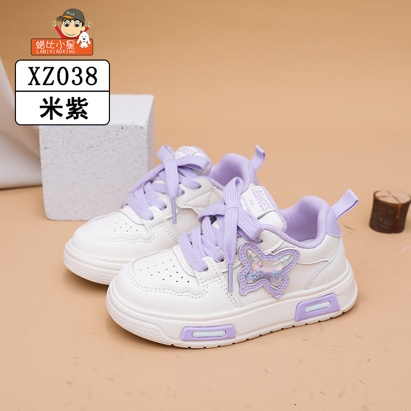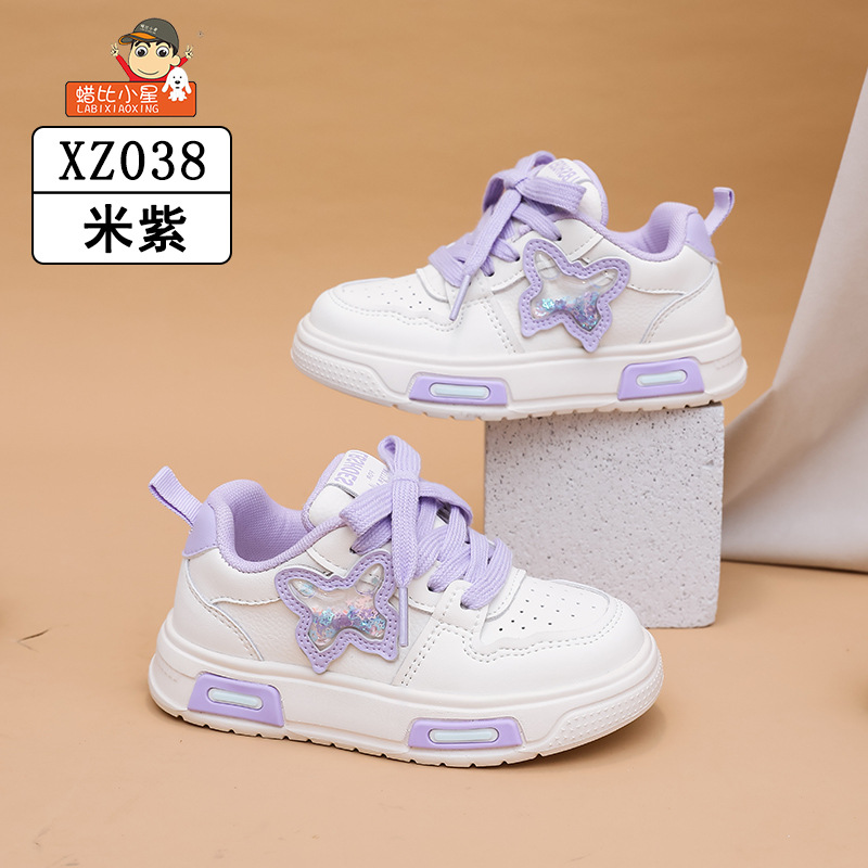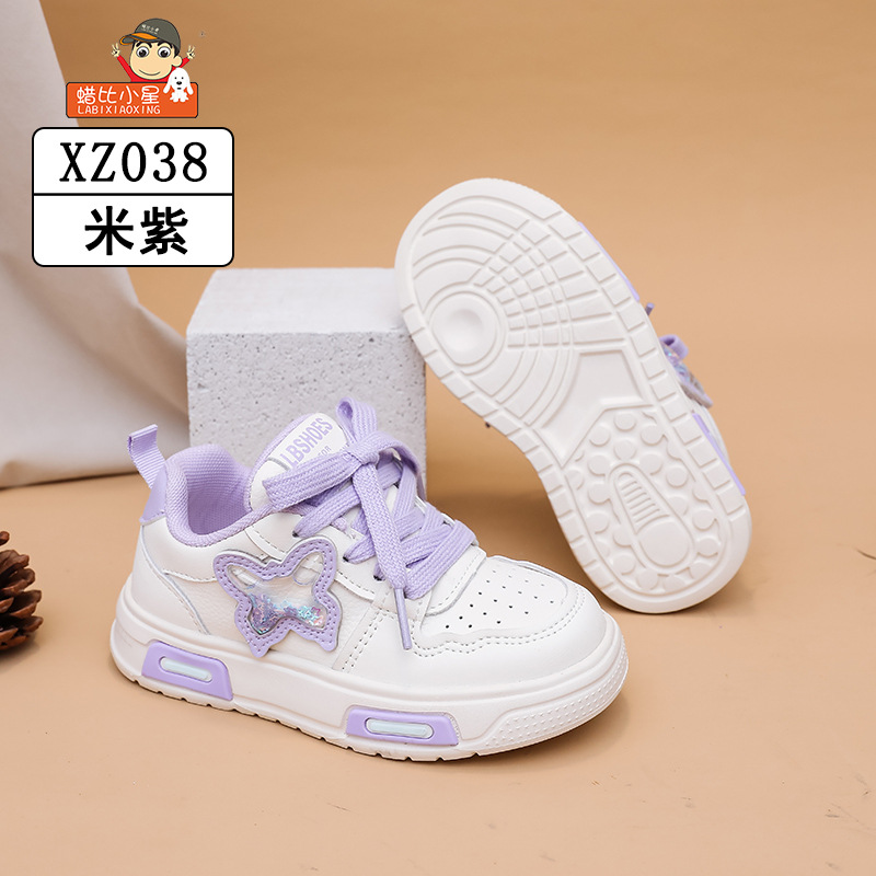 왁스 작은 별 차가운 끈끈한 빛 단독 슈퍼 섬유 가죽 소년 및 소녀 운동화 어린이 봄과 가을 새로운 부드러운 단독 흰색 신발