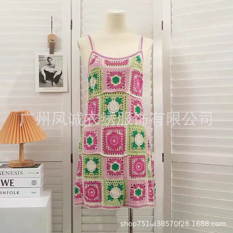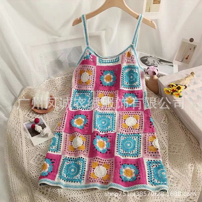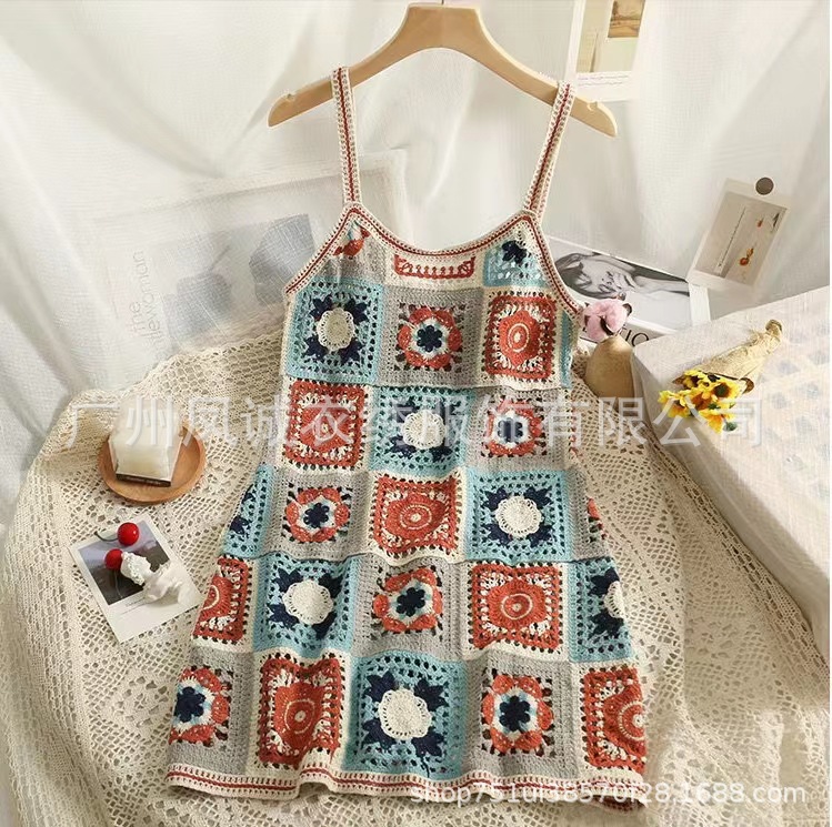 빈티지 컬러 블록 플레이드 할로우 아웃 슬링 원피스 여성용 틈새 디자인 센스 현 우아한 스타일 섹시한 핫 걸의 타이트 웨이스트 스커트스토어 가기