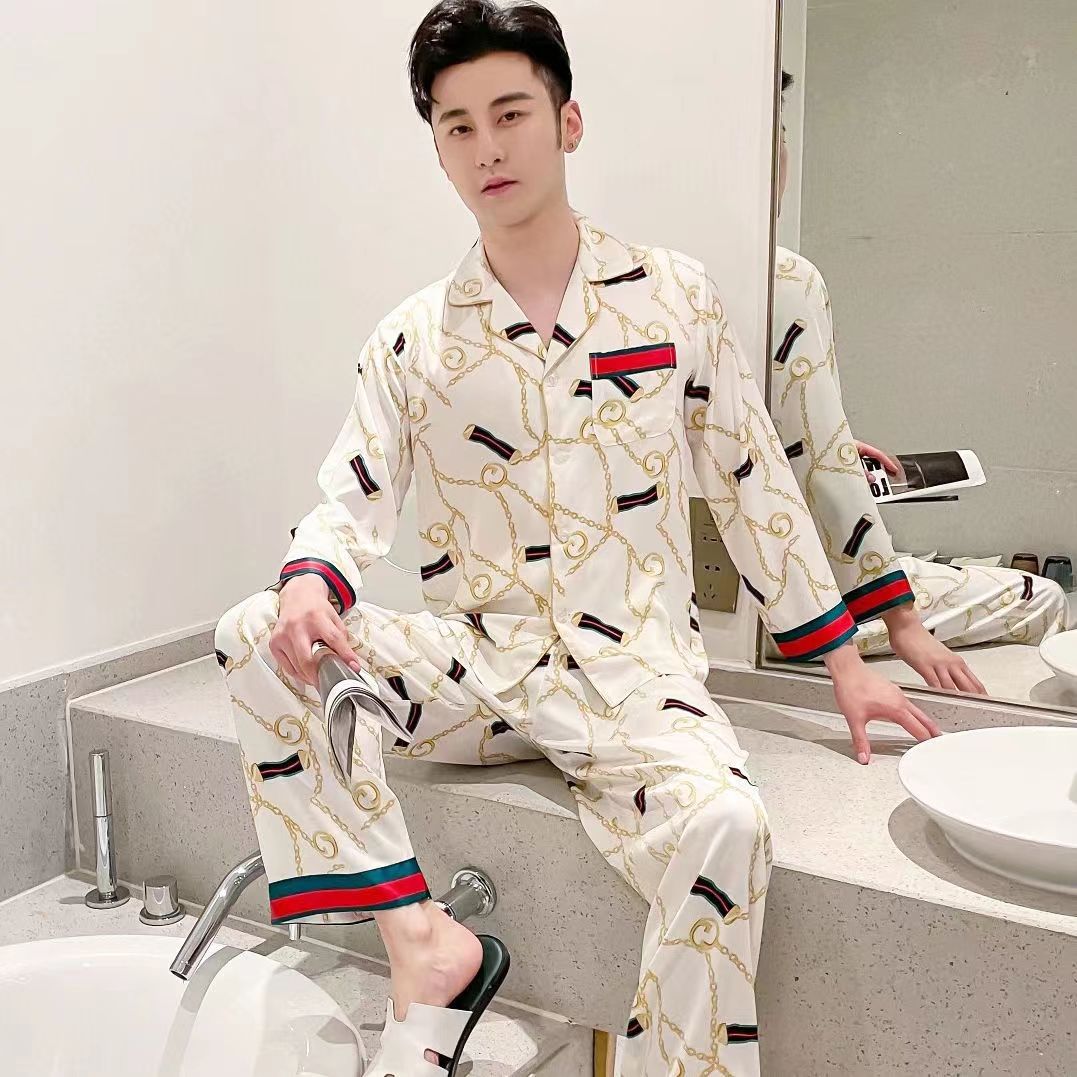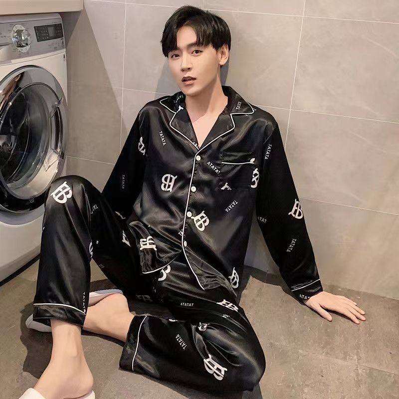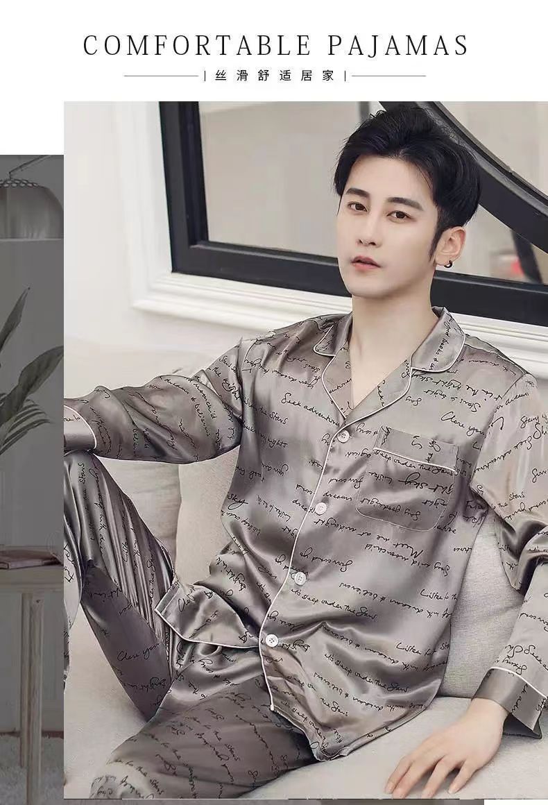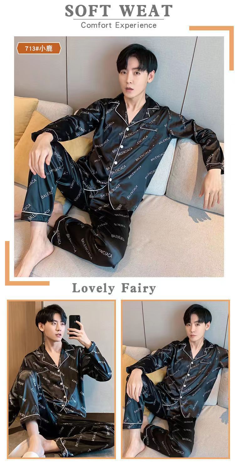 2025 잠옷 남자의 봄과 가을 긴 소매 실크 청소년 홈 아이스 실크 얇은 홈 옷 세트 머리스토어 가기