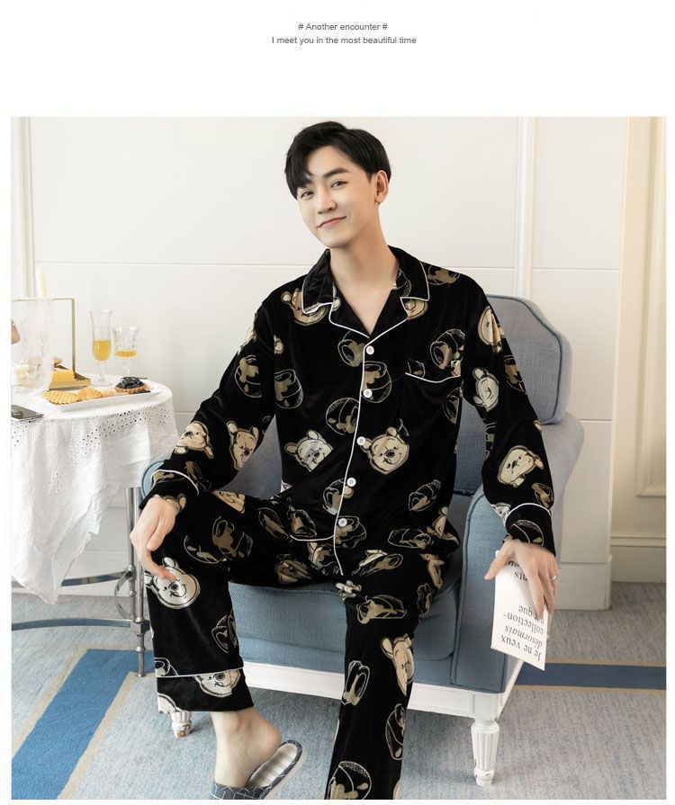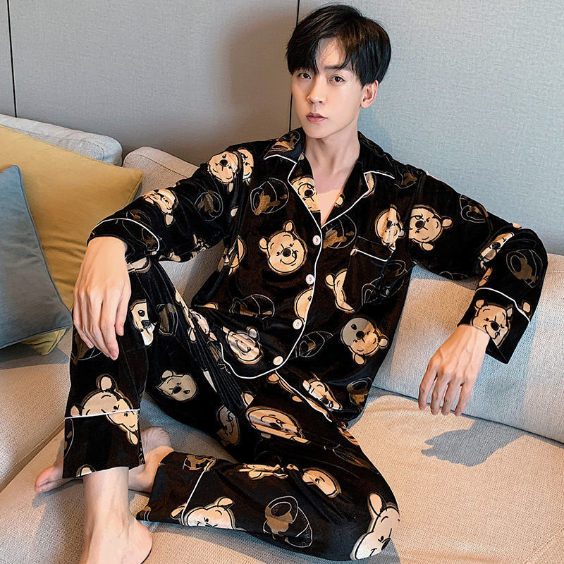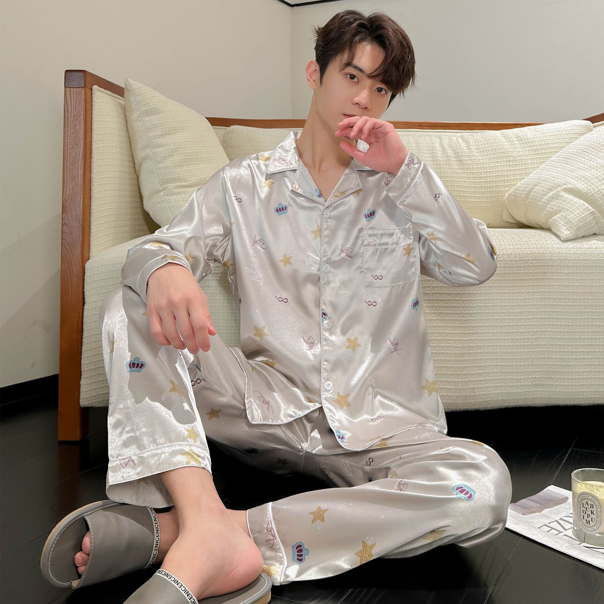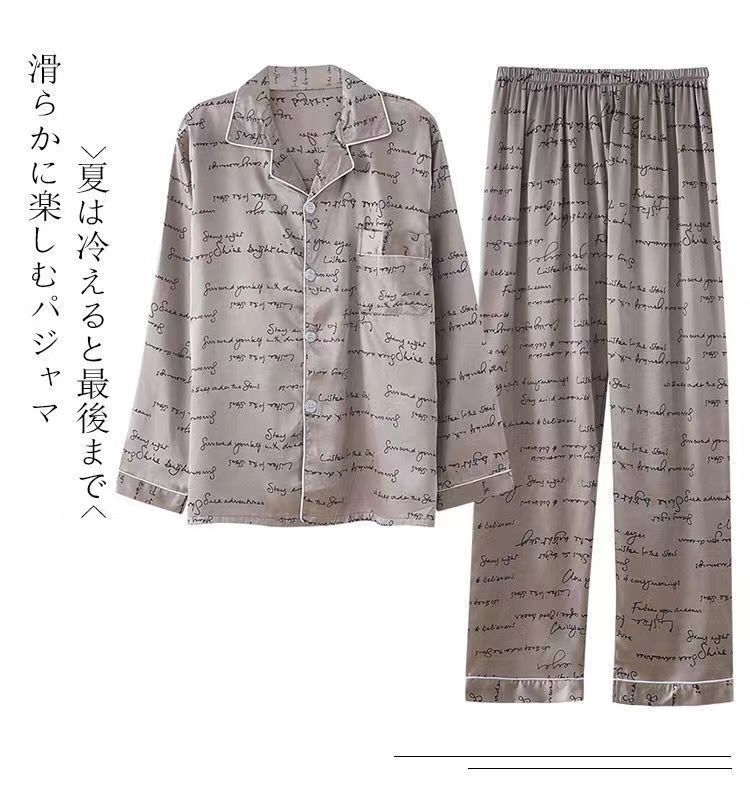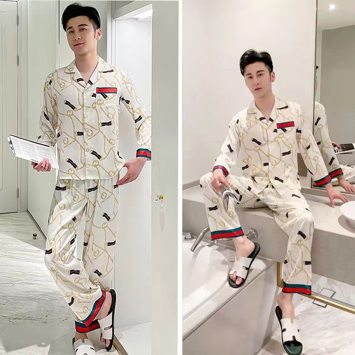 2025 잠옷 남자의 봄과 가을 긴 소매 실크 청소년 홈 아이스 실크 얇은 홈 옷 세트 머리스토어 가기