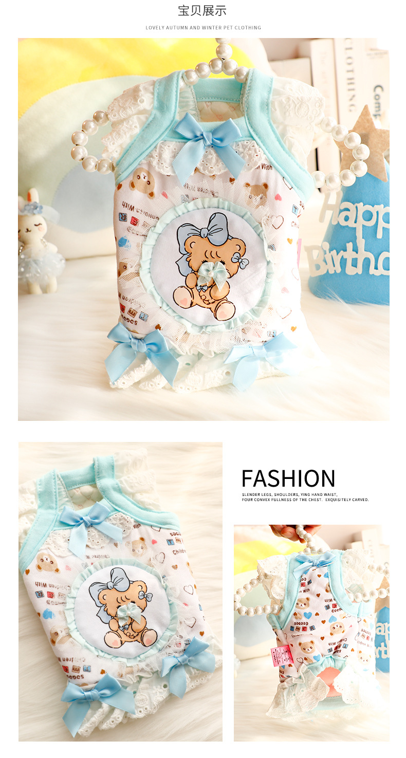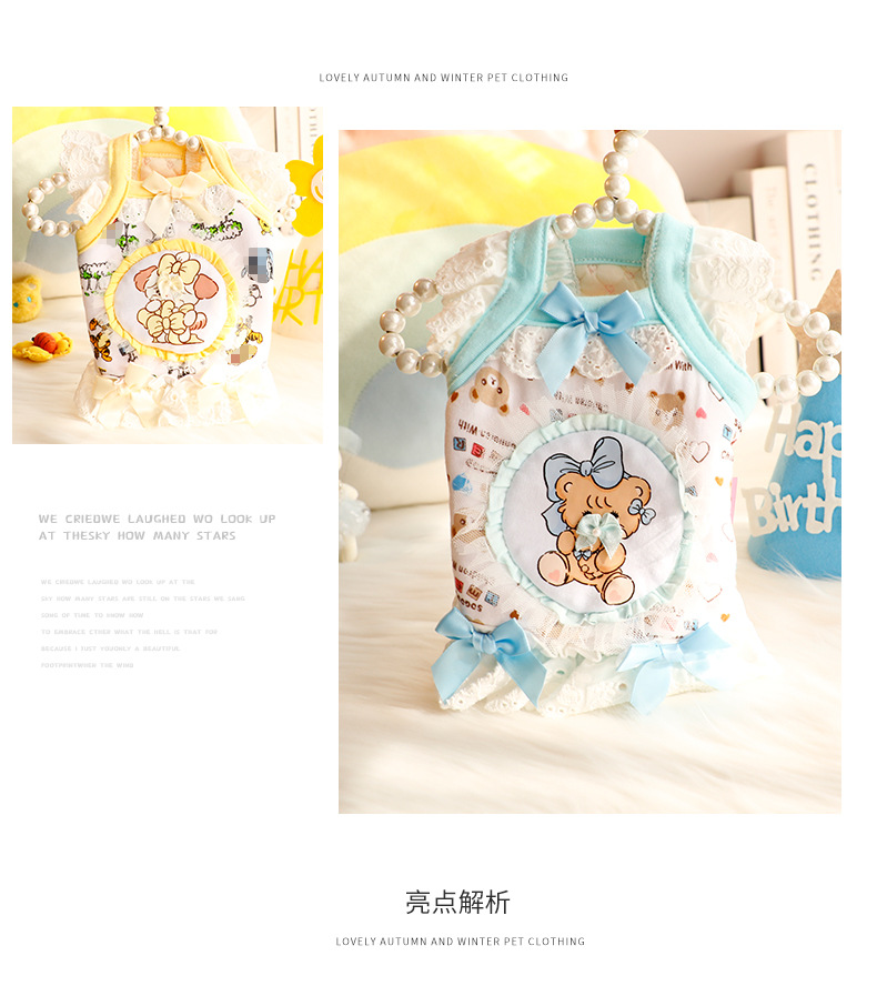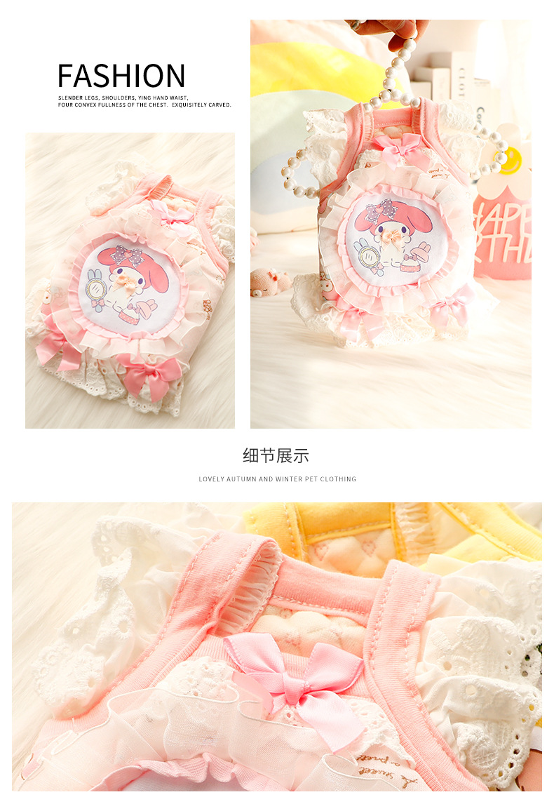 개 옷 가을과 겨울 두꺼운 고양이 공주 원피스 레이스 면화 패딩 재킷 만화 귀여운 작은 개 테디 애완 동물 6585