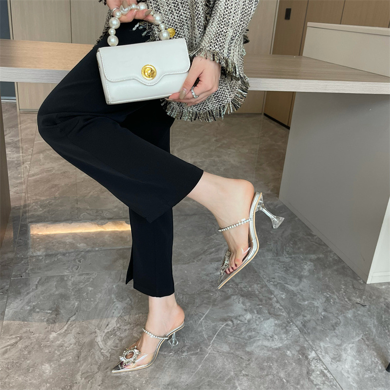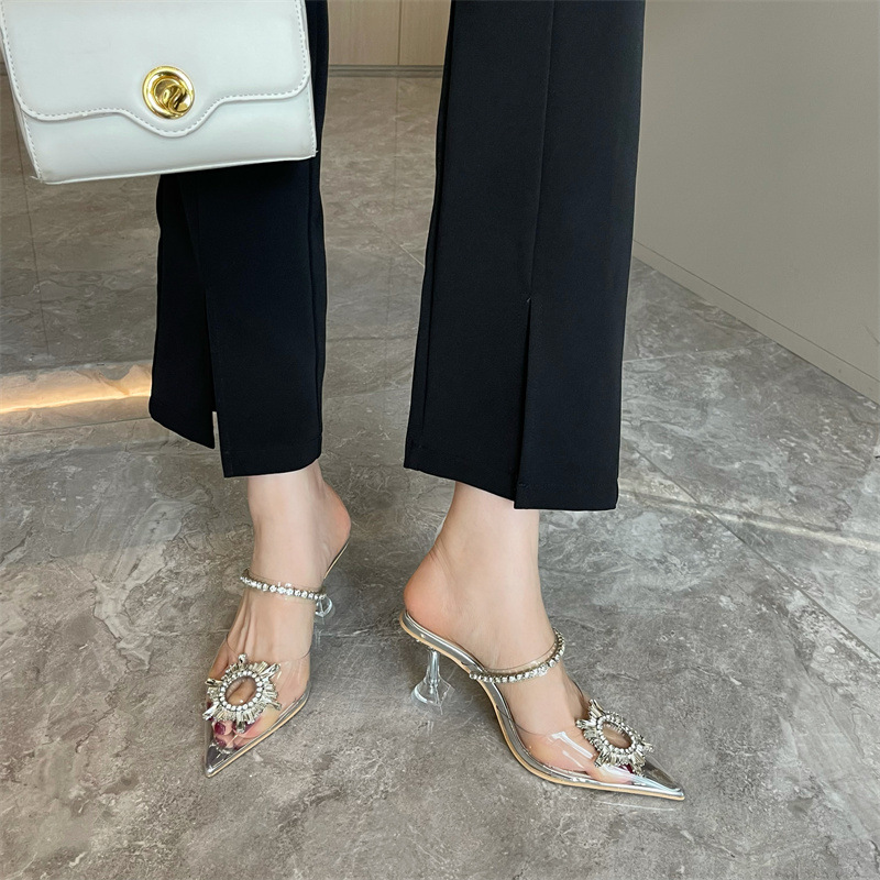 봄 2025 포시즌 슈즈 워터 컵 라인스톤 버클 투명 여성용 바오 터우 슈즈 재고 사이즈 35-39