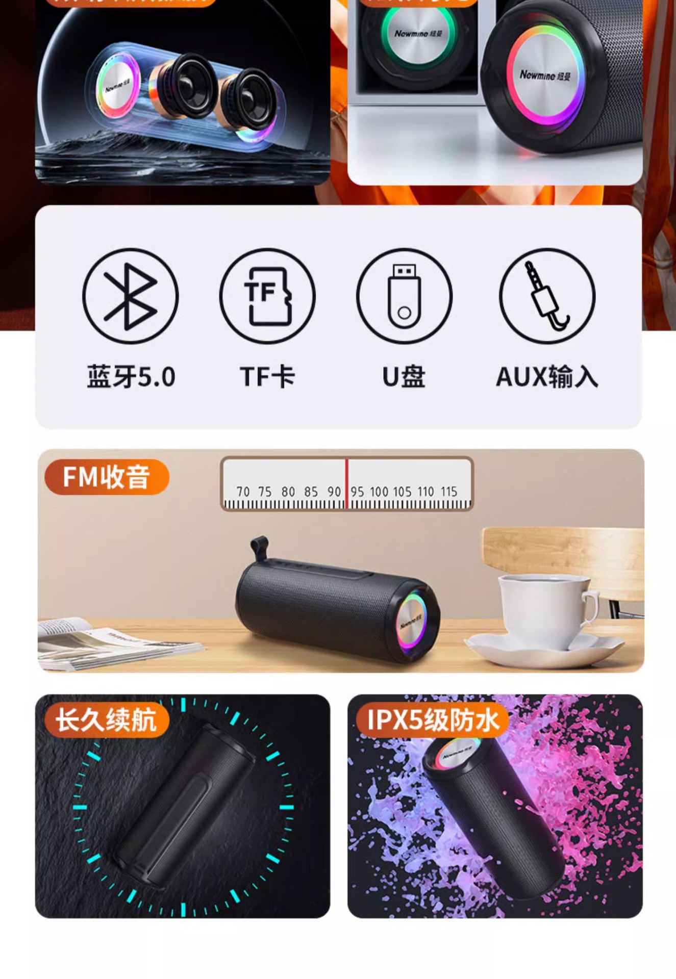 뉴먼 BT76 무선 블루투스 스피커 홈 듀얼 스피커 3D 서라운드 야외 소형 소형 사운드 무거운 서브 우퍼