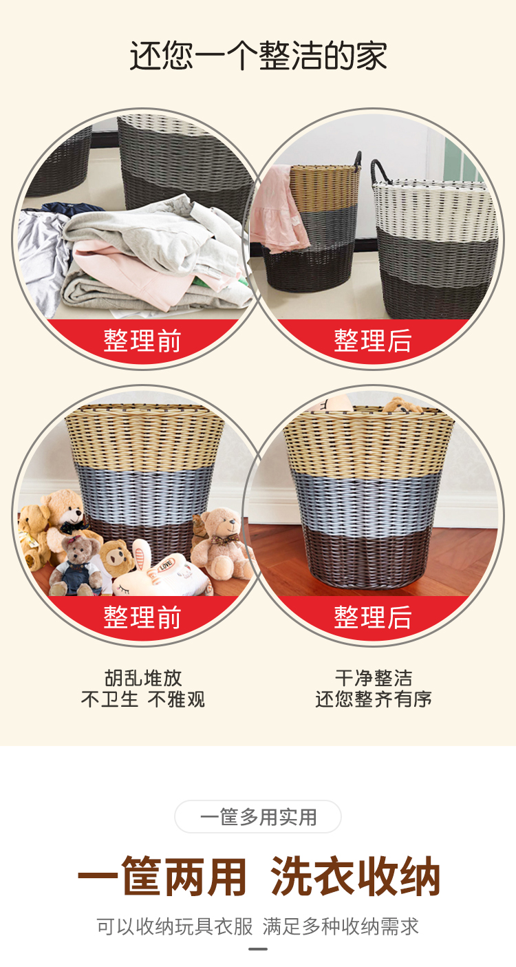 초대형 두꺼운 튜브 더러운 옷 보관 바구니 더러운 옷 바구니 가정용 세탁물 등나무 모양의 바구니 보관 옷 바구니 9 벨벳스토어 가기