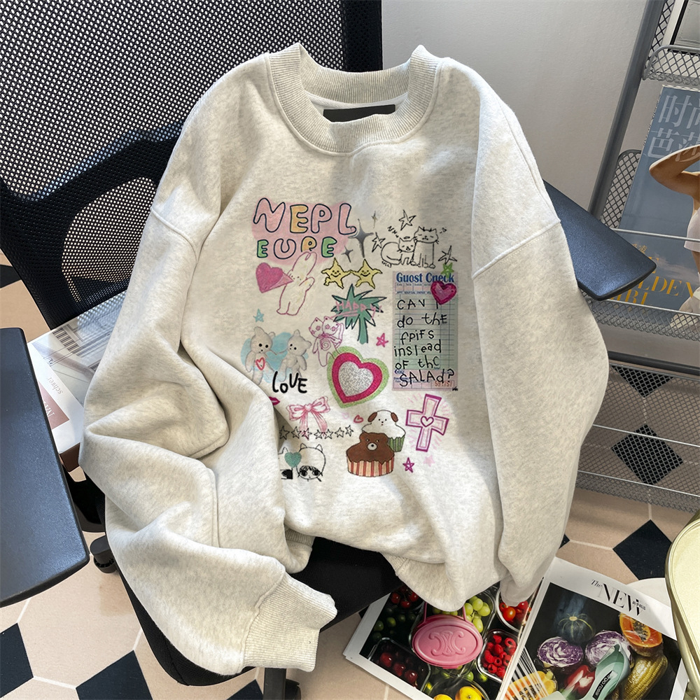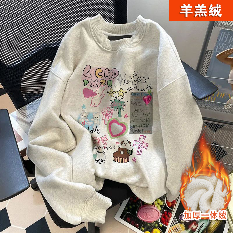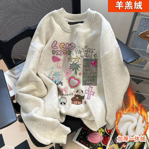 소녀들의 기모 땀 가을 겨울 스타일 큰 어린이 둥근 목 여자 옷 느슨한 한국 캐주얼 겨울 탑