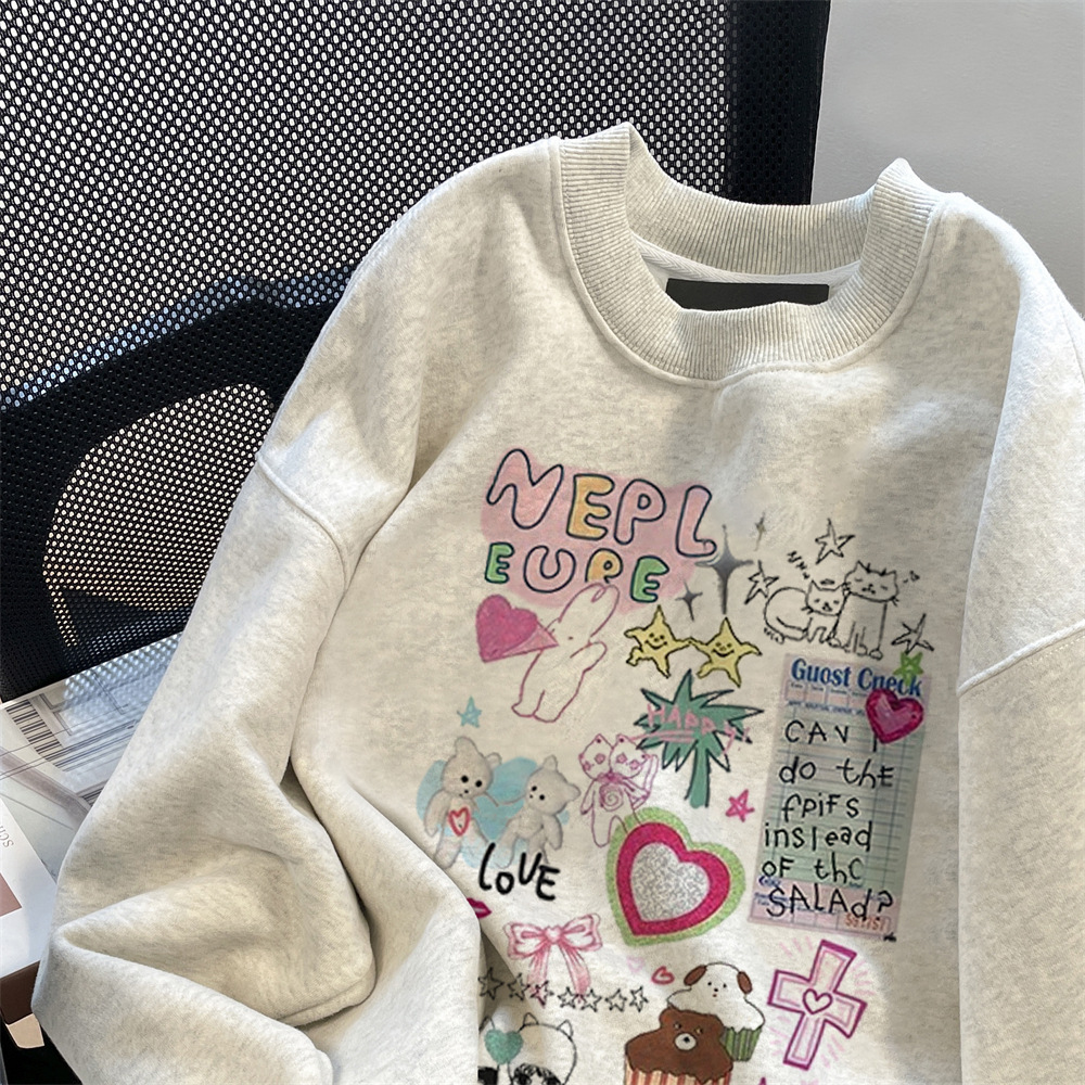 소녀들의 기모 땀 가을 겨울 스타일 큰 어린이 둥근 목 여자 옷 느슨한 한국 캐주얼 겨울 탑스토어 가기