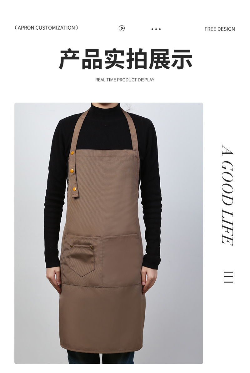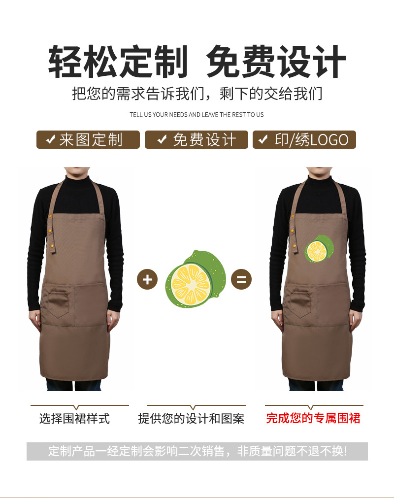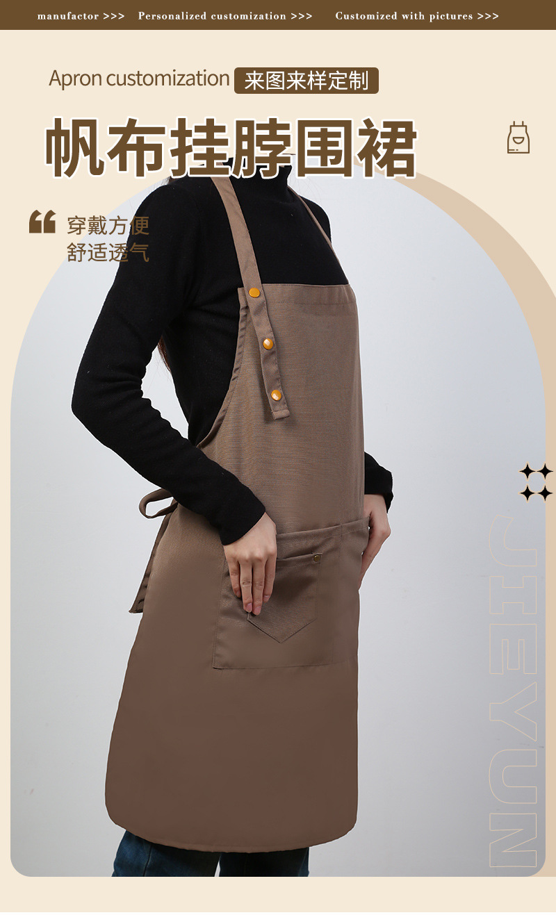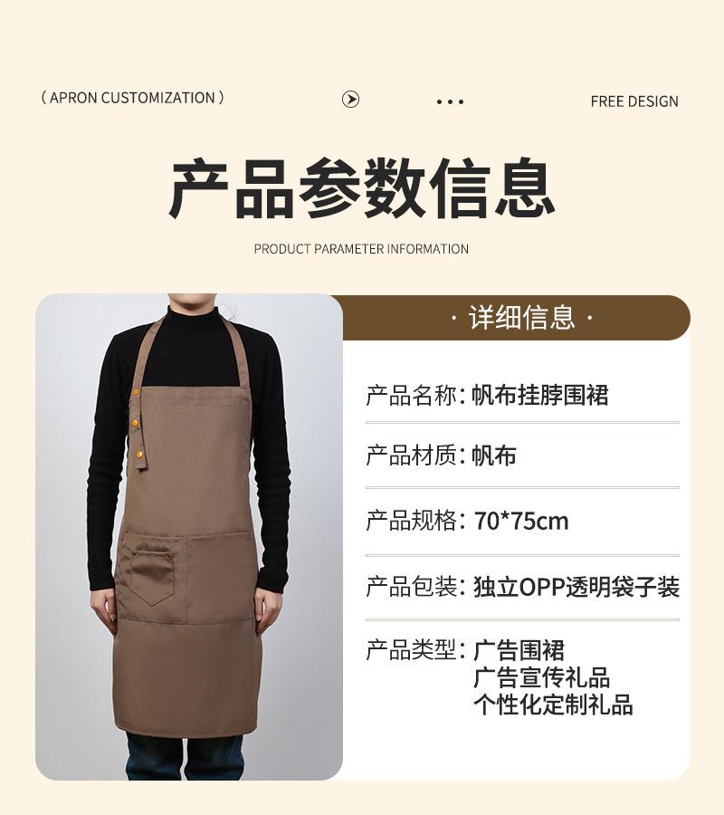 로고가 인쇄된 맞춤형 홀터넥 캔버스 앞치마 커피 컬러 주방 홈 작업 스커트 케이터링 밀크티 커피숍 턱받이