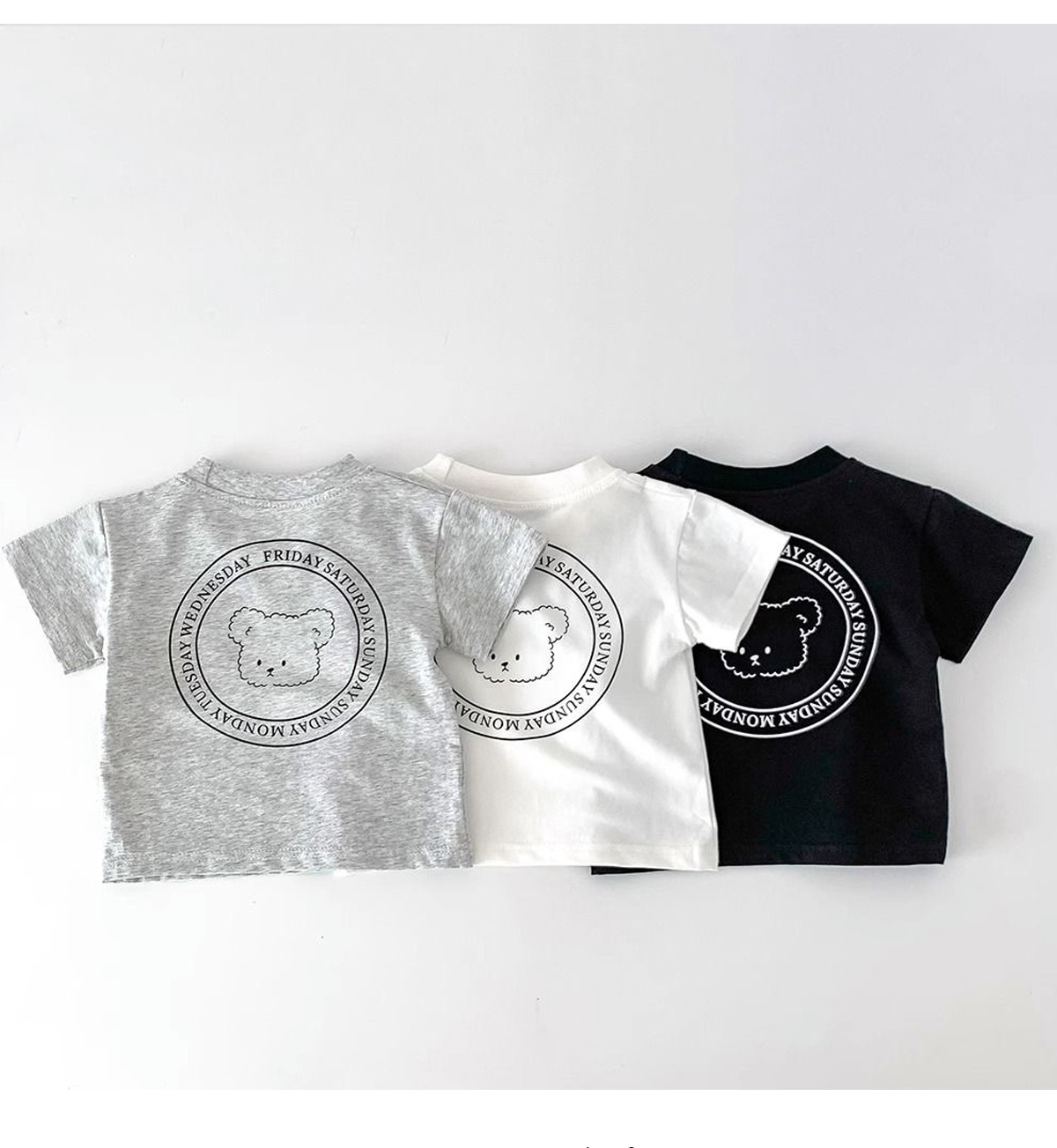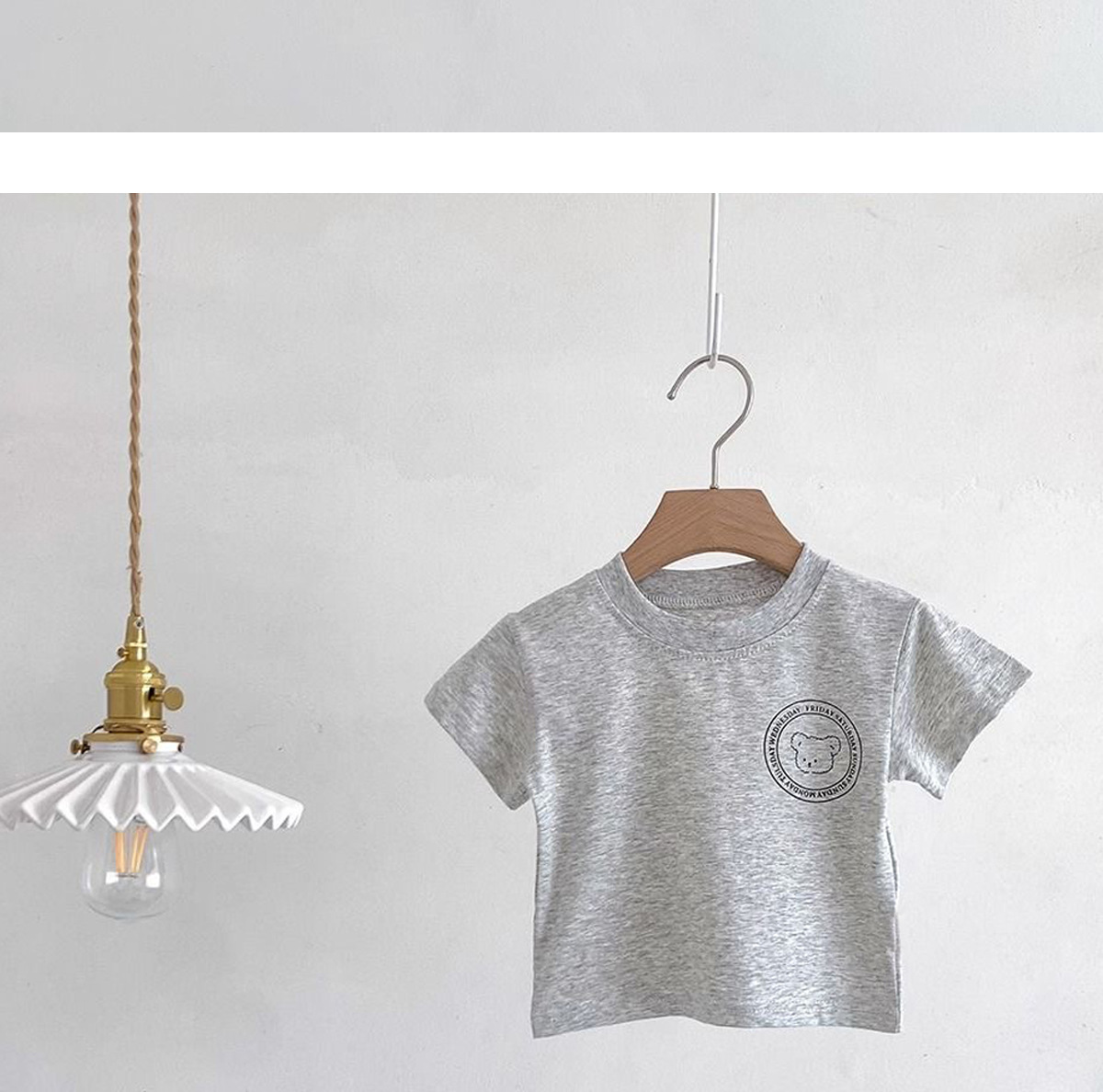 어린이 여름 면화 반팔 티셔츠 만화 곰 중소 어린이 및 어린이 아기의 승무원 귀여운 탑 반팔 셔츠스토어 가기