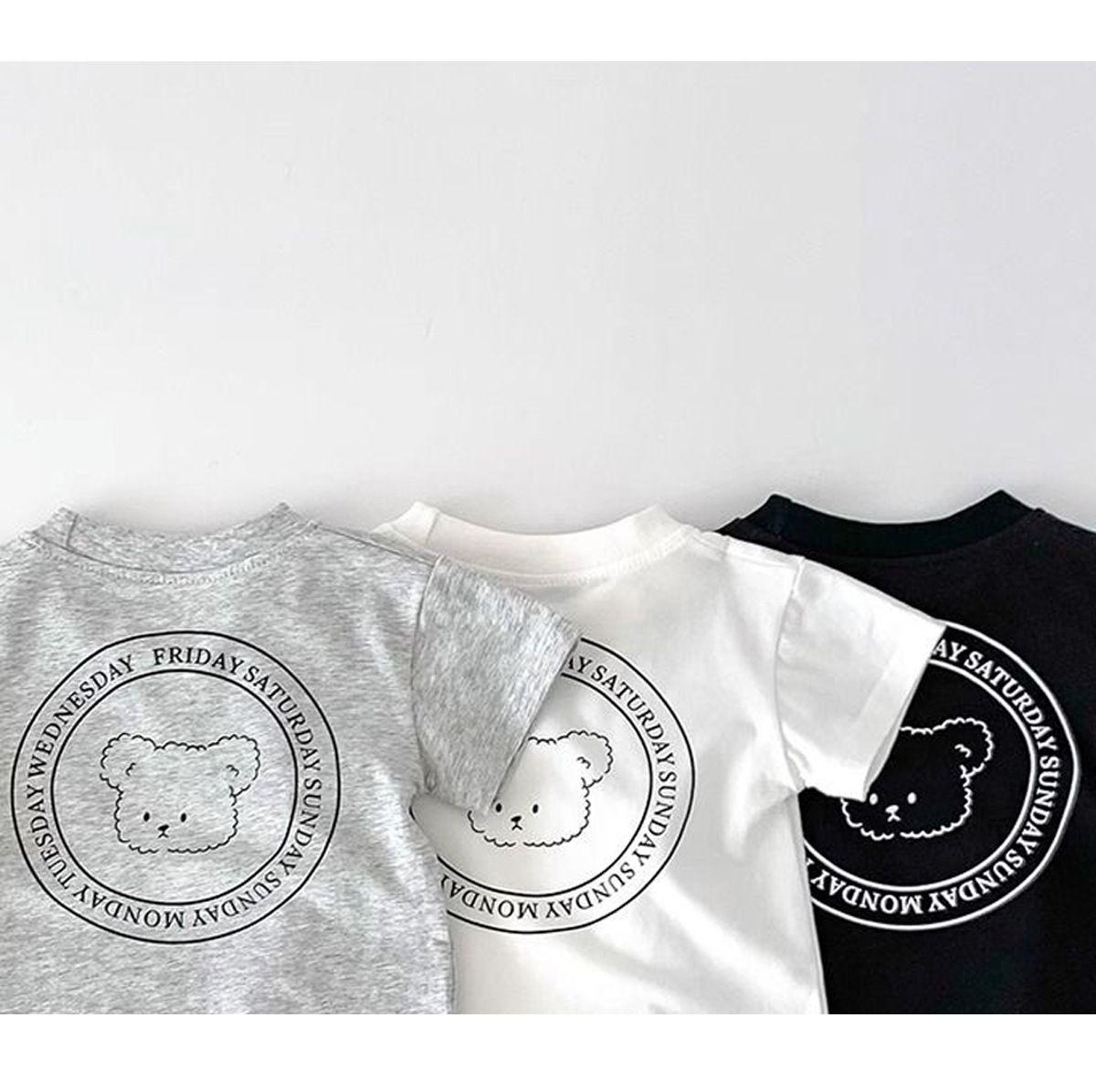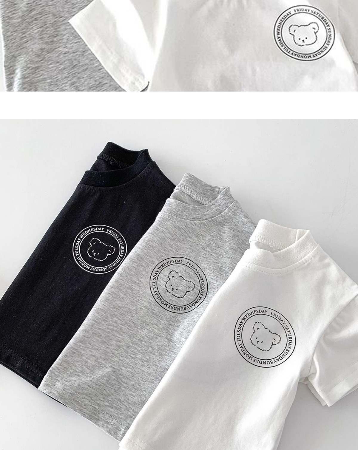 어린이 여름 면화 반팔 티셔츠 만화 곰 중소 어린이 및 어린이 아기의 승무원 귀여운 탑 반팔 셔츠