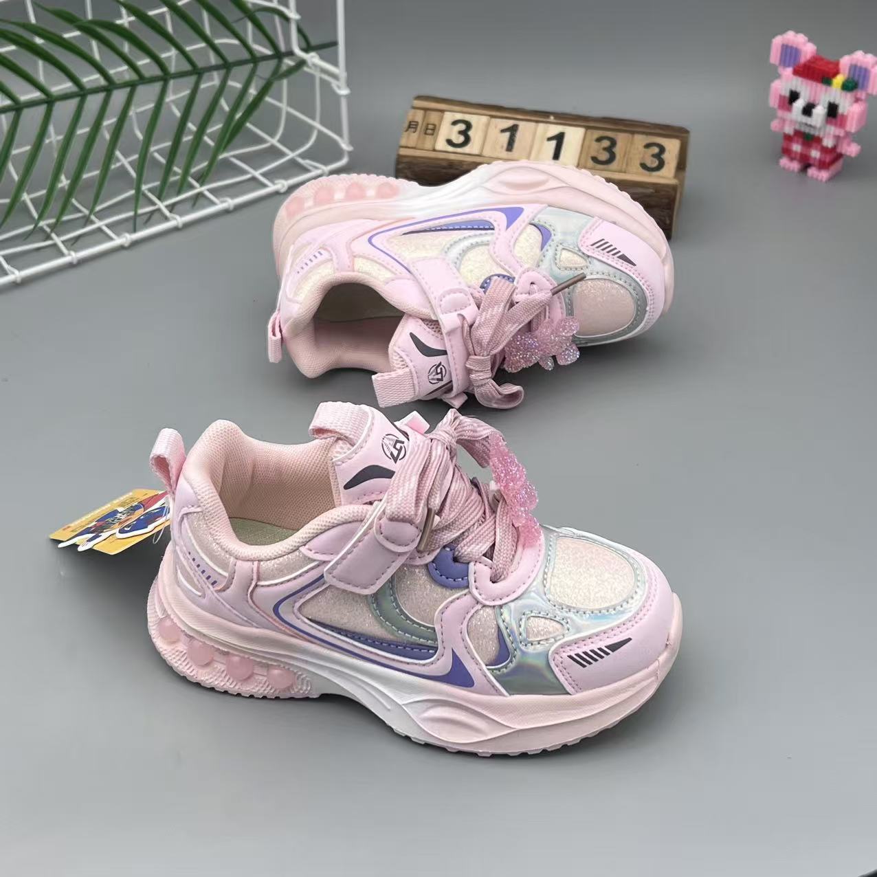 어린이 신발 소녀 2025 봄 새로운 만화 곰 귀여운 액세서리 소녀 신발 가죽 벨크로 운동화스토어 가기
