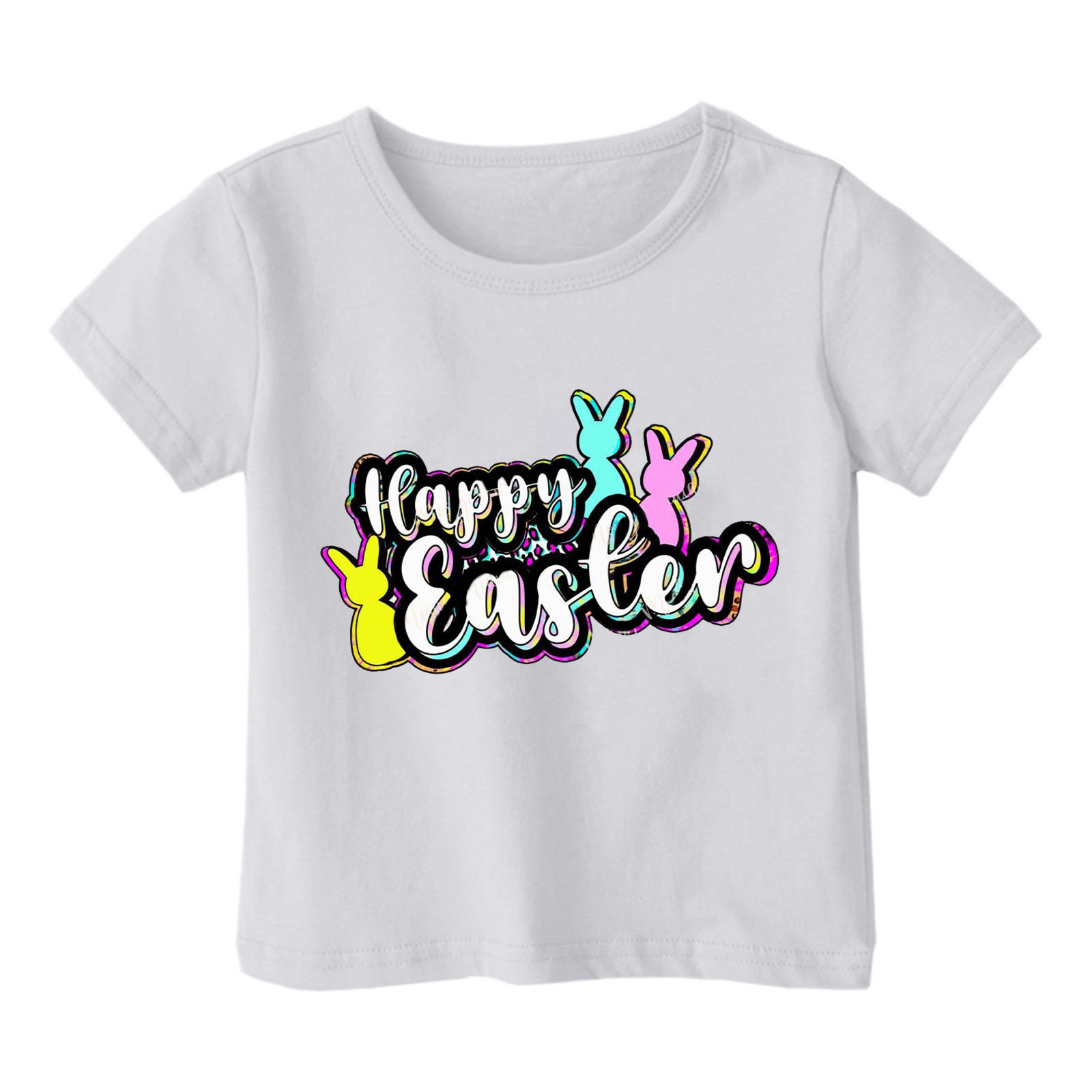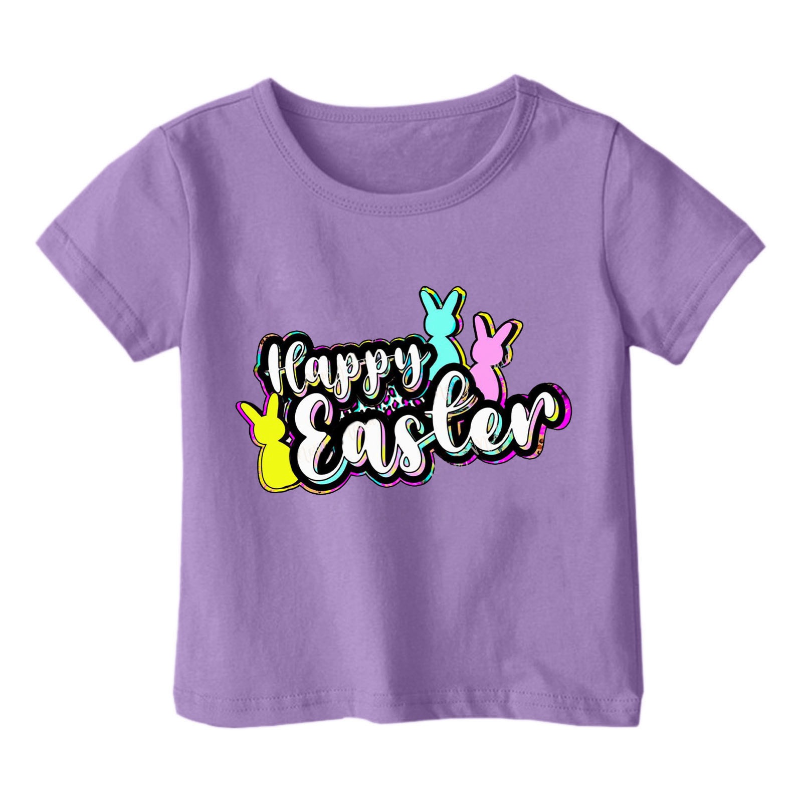 부활절 인쇄 귀여운 어린이 캐주얼 반팔 아마존 소년과 소녀 느슨한 풀오버 탑