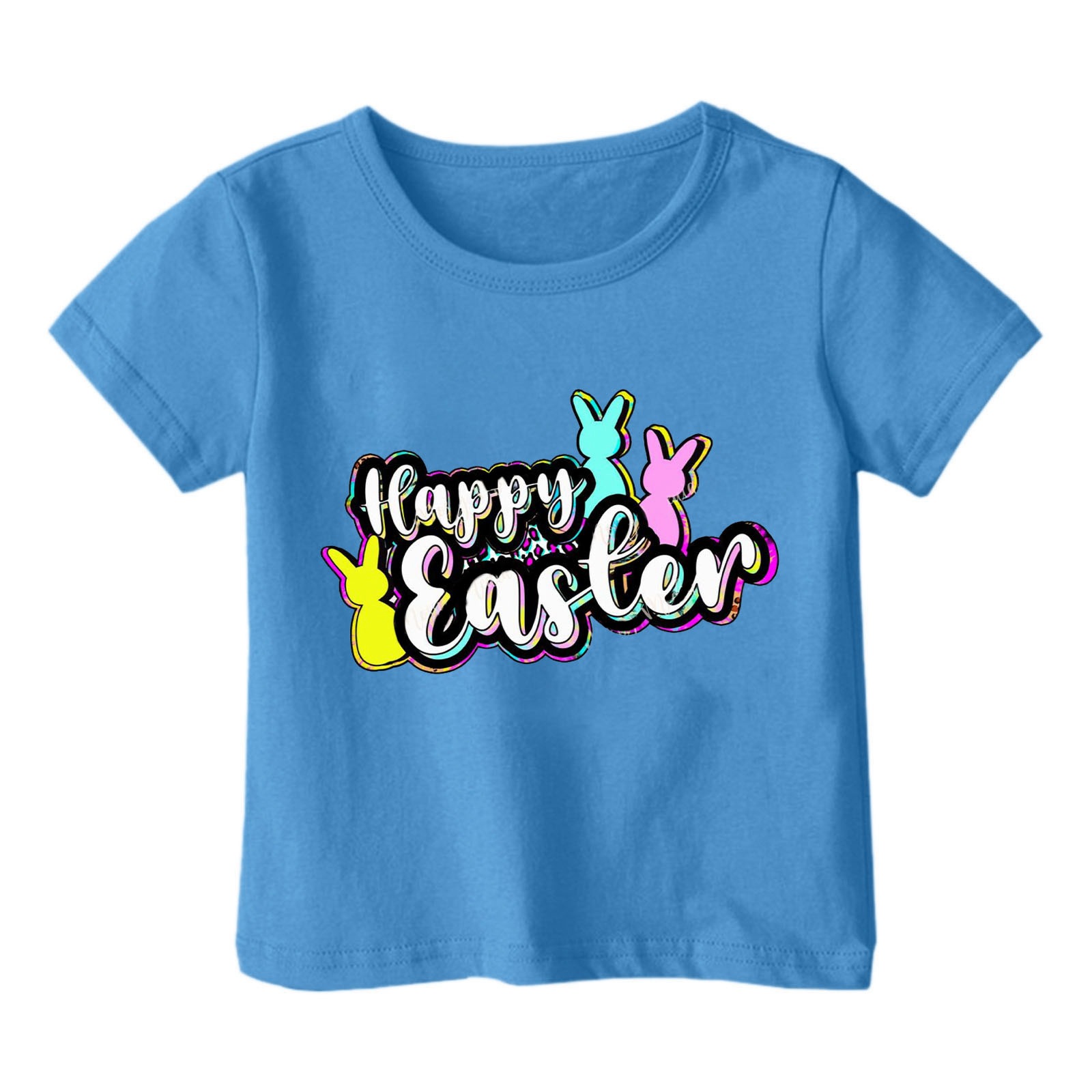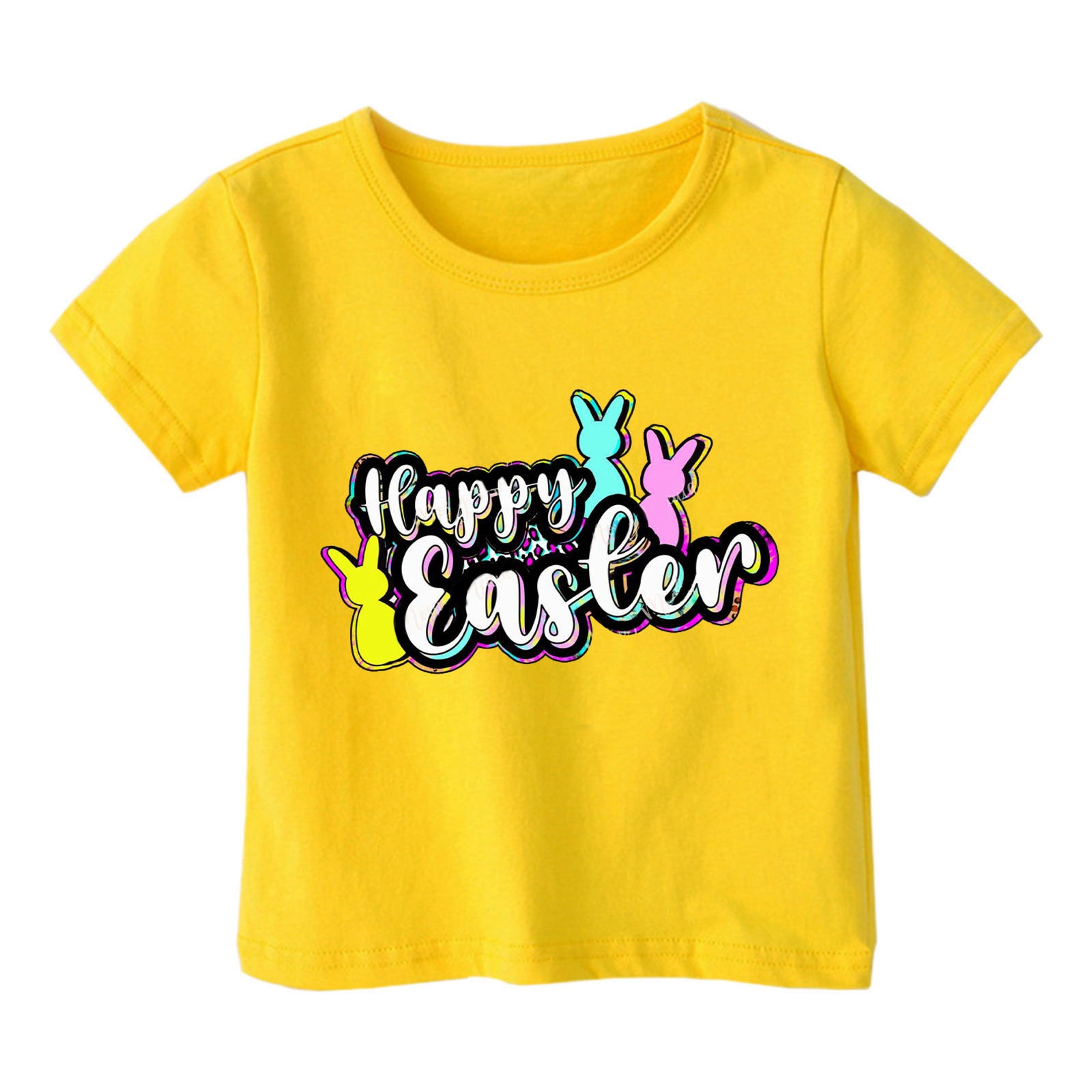 부활절 인쇄 귀여운 어린이 캐주얼 반팔 아마존 소년과 소녀 느슨한 풀오버 탑스토어 가기