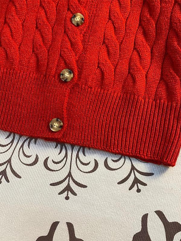 트위스트 스웨터 아메리칸 레트로 새해 셔츠 니트 카디건 탑 여성 가을, 겨울 새로운 틈새 밀크 레드스토어 가기