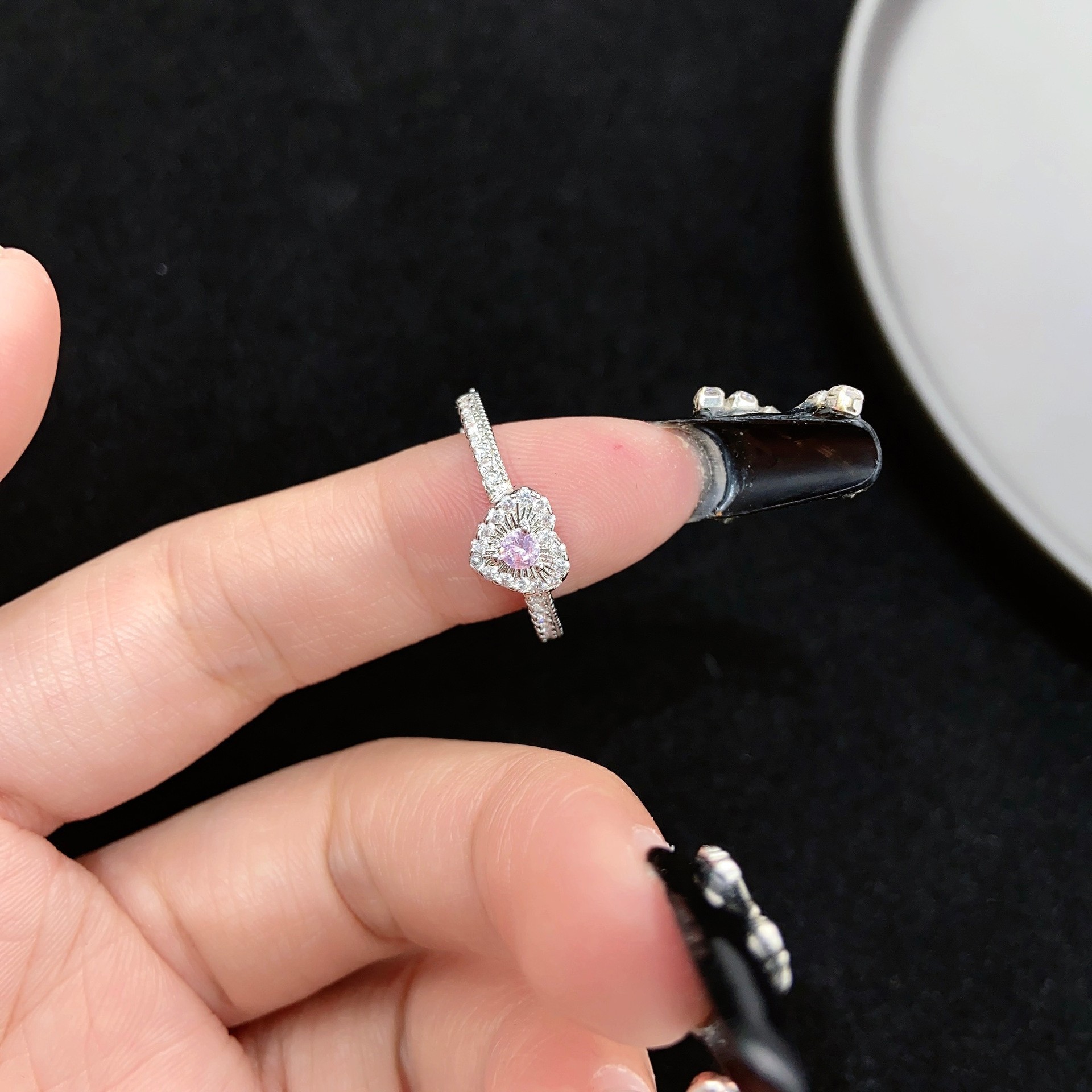 달콤한 핑크 다이아몬드 사랑 오픈 링 여성 틈새 라이트 럭셔리 디자인 패션 절묘한 다목적 성격 링 액세서리스토어 가기