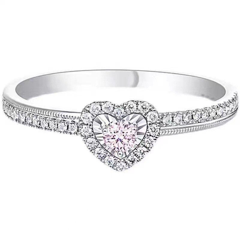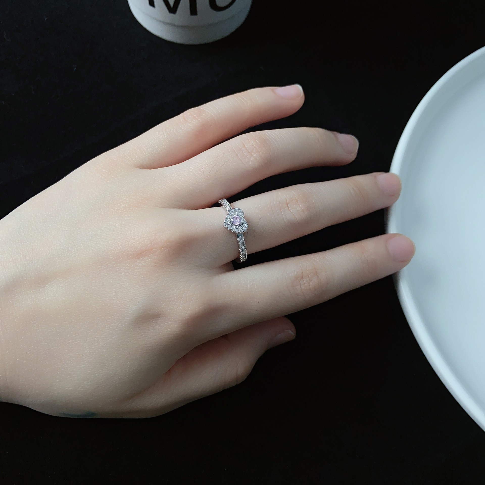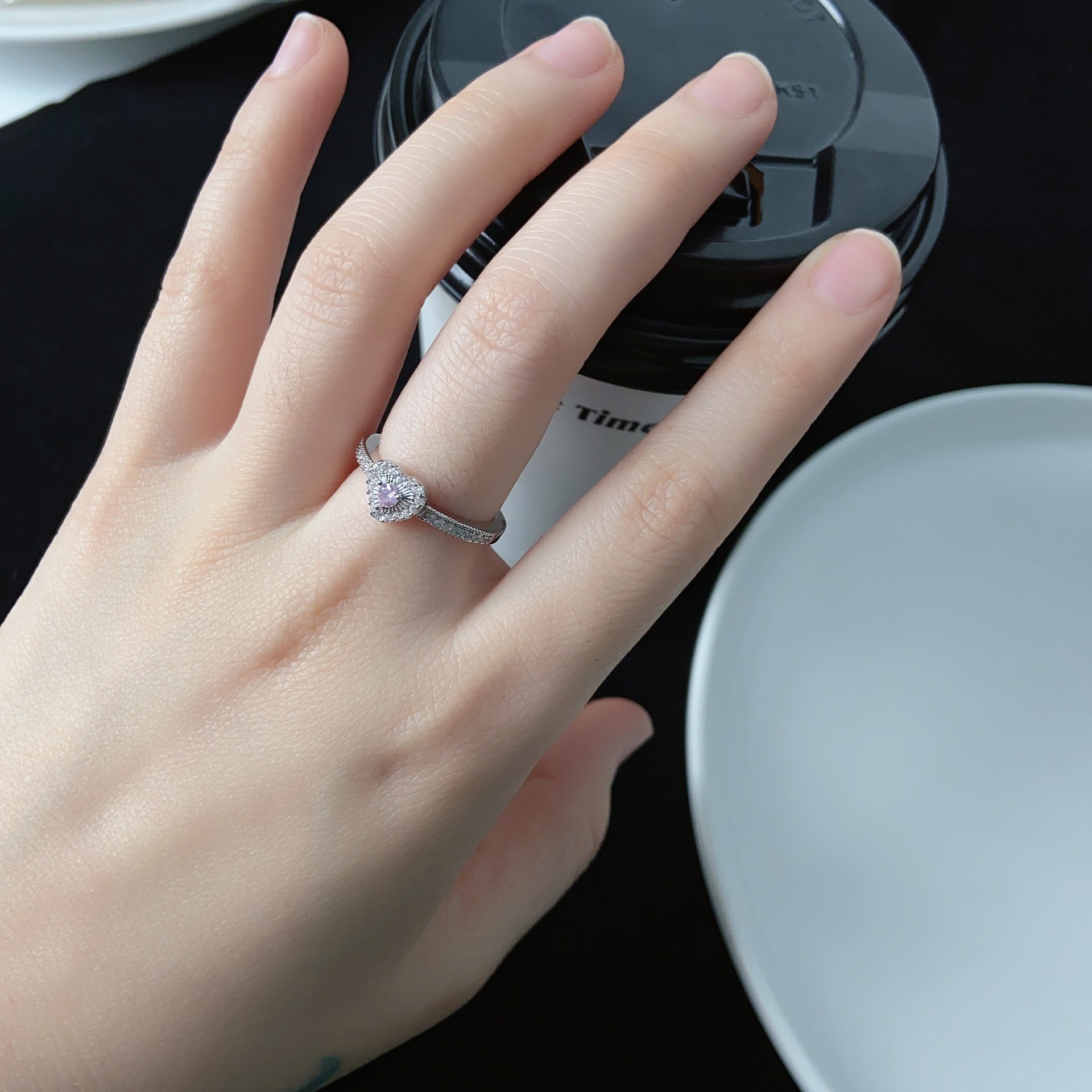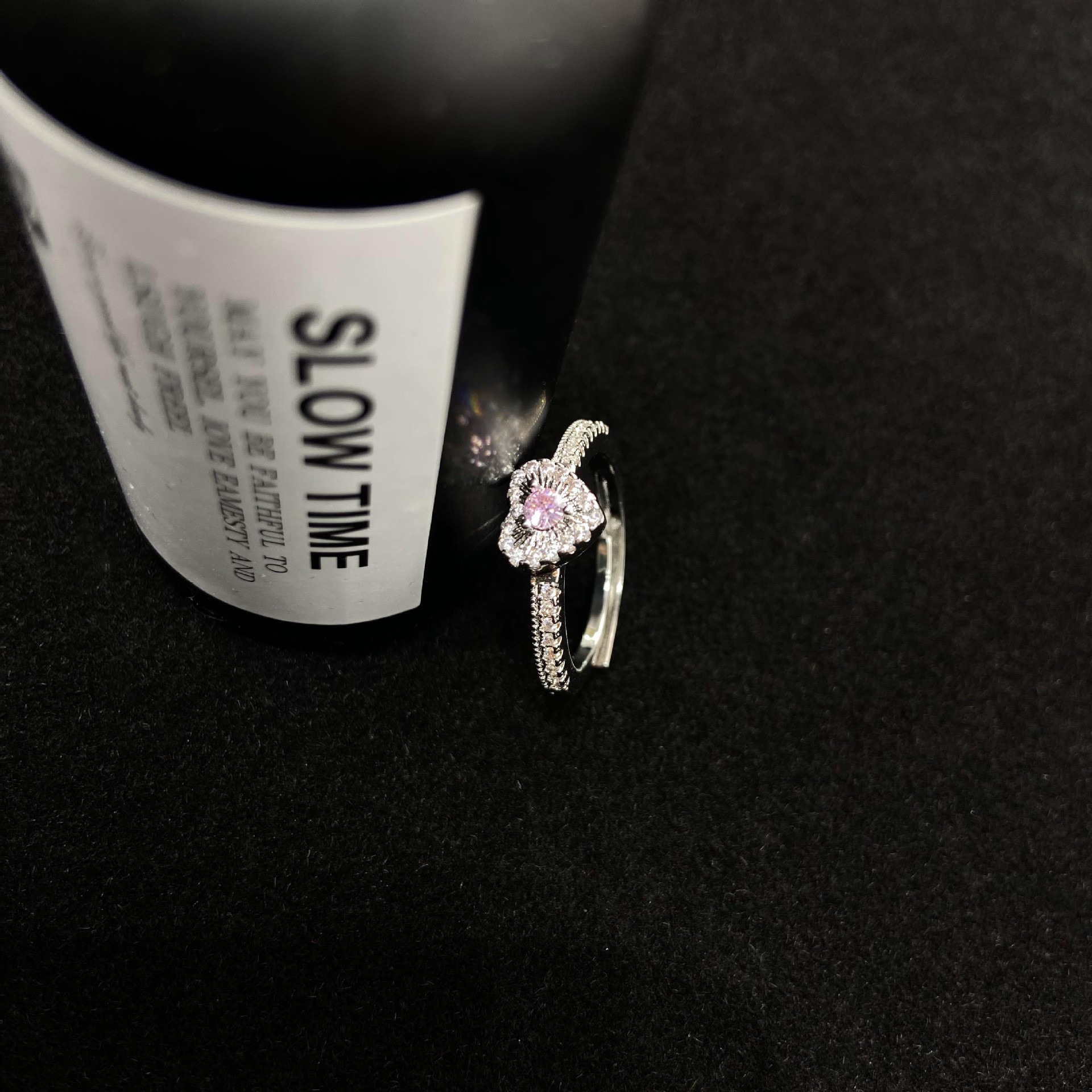 달콤한 핑크 다이아몬드 사랑 오픈 링 여성 틈새 라이트 럭셔리 디자인 패션 절묘한 다목적 성격 링 액세서리