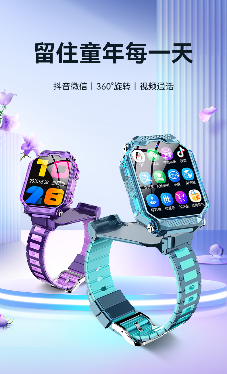 새로운 천재 초등학교 전화 시계 회전 더블 카메라 모든 Netcom 어린이 스마트 시계 포지셔닝 소년 소녀