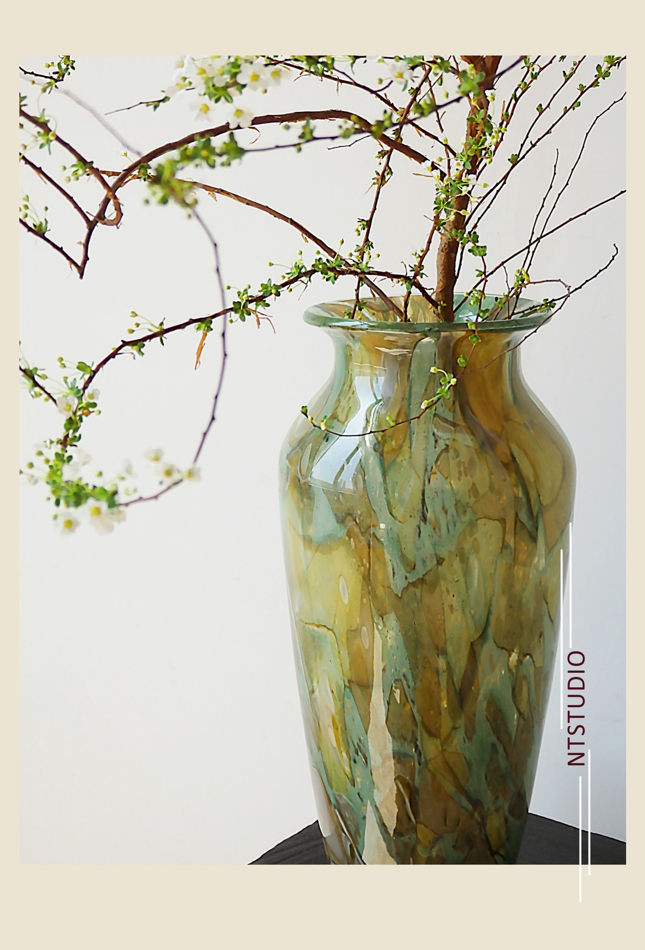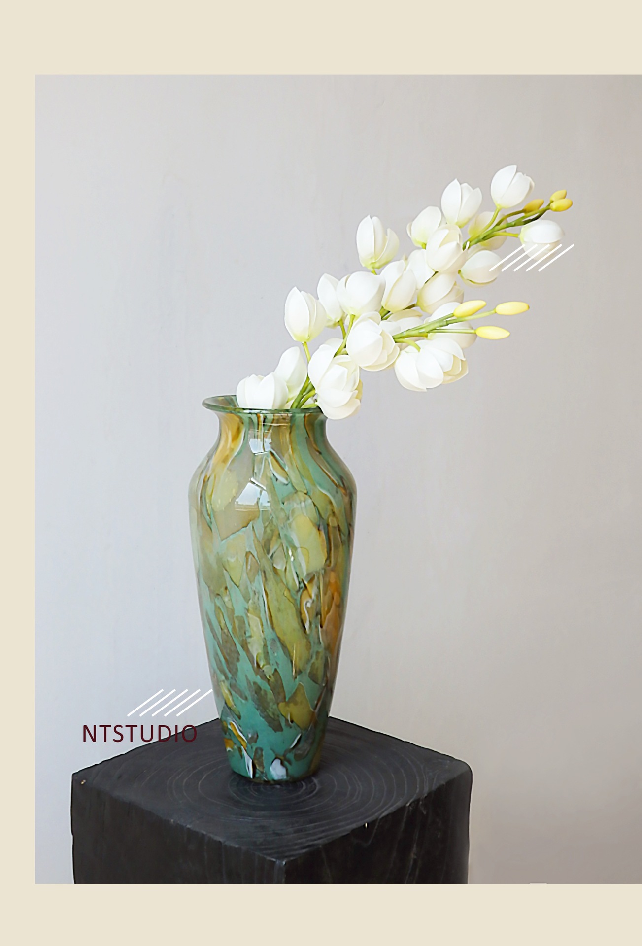 현대 간단한 빈티지 록 질감 수제 유리 꽃병 예술 고급 빛 럭셔리 수경 백합 꽃 장식품스토어 가기