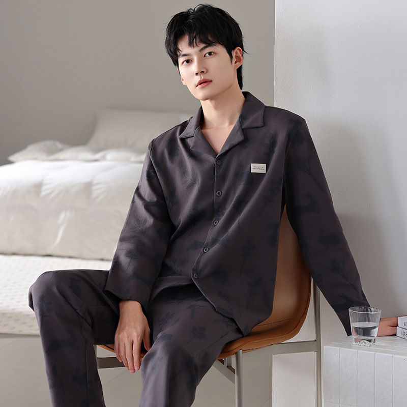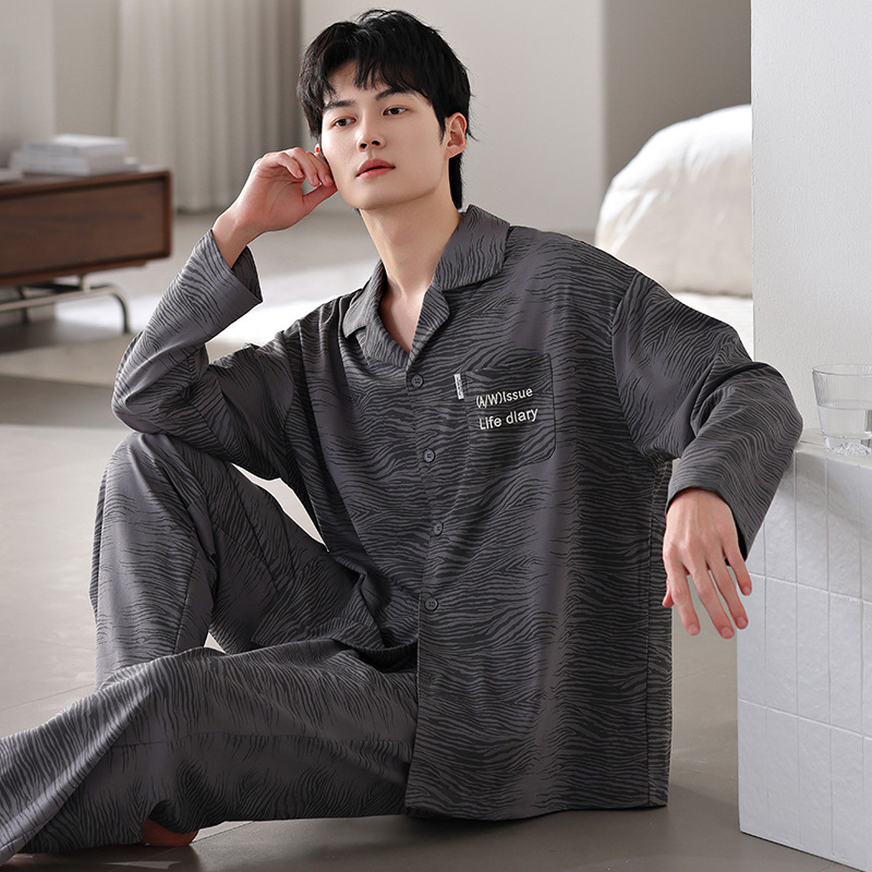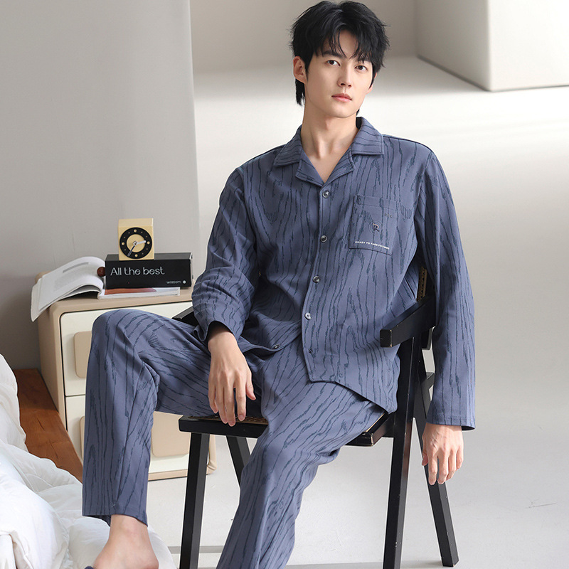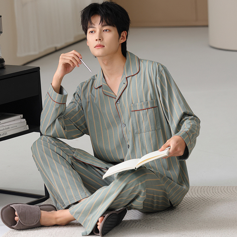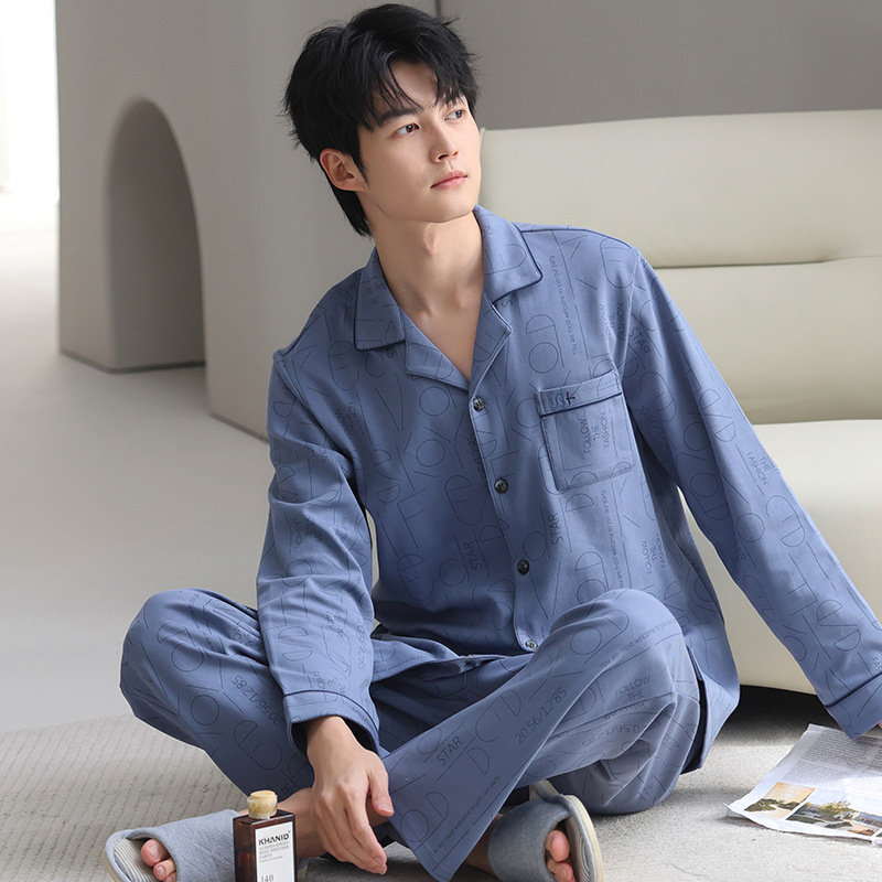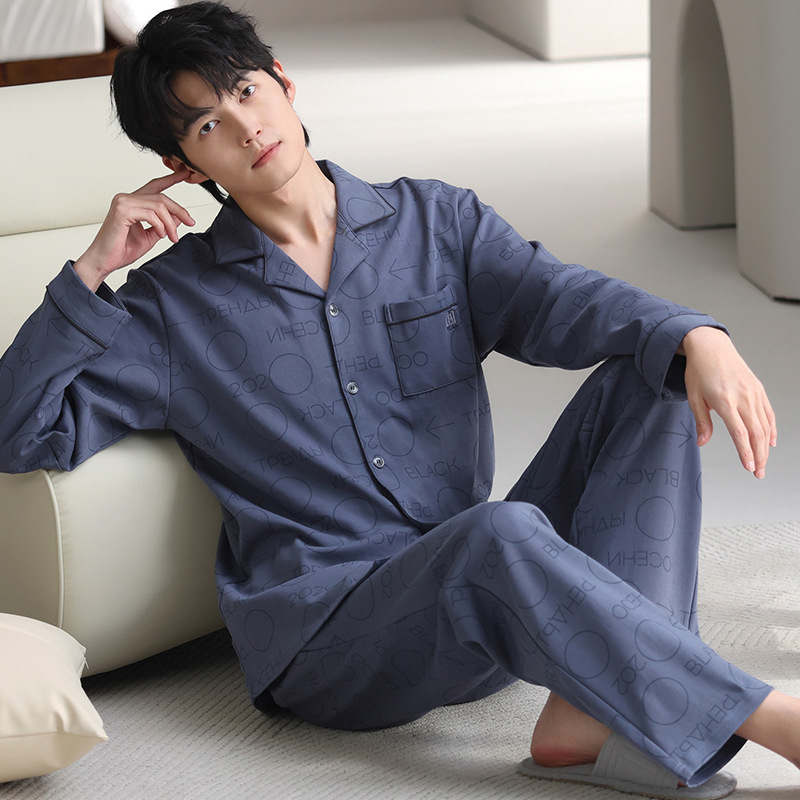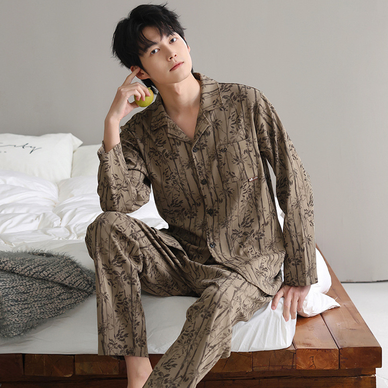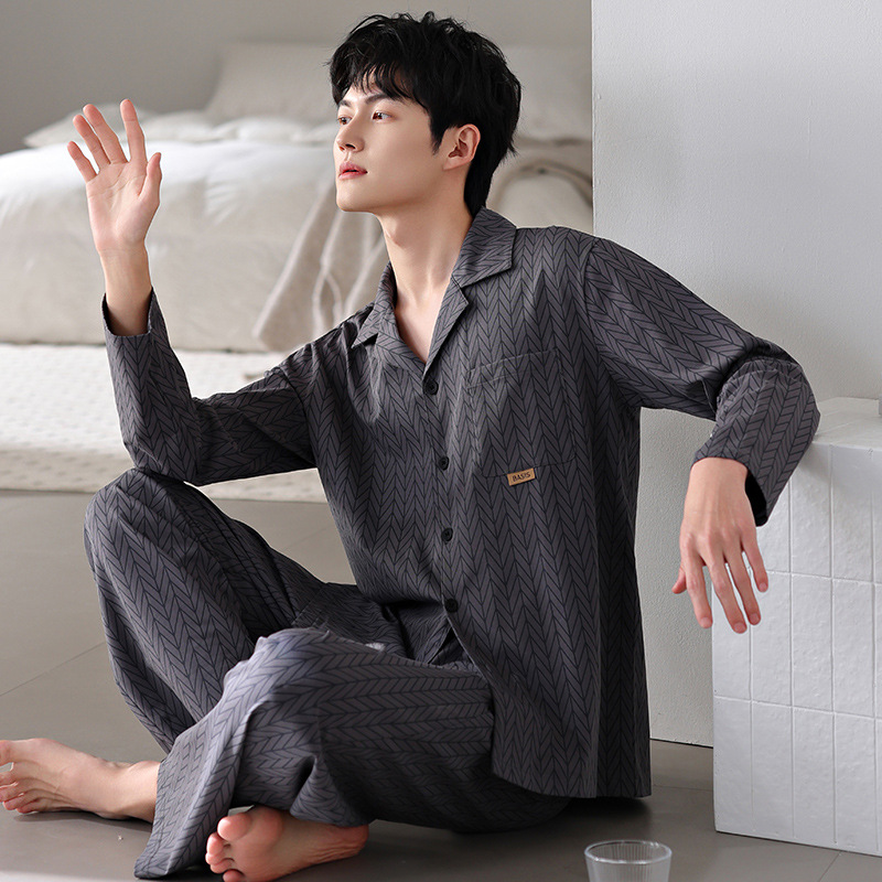 사슴 시간 순면 잠옷 남자의 봄과 가을 봄 시즌 긴 소매 캐주얼 남자 홈 옷 얇은 플러스 사이즈 세트스토어 가기
