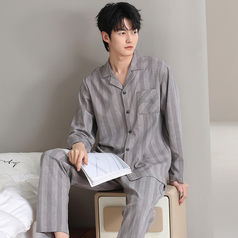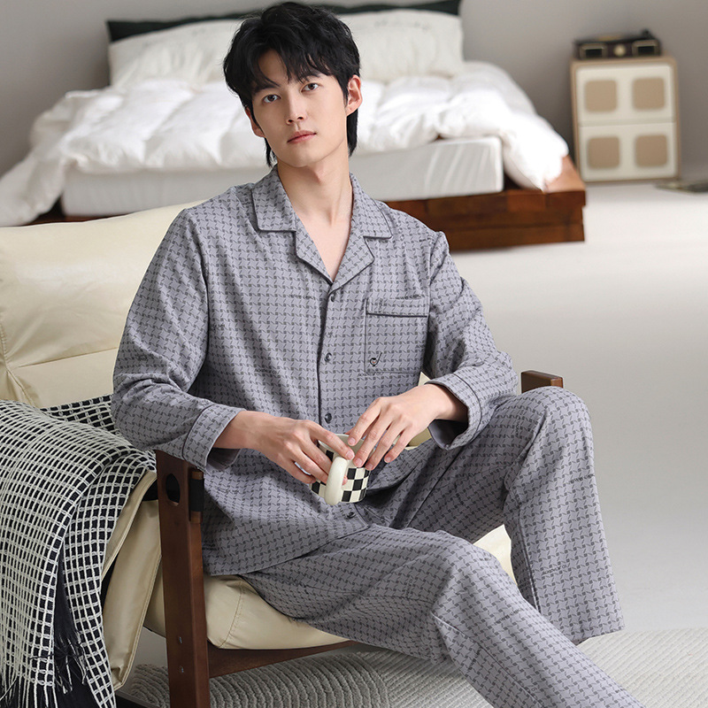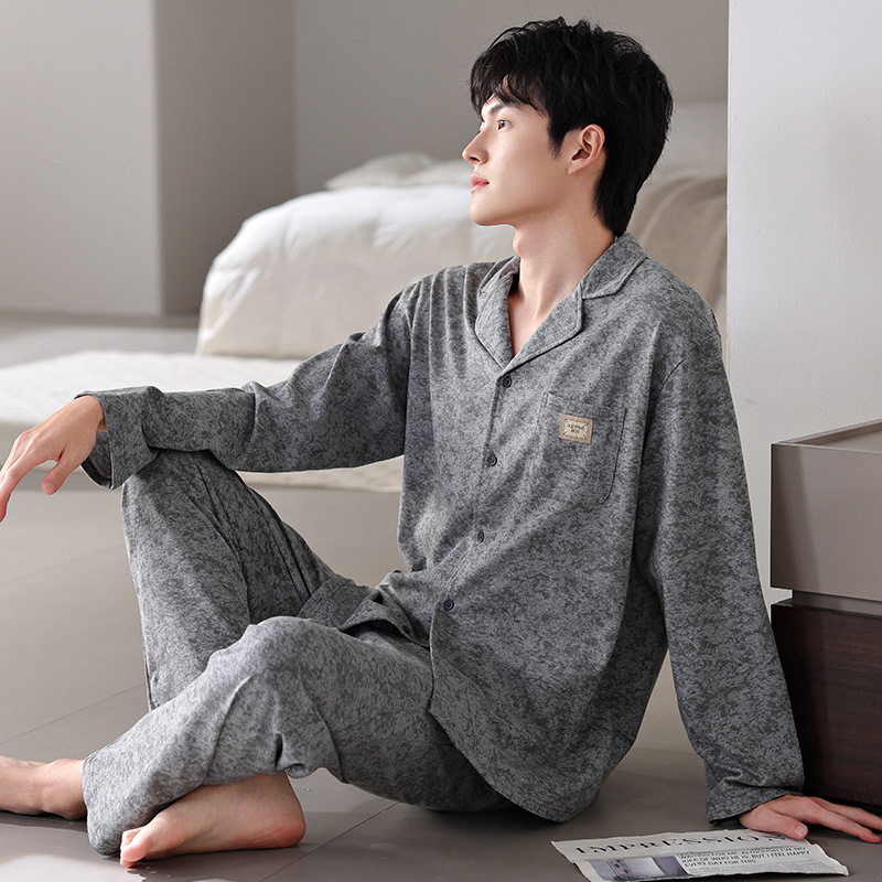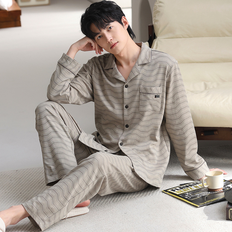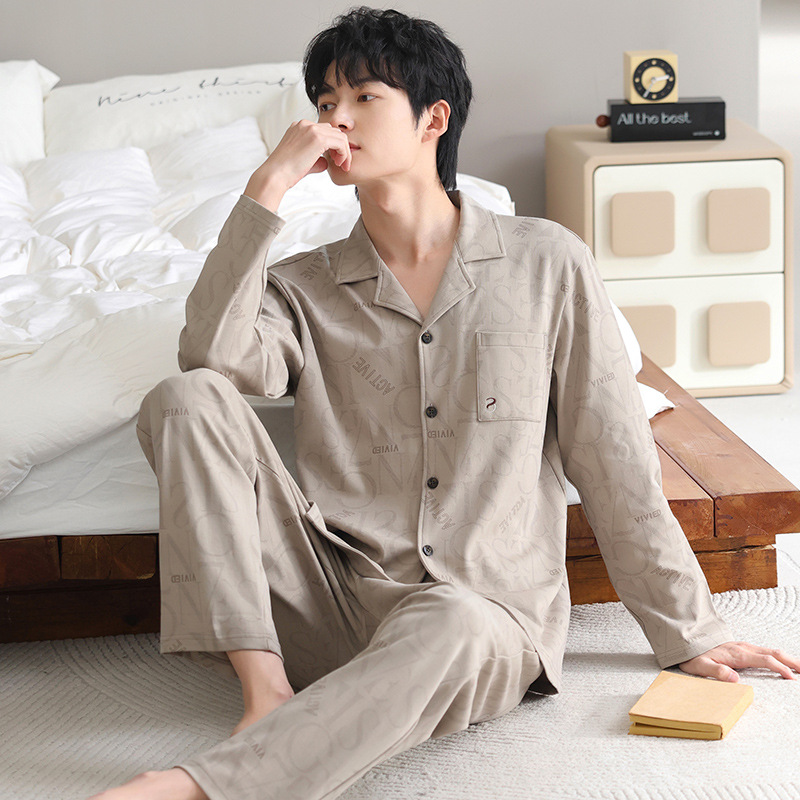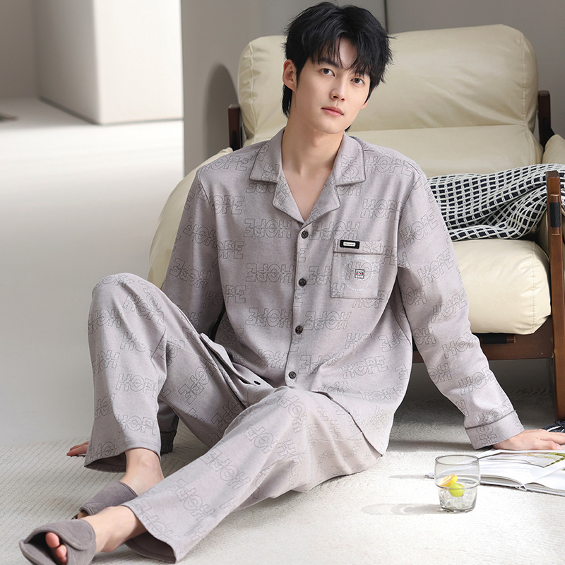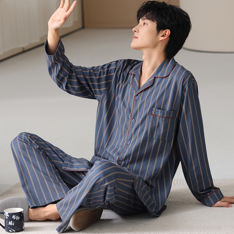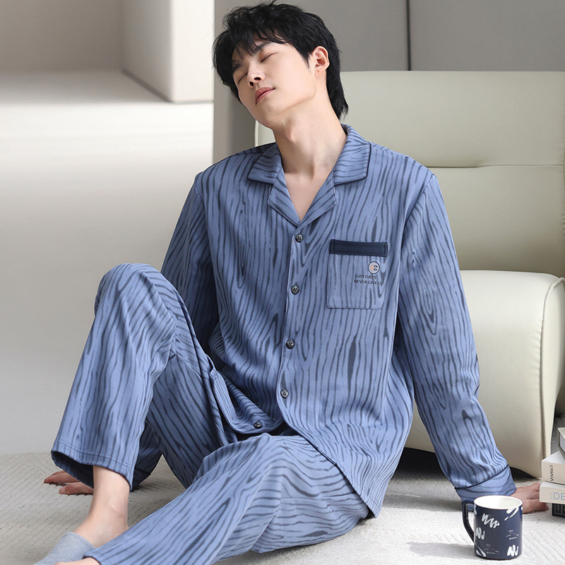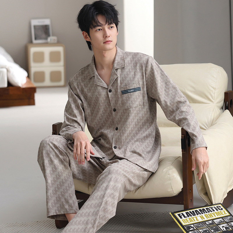 사슴 시간 순면 잠옷 남자의 봄과 가을 봄 시즌 긴 소매 캐주얼 남자 홈 옷 얇은 플러스 사이즈 세트스토어 가기