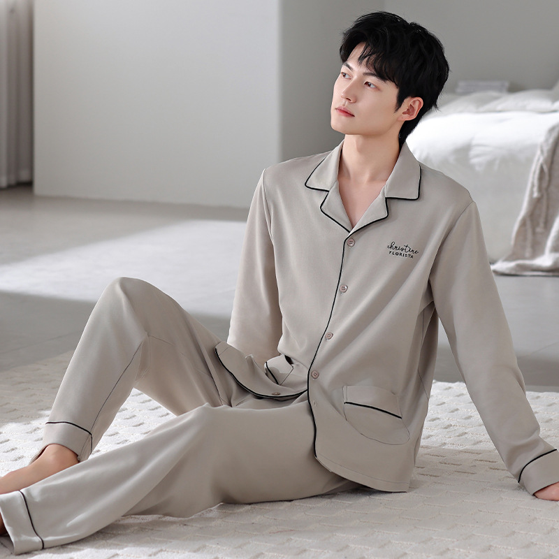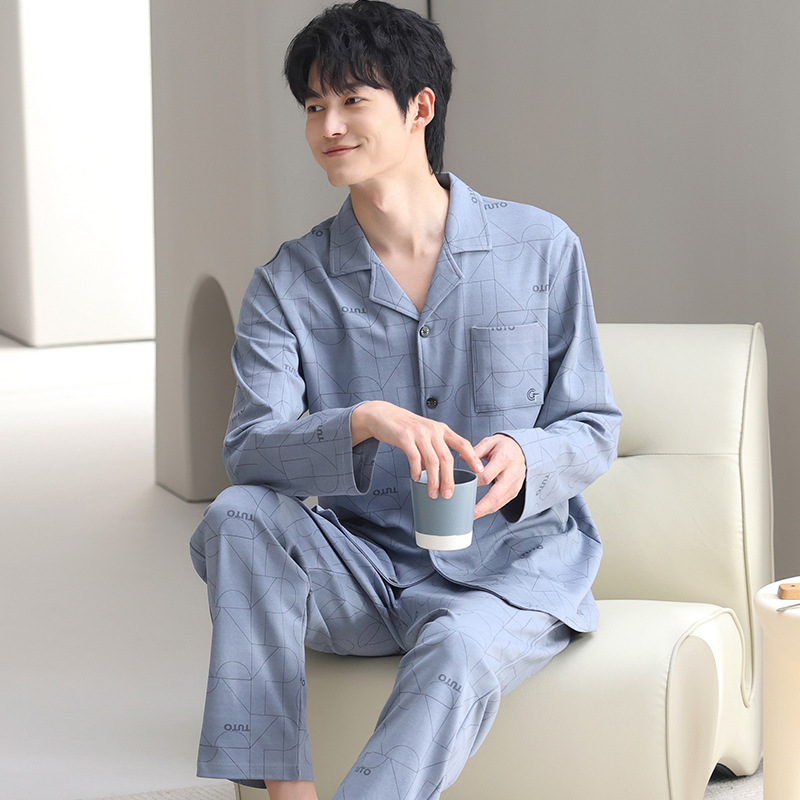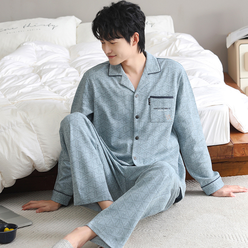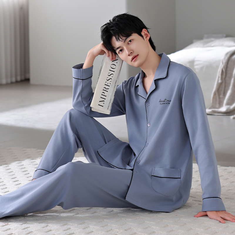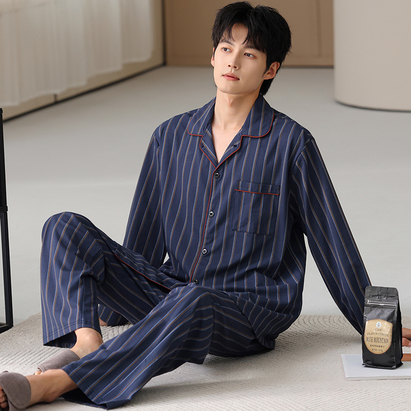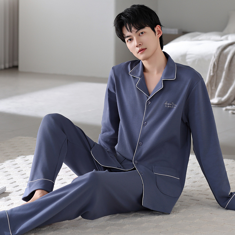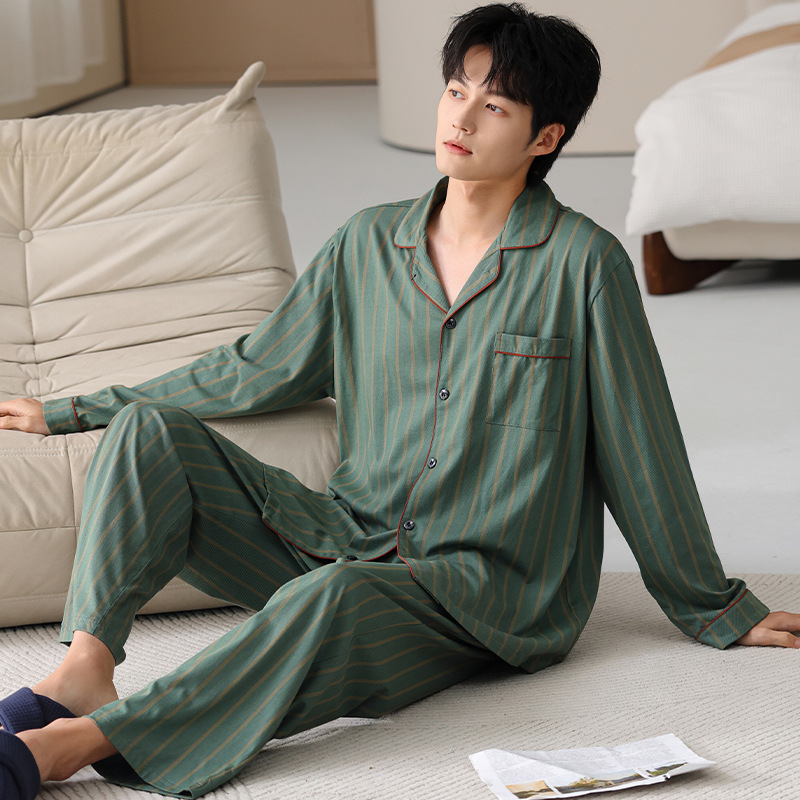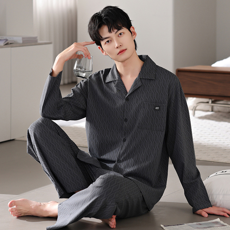 사슴 시간 순면 잠옷 남자의 봄과 가을 봄 시즌 긴 소매 캐주얼 남자 홈 옷 얇은 플러스 사이즈 세트스토어 가기