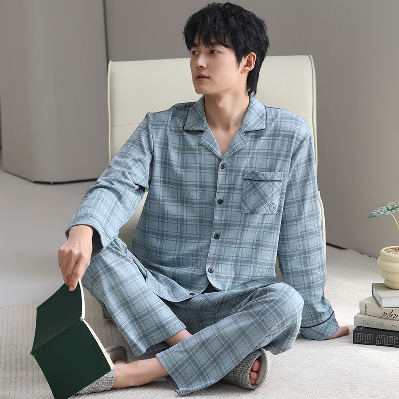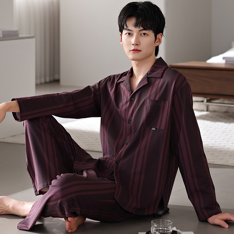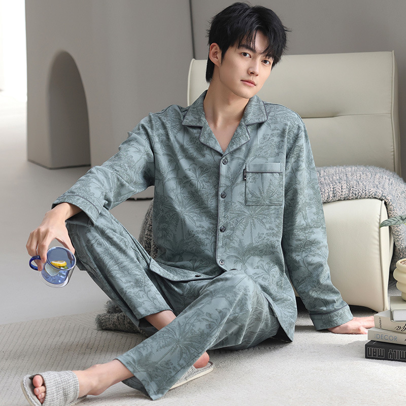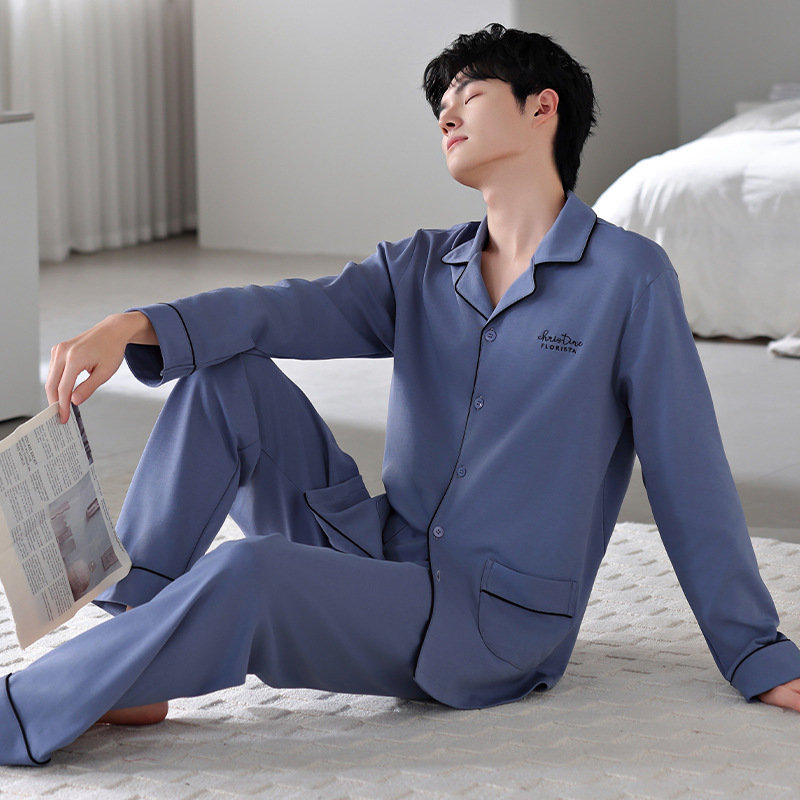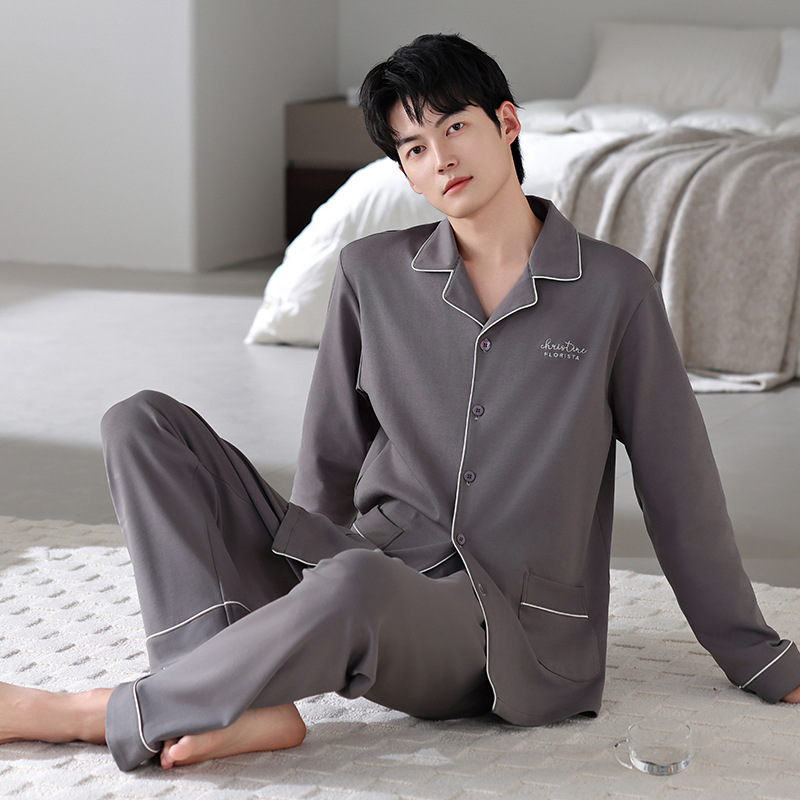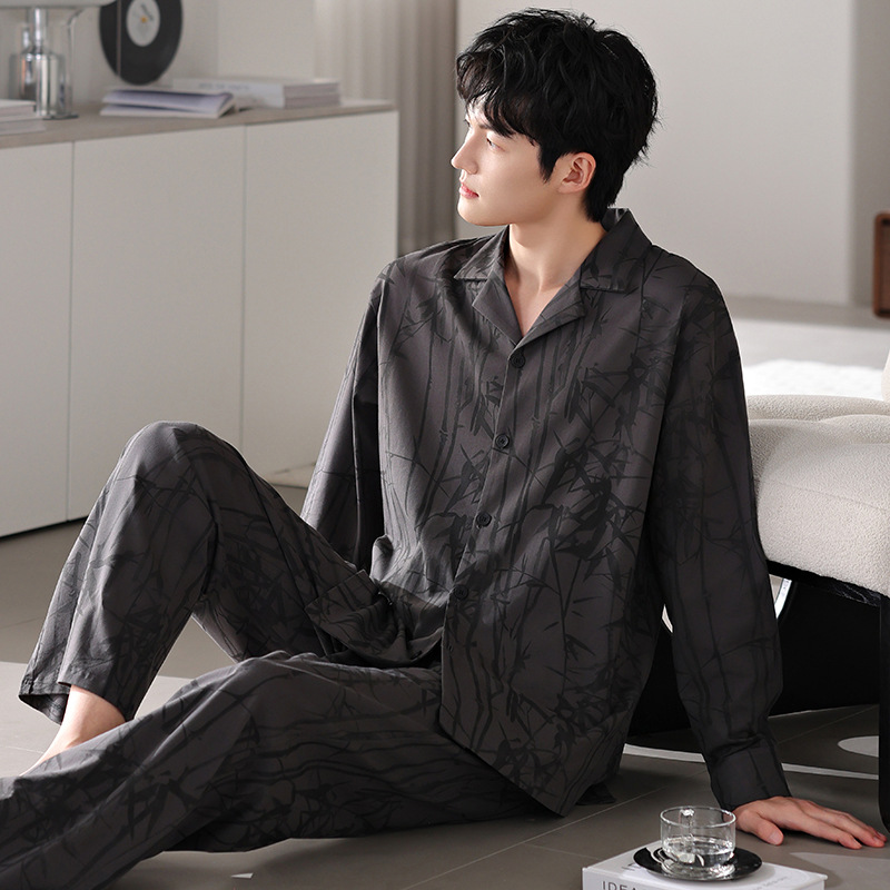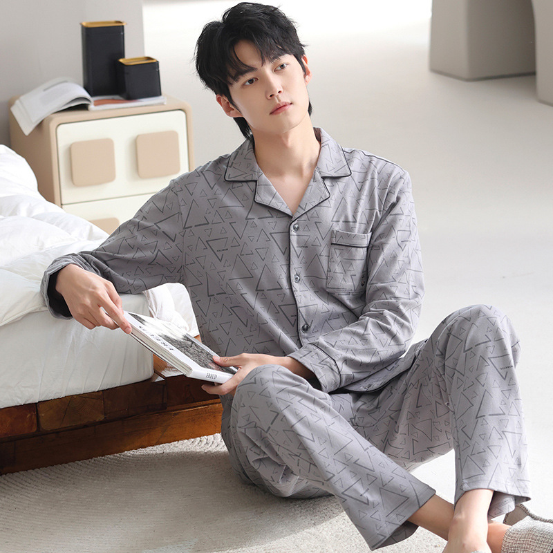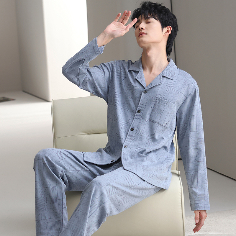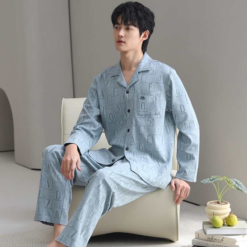 사슴 시간 순면 잠옷 남자의 봄과 가을 봄 시즌 긴 소매 캐주얼 남자 홈 옷 얇은 플러스 사이즈 세트스토어 가기