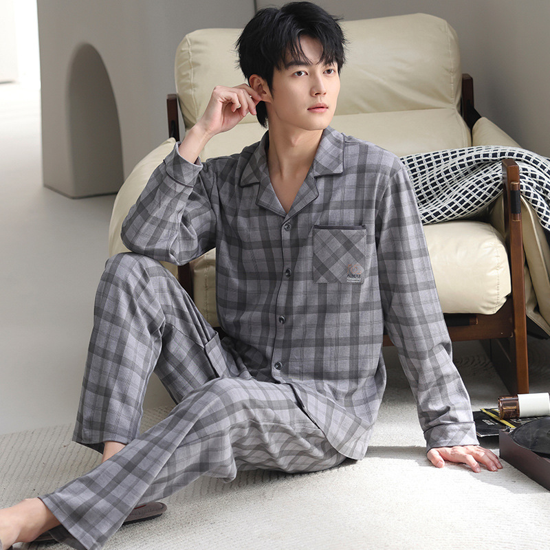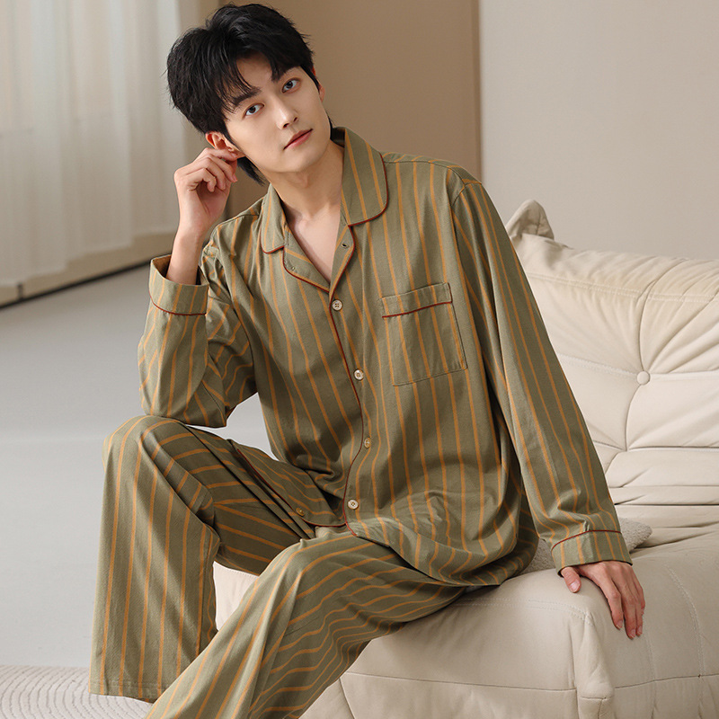 사슴 시간 순면 잠옷 남자의 봄과 가을 봄 시즌 긴 소매 캐주얼 남자 홈 옷 얇은 플러스 사이즈 세트
