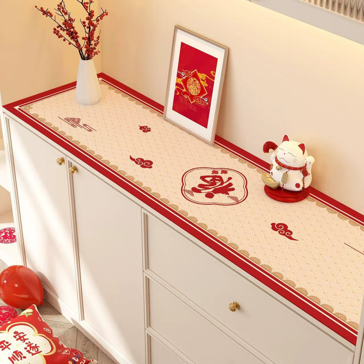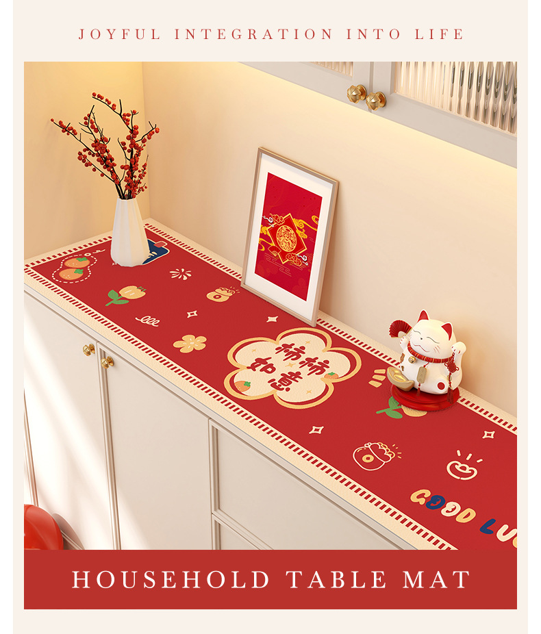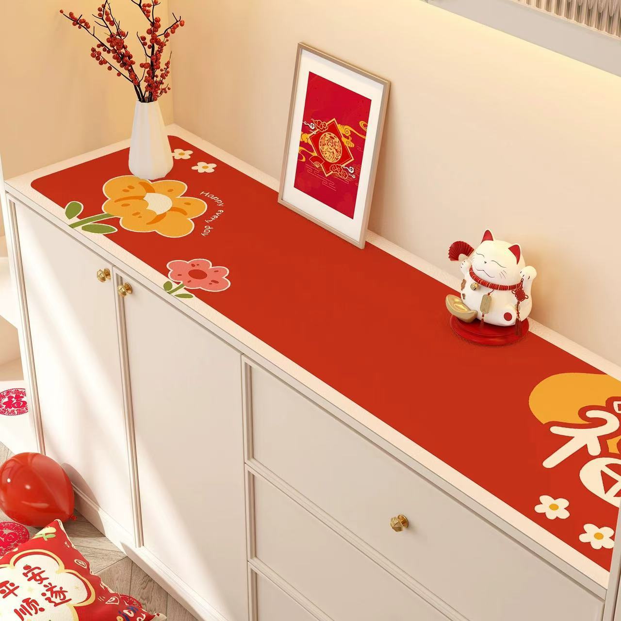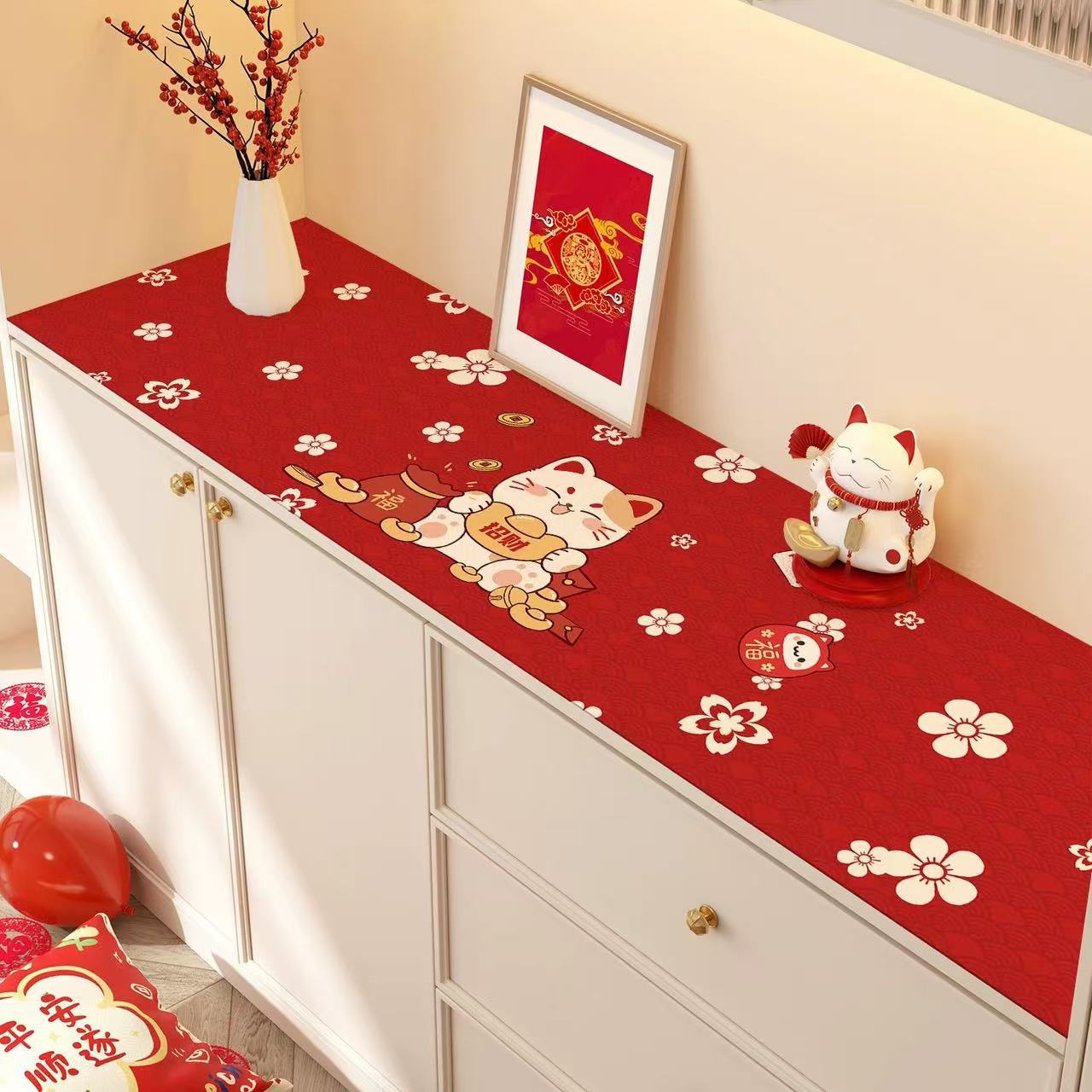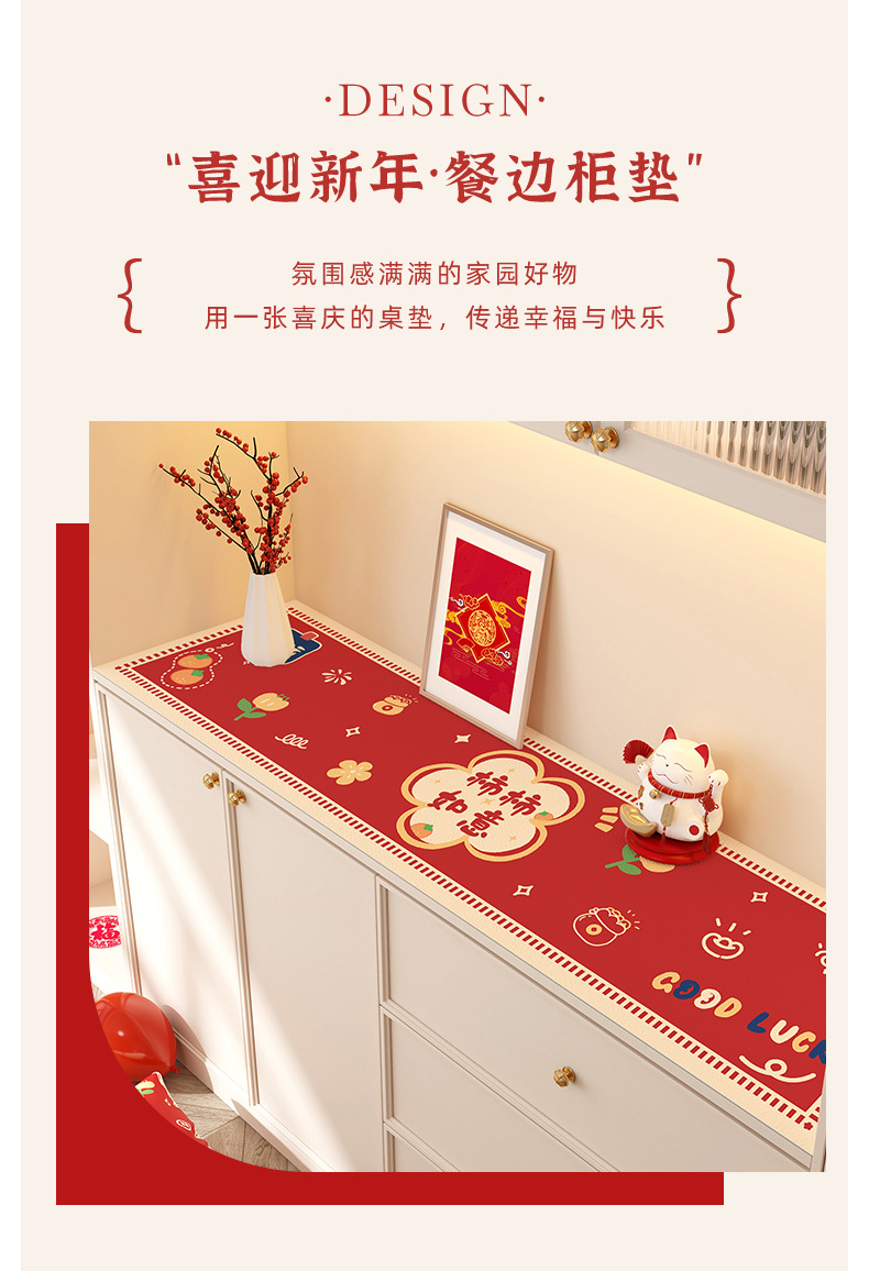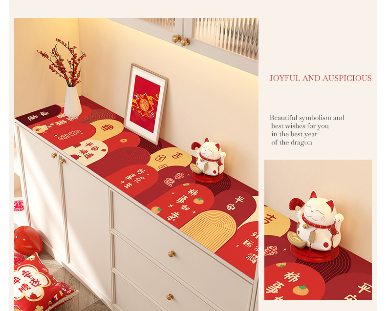 새해 사이드 보드 캐비닛 테이블 매트 레드 축제 테이블 2025 새로운 TV 캐비닛 테이블 보호 매트 신발 캐비닛 안티 더러운 매트스토어 가기