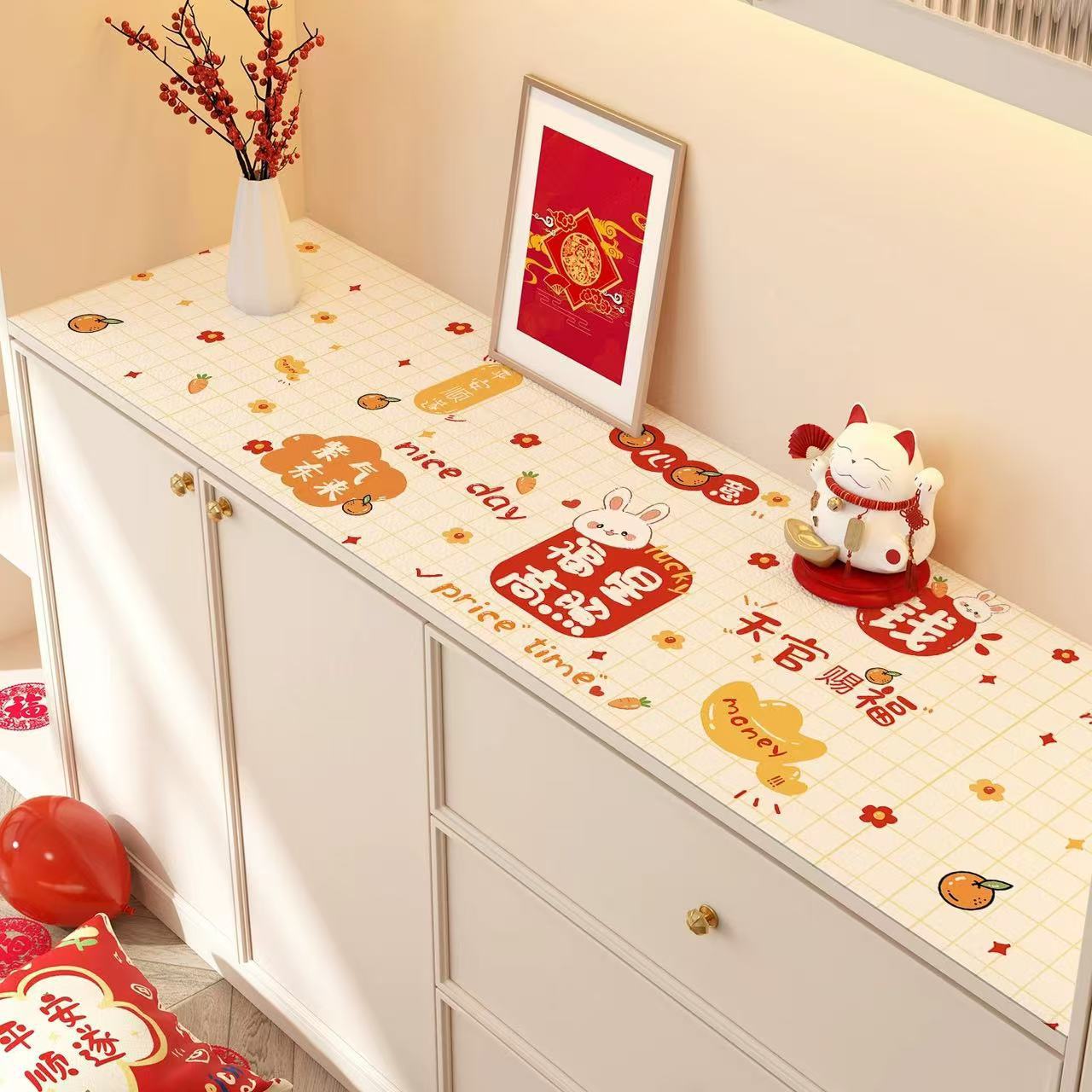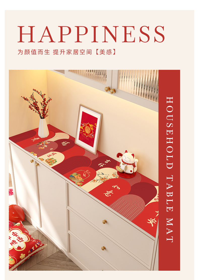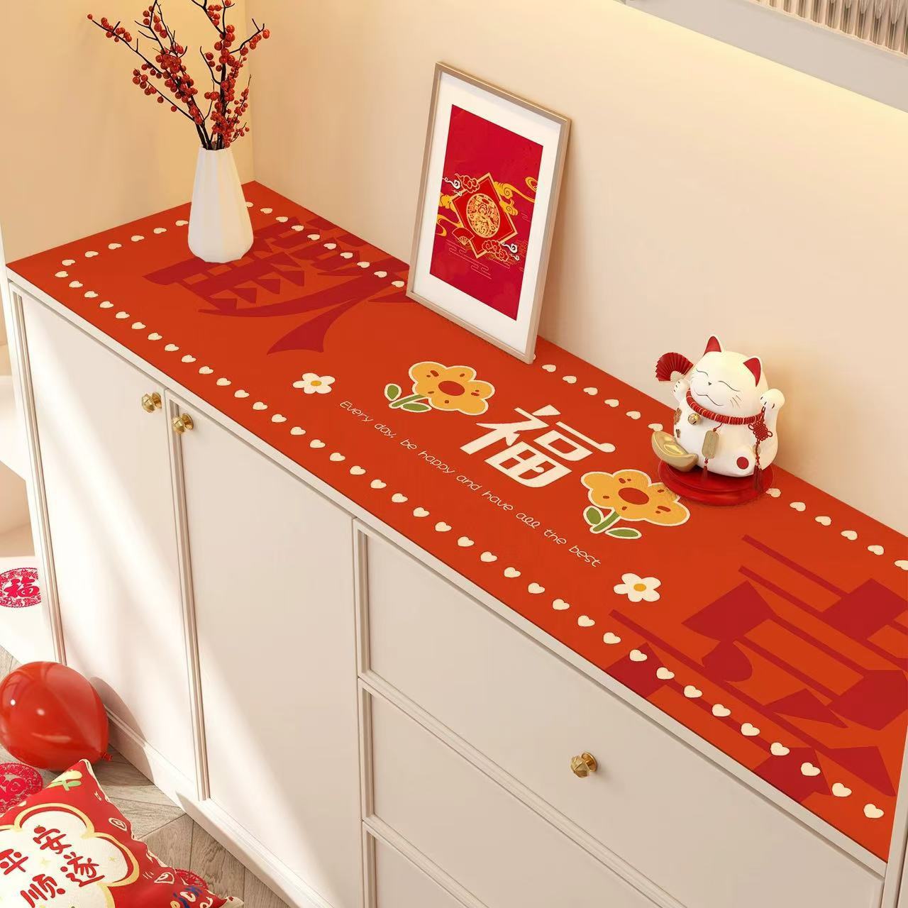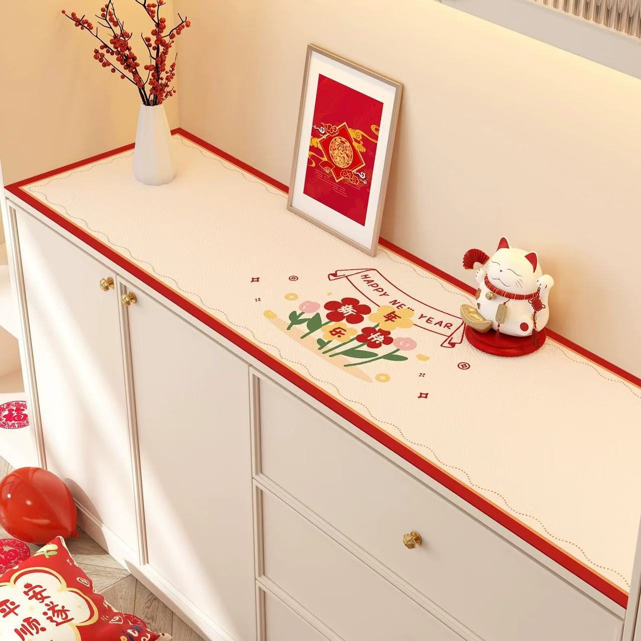 새해 사이드 보드 캐비닛 테이블 매트 레드 축제 테이블 2025 새로운 TV 캐비닛 테이블 보호 매트 신발 캐비닛 안티 더러운 매트스토어 가기