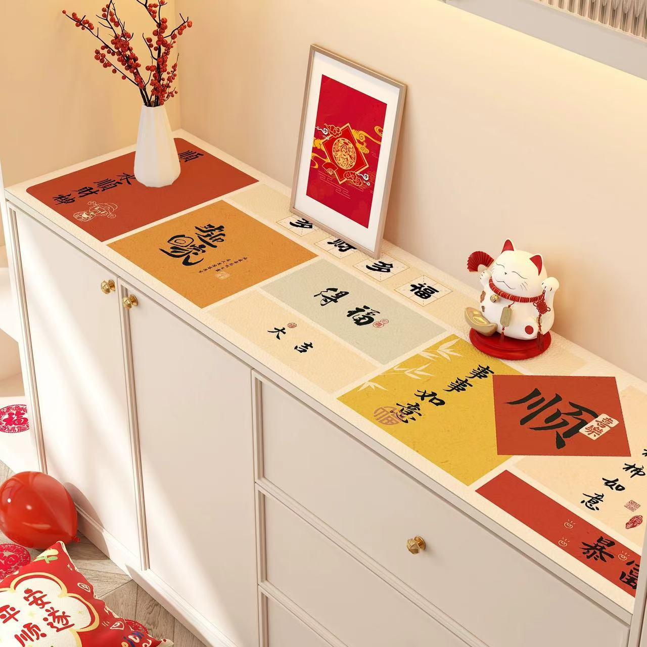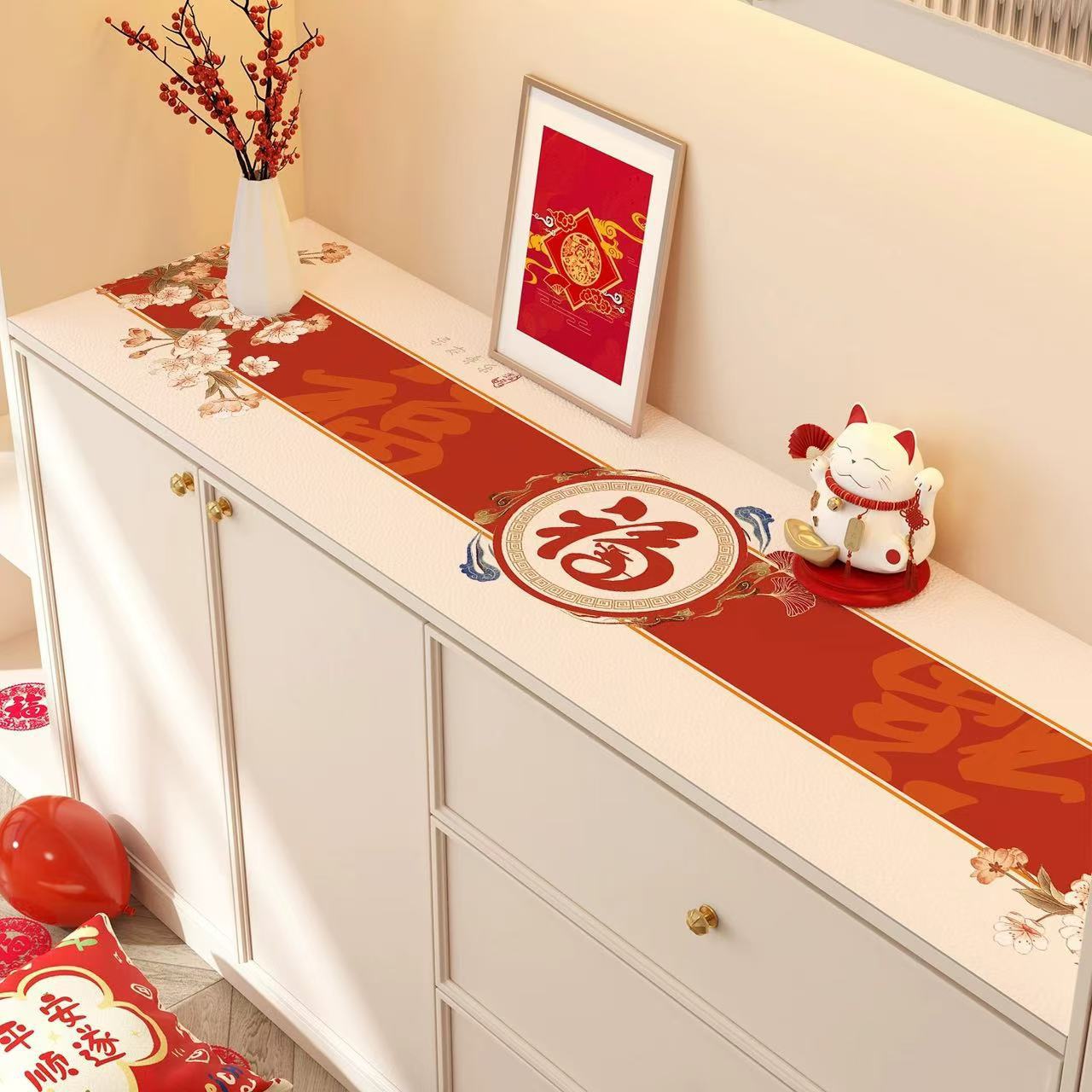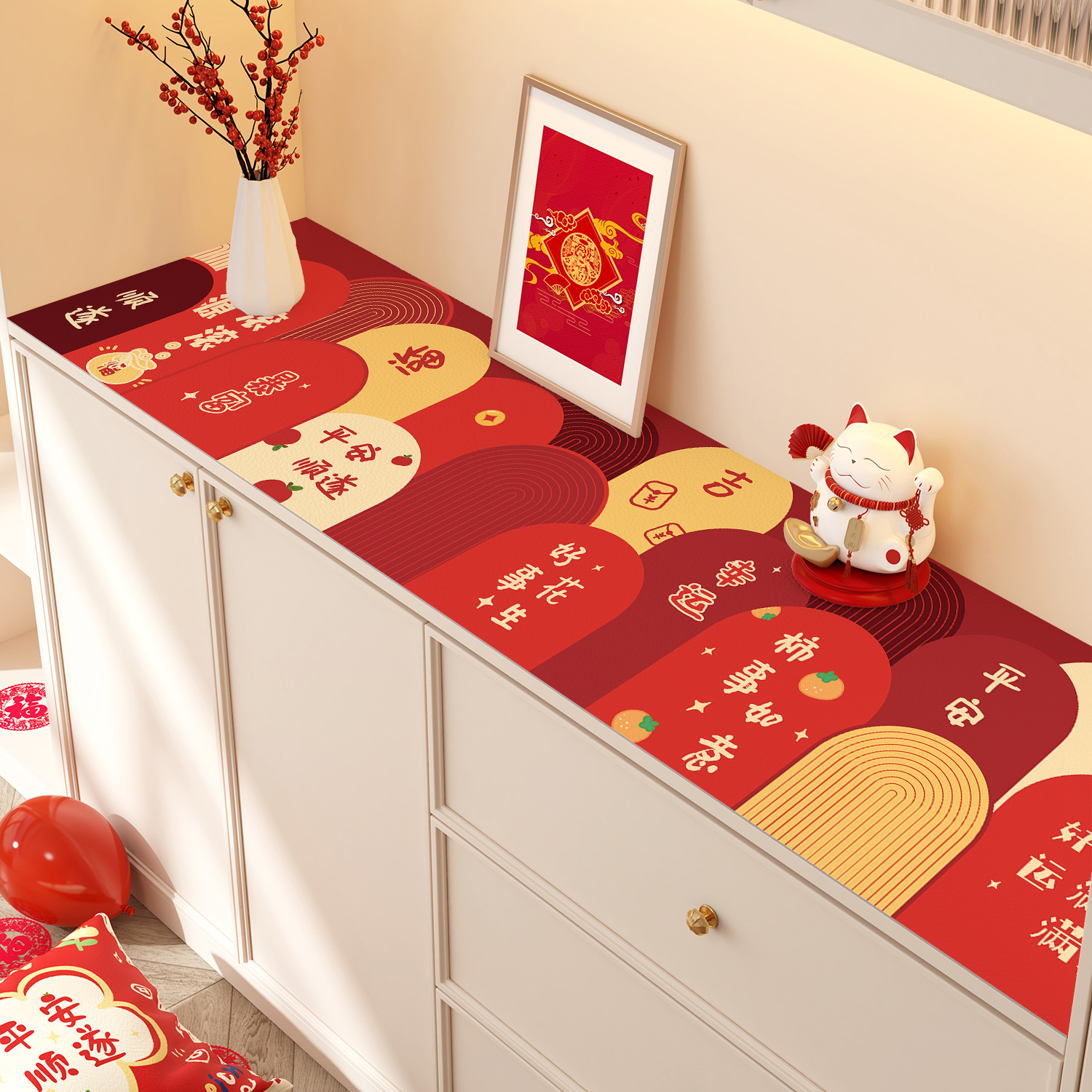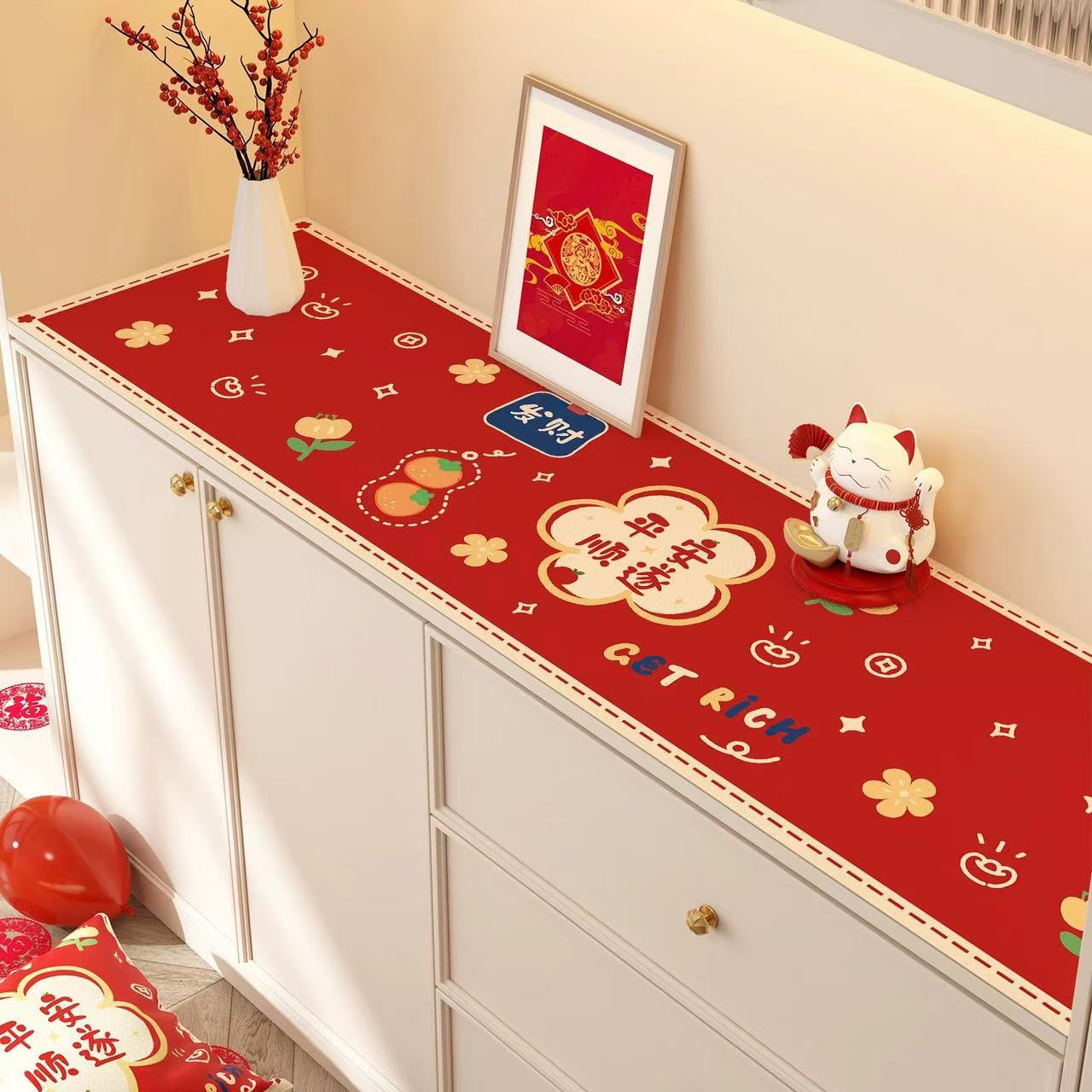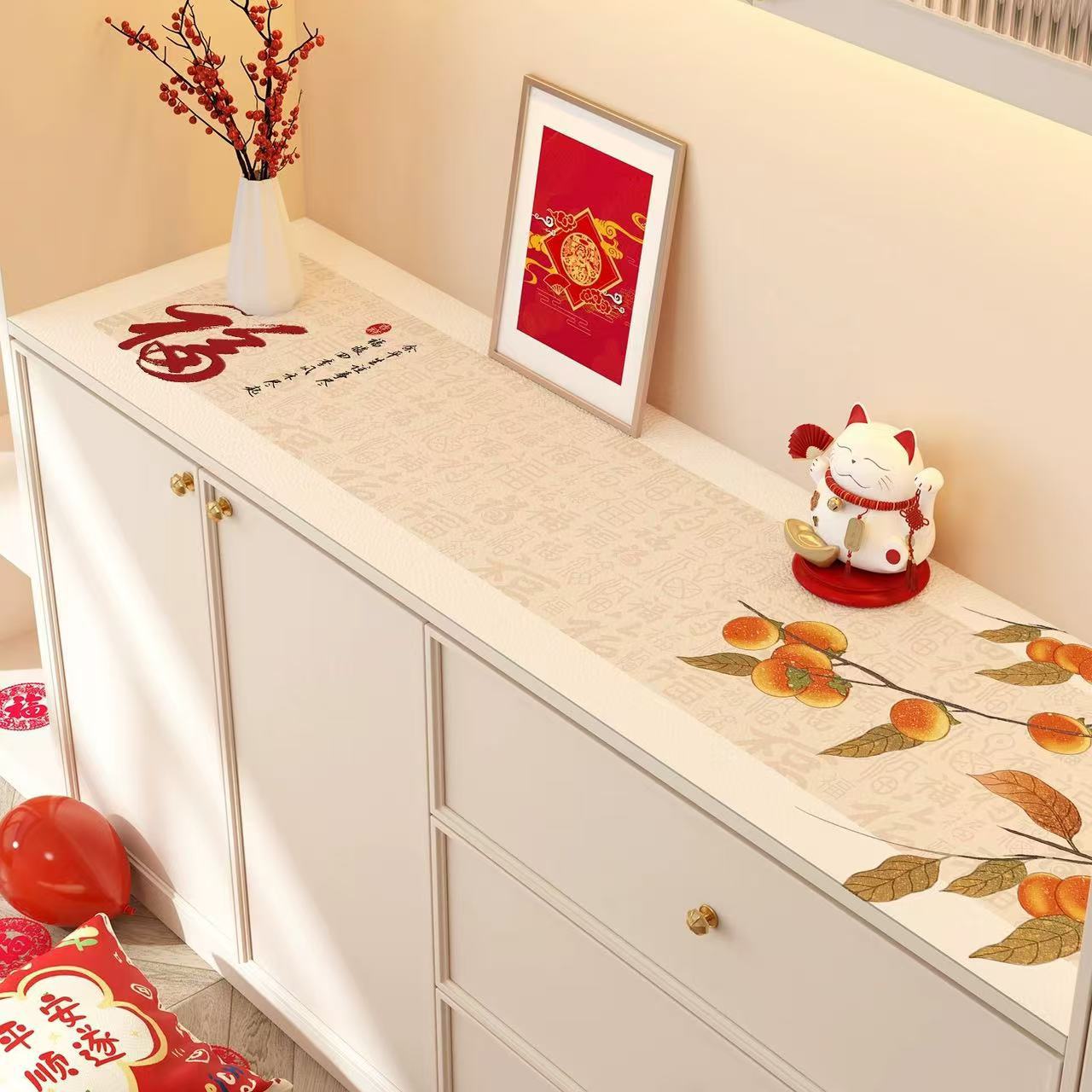 새해 사이드 보드 캐비닛 테이블 매트 레드 축제 테이블 2025 새로운 TV 캐비닛 테이블 보호 매트 신발 캐비닛 안티 더러운 매트스토어 가기