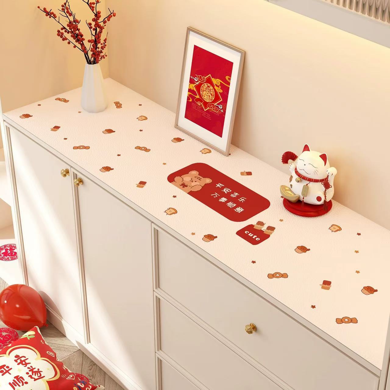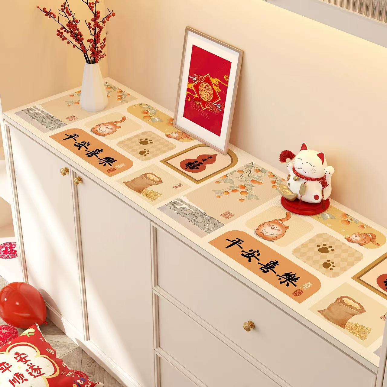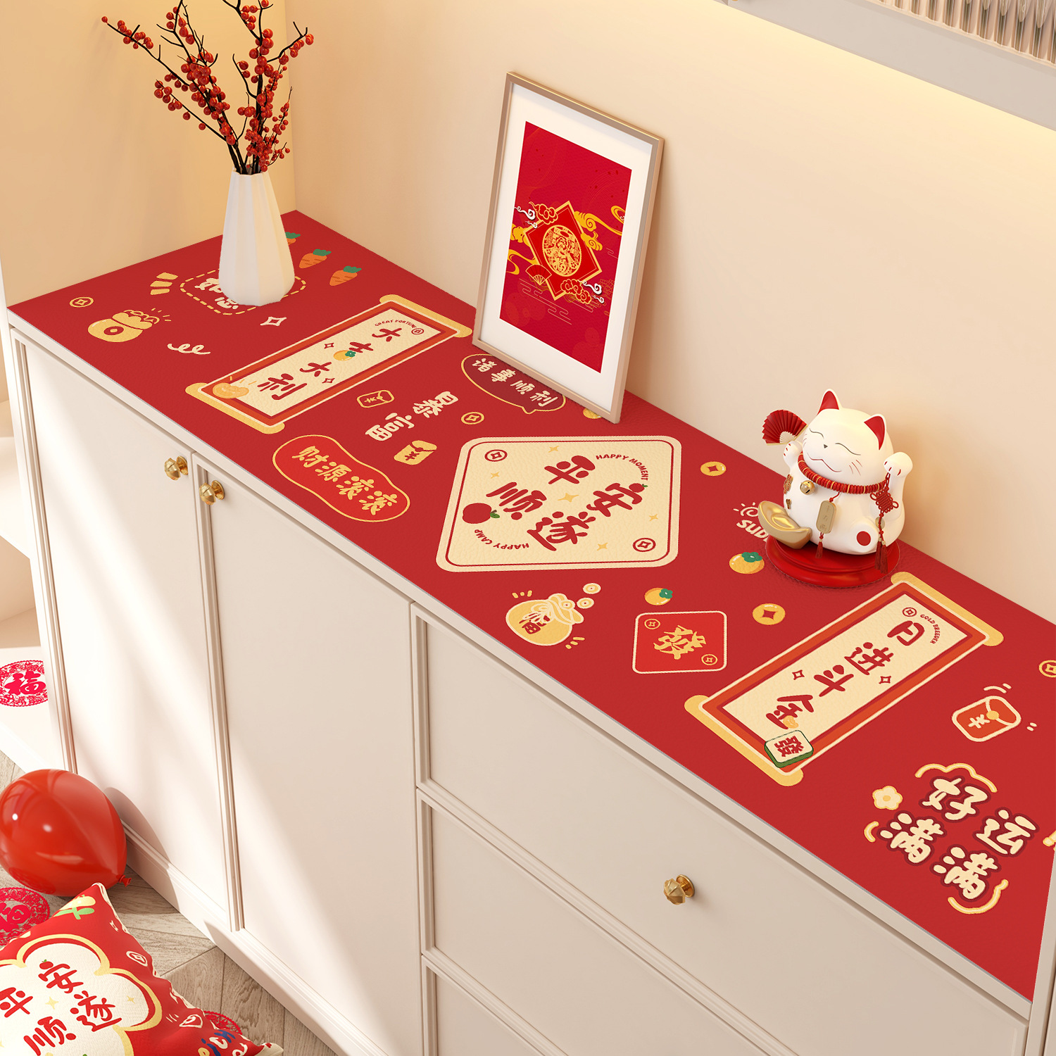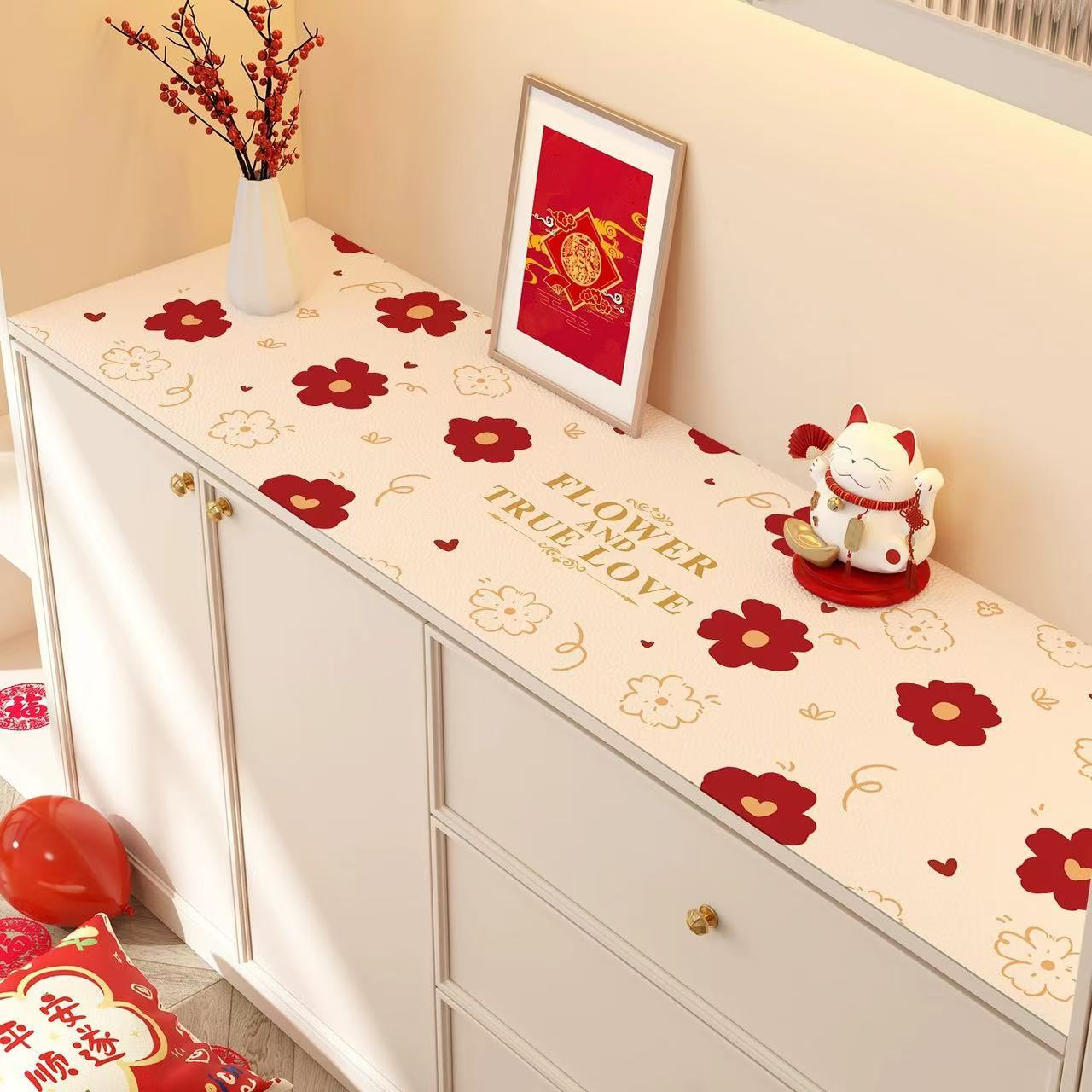 새해 사이드 보드 캐비닛 테이블 매트 레드 축제 테이블 2025 새로운 TV 캐비닛 테이블 보호 매트 신발 캐비닛 안티 더러운 매트스토어 가기