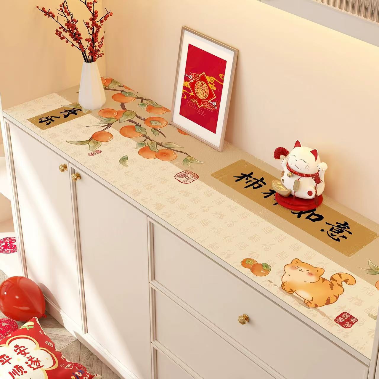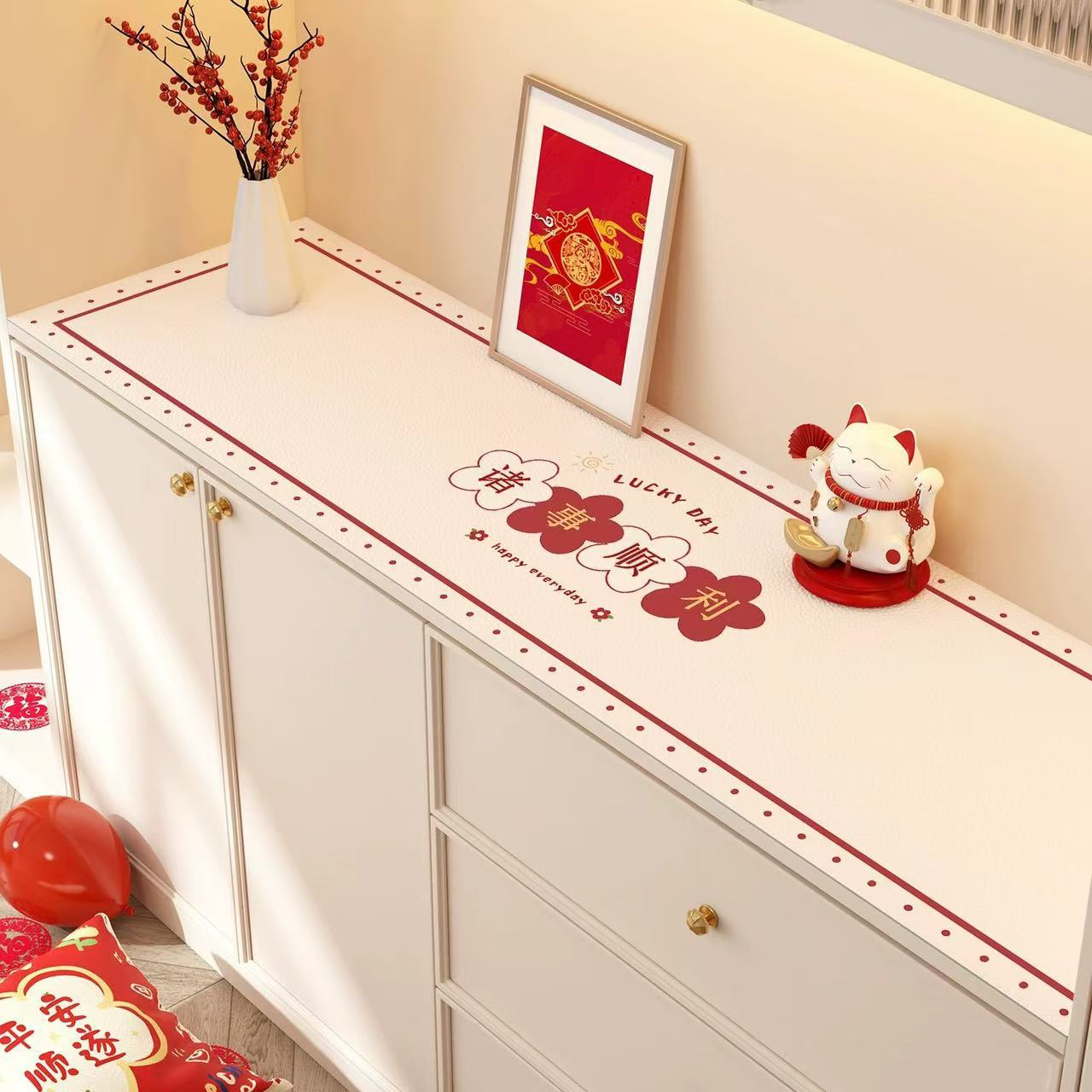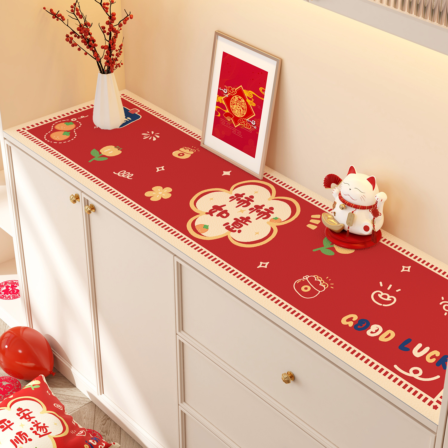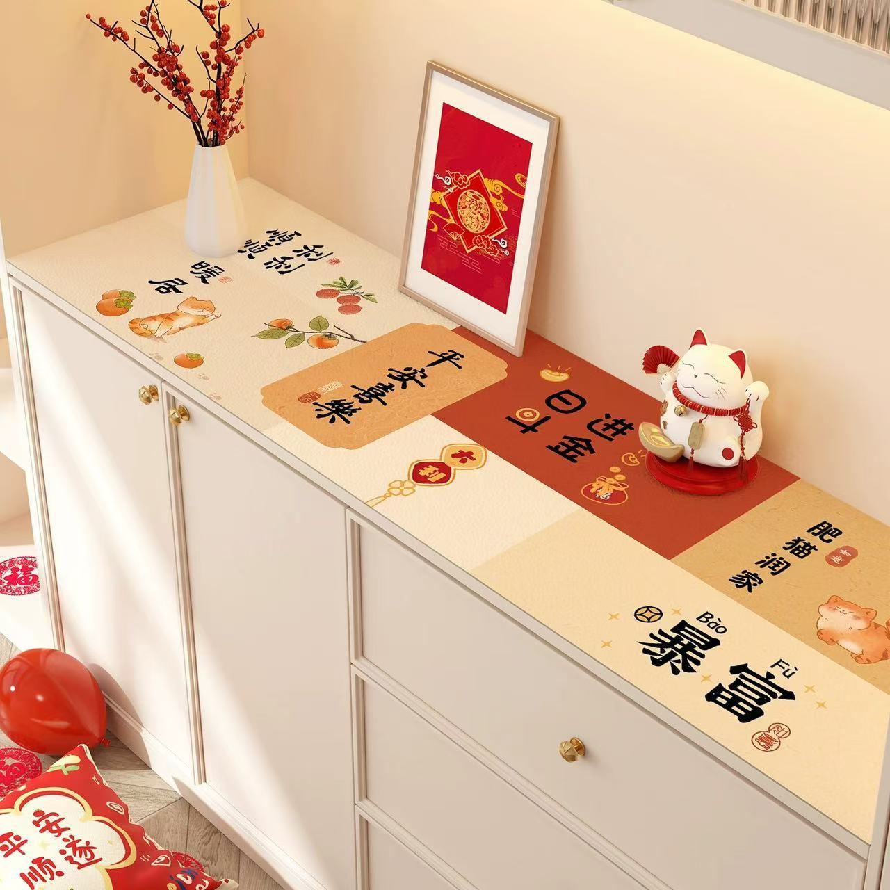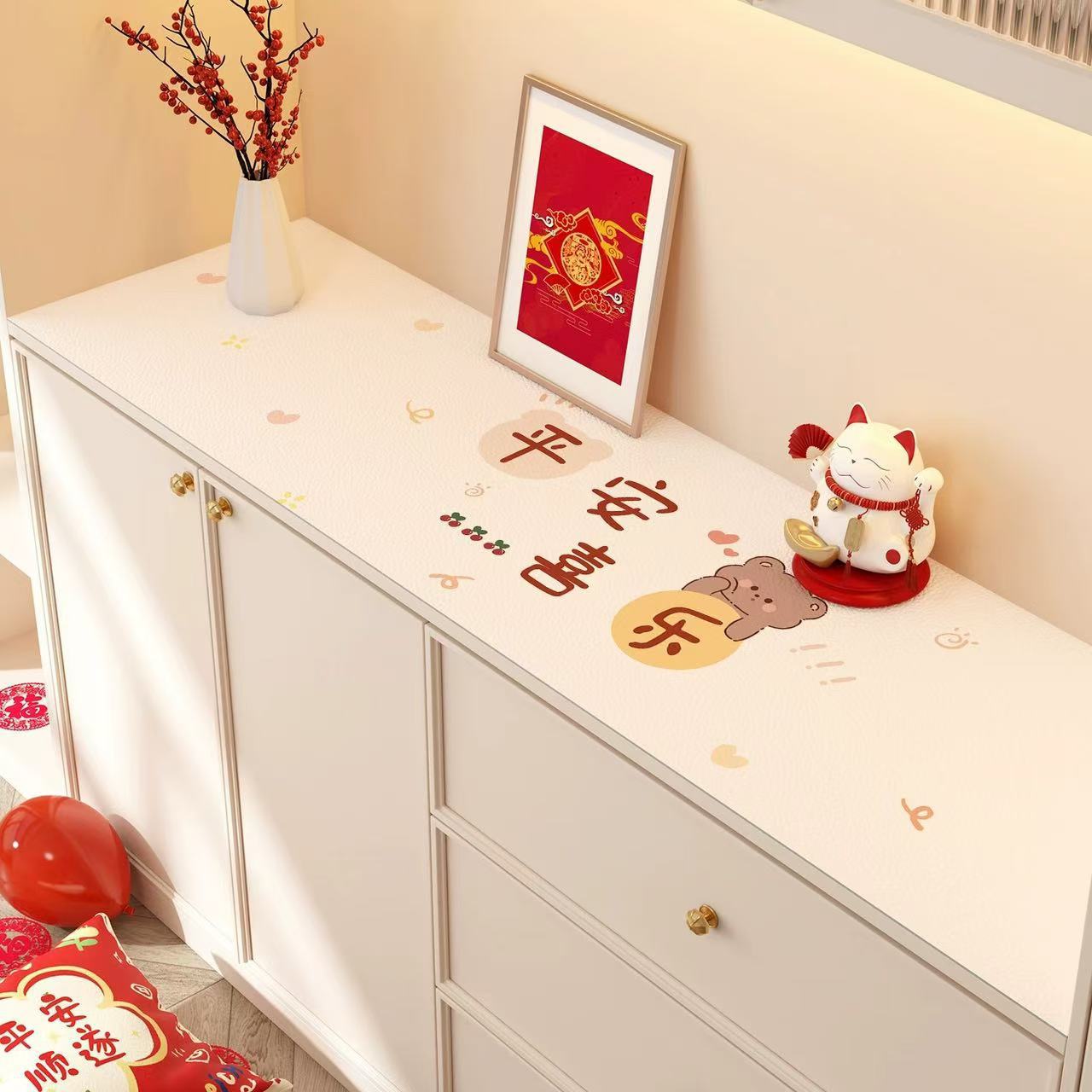 새해 사이드 보드 캐비닛 테이블 매트 레드 축제 테이블 2025 새로운 TV 캐비닛 테이블 보호 매트 신발 캐비닛 안티 더러운 매트스토어 가기