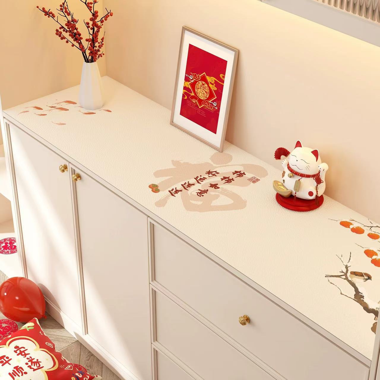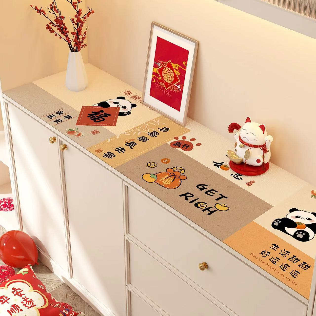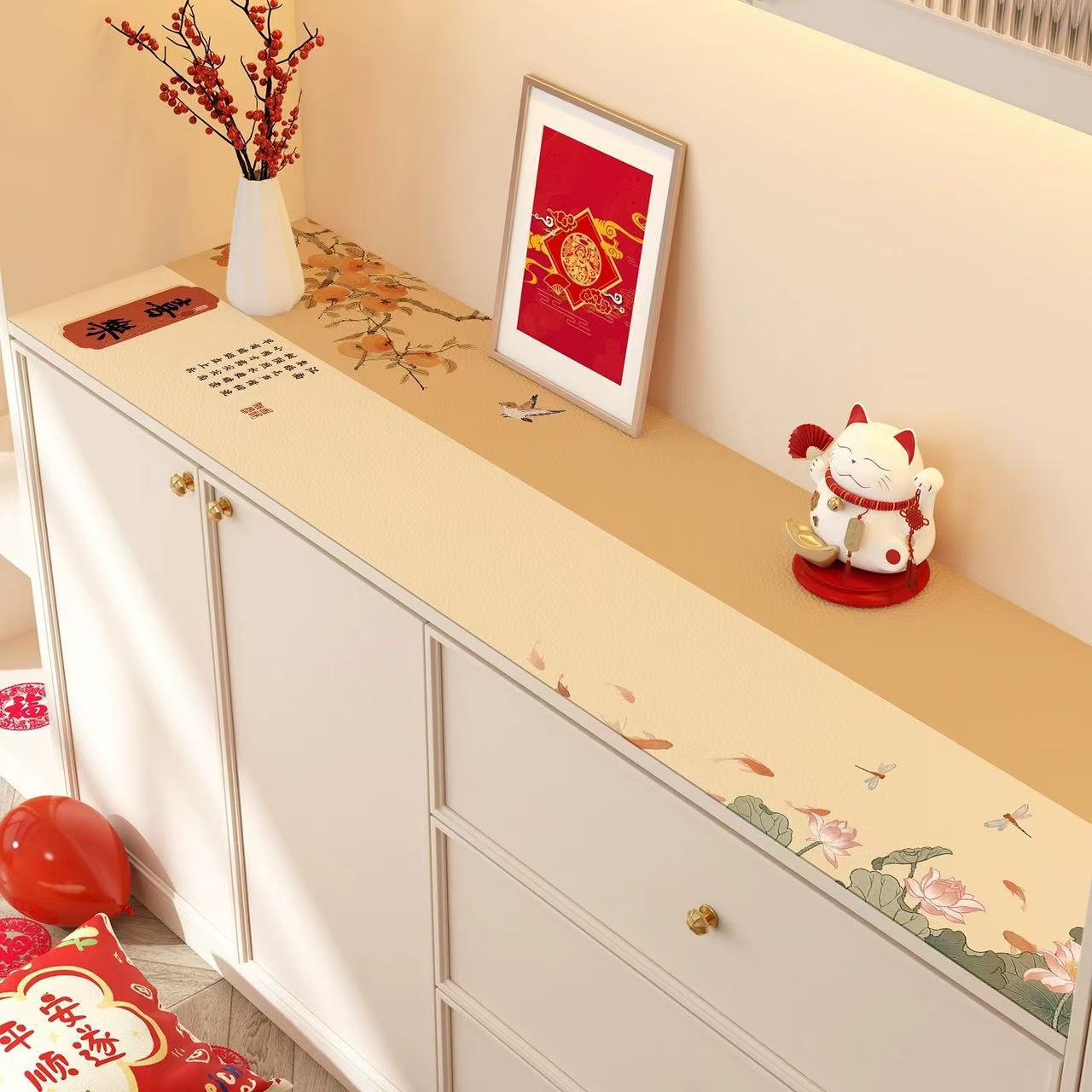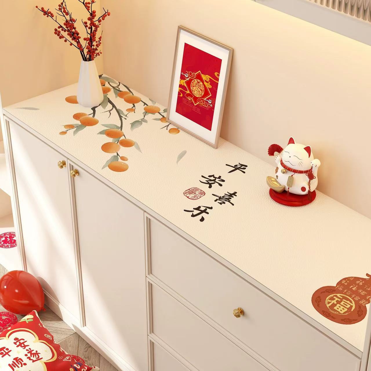 새해 사이드 보드 캐비닛 테이블 매트 레드 축제 테이블 2025 새로운 TV 캐비닛 테이블 보호 매트 신발 캐비닛 안티 더러운 매트스토어 가기