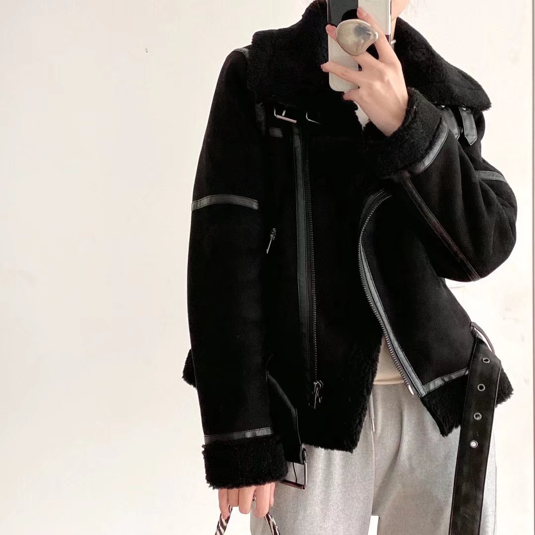 ZA 유럽풍 크로스보더 여성복 가을 겨울 신상 양면 가죽 모피 일체형 스웨이드 재킷