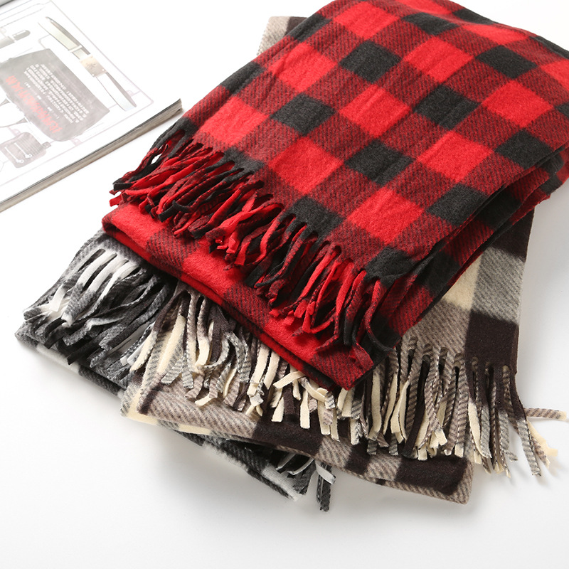 가을과 겨울 새로운 스타일 아름다운 모양 따뜻한 스카프 패션 트렌드 남성과 여성을위한 양면 플리스 체크 스카프스토어 가기