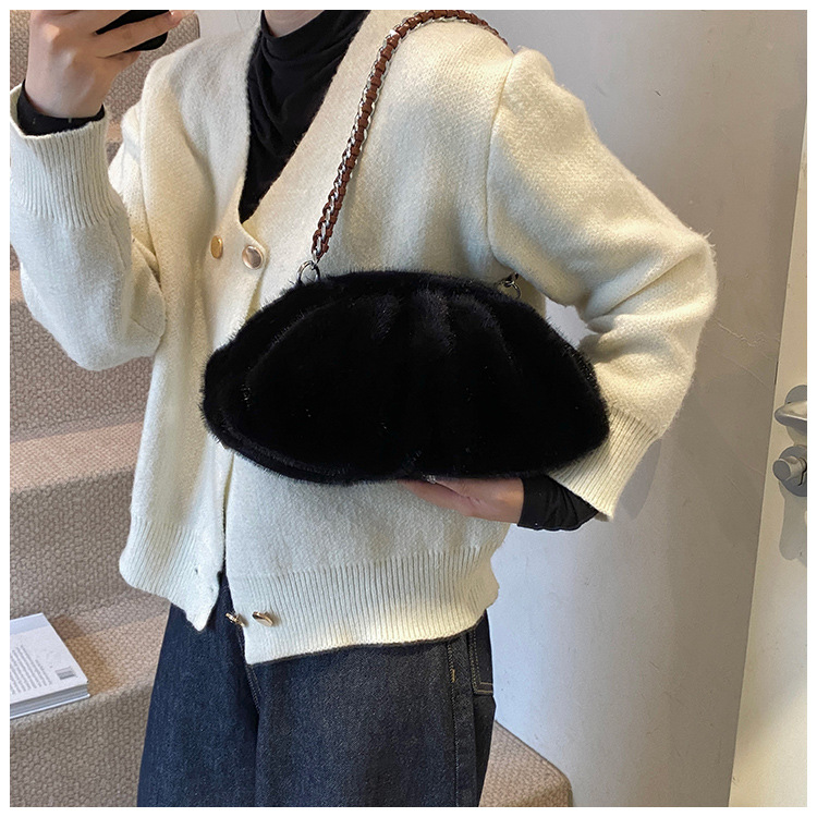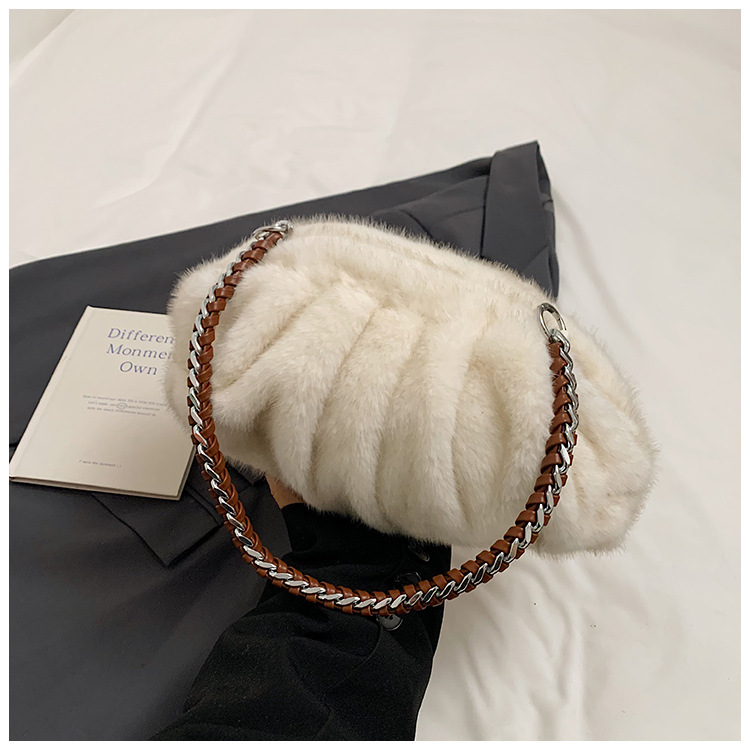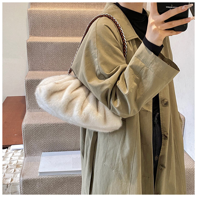 2025 가을과 겨울 새로운 모조 밍크 모피 주름 구름 가방 플러시 레이디 스타일 핸드 숄더백 체인 겨드랑이 가방스토어 가기
