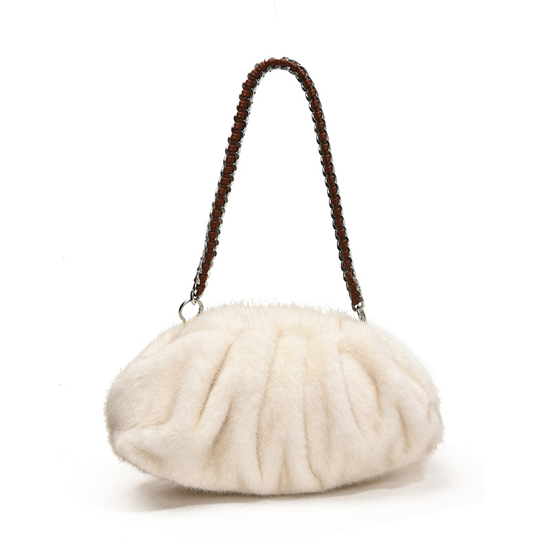 2025 가을과 겨울 새로운 모조 밍크 모피 주름 구름 가방 플러시 레이디 스타일 핸드 숄더백 체인 겨드랑이 가방