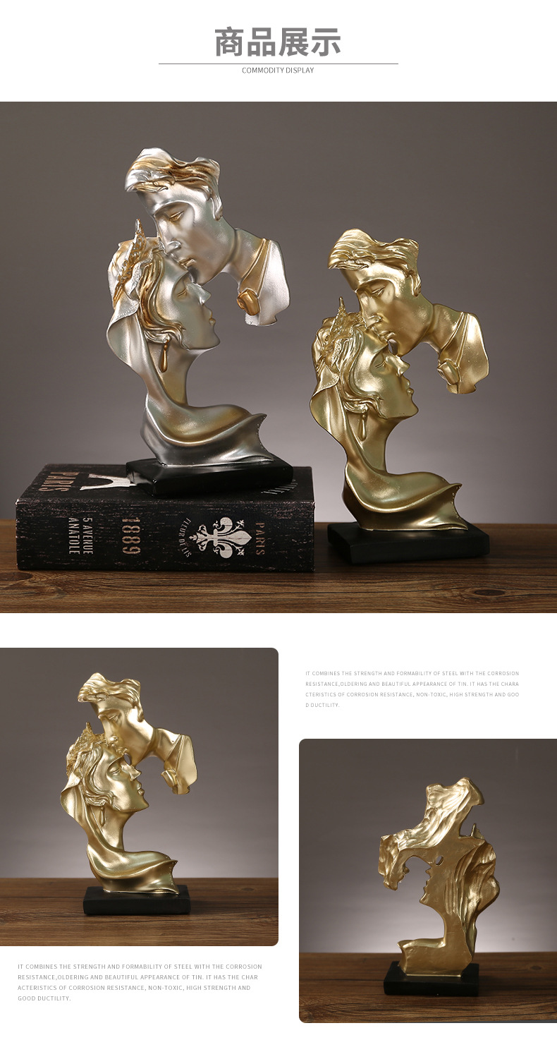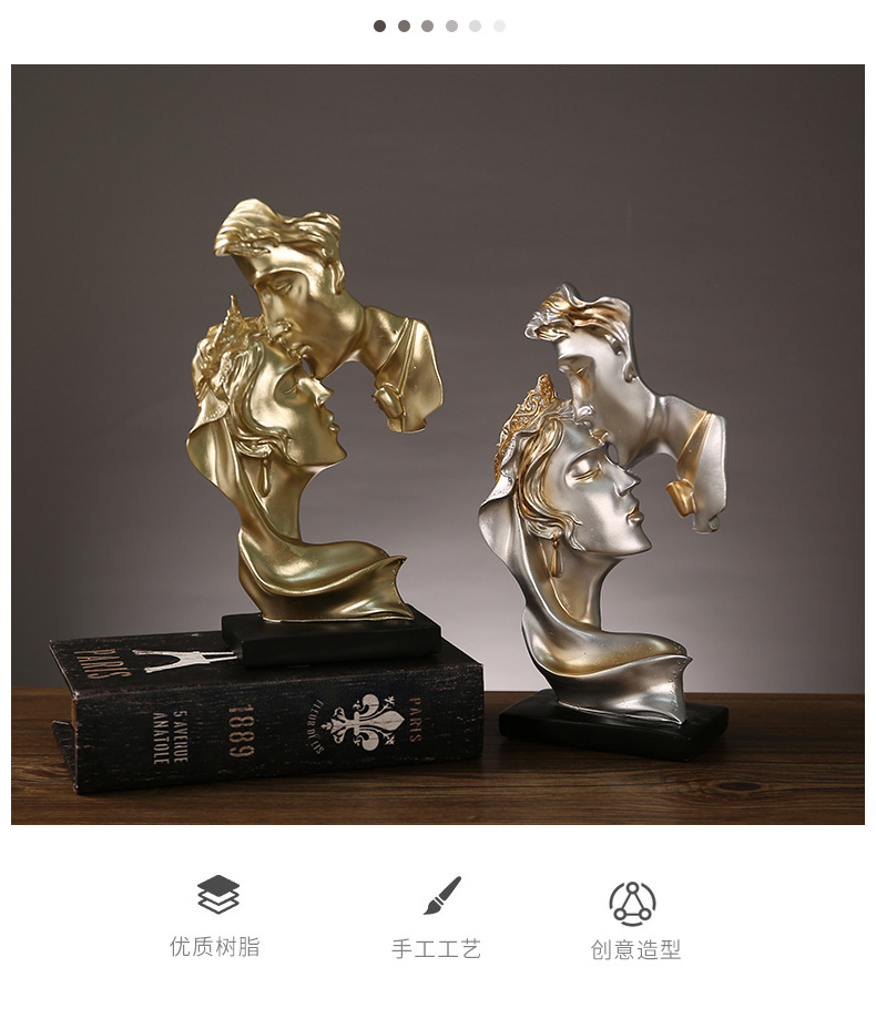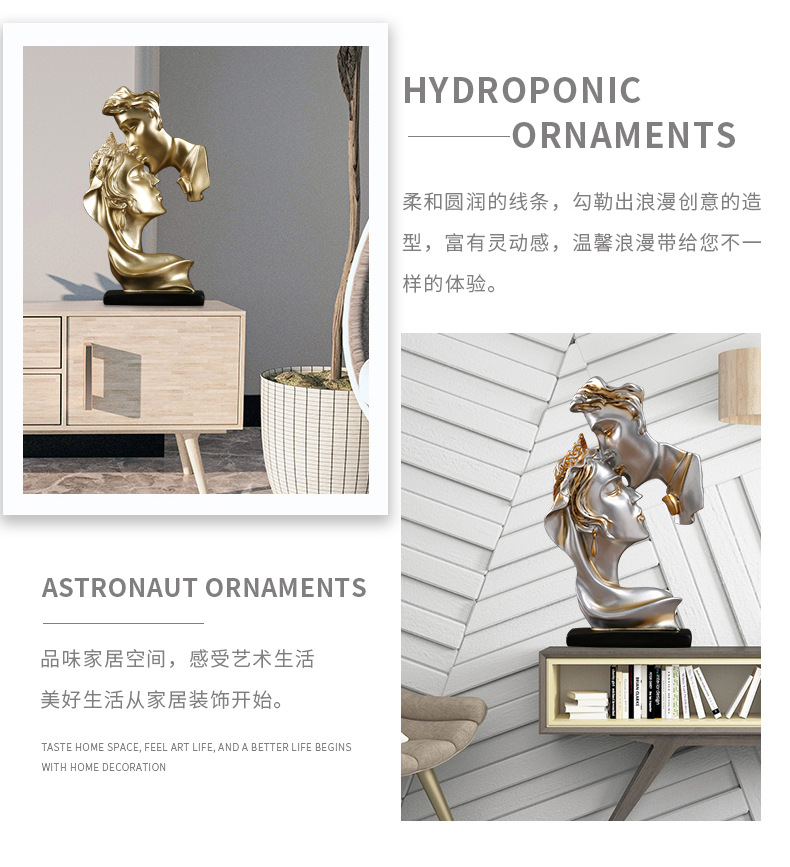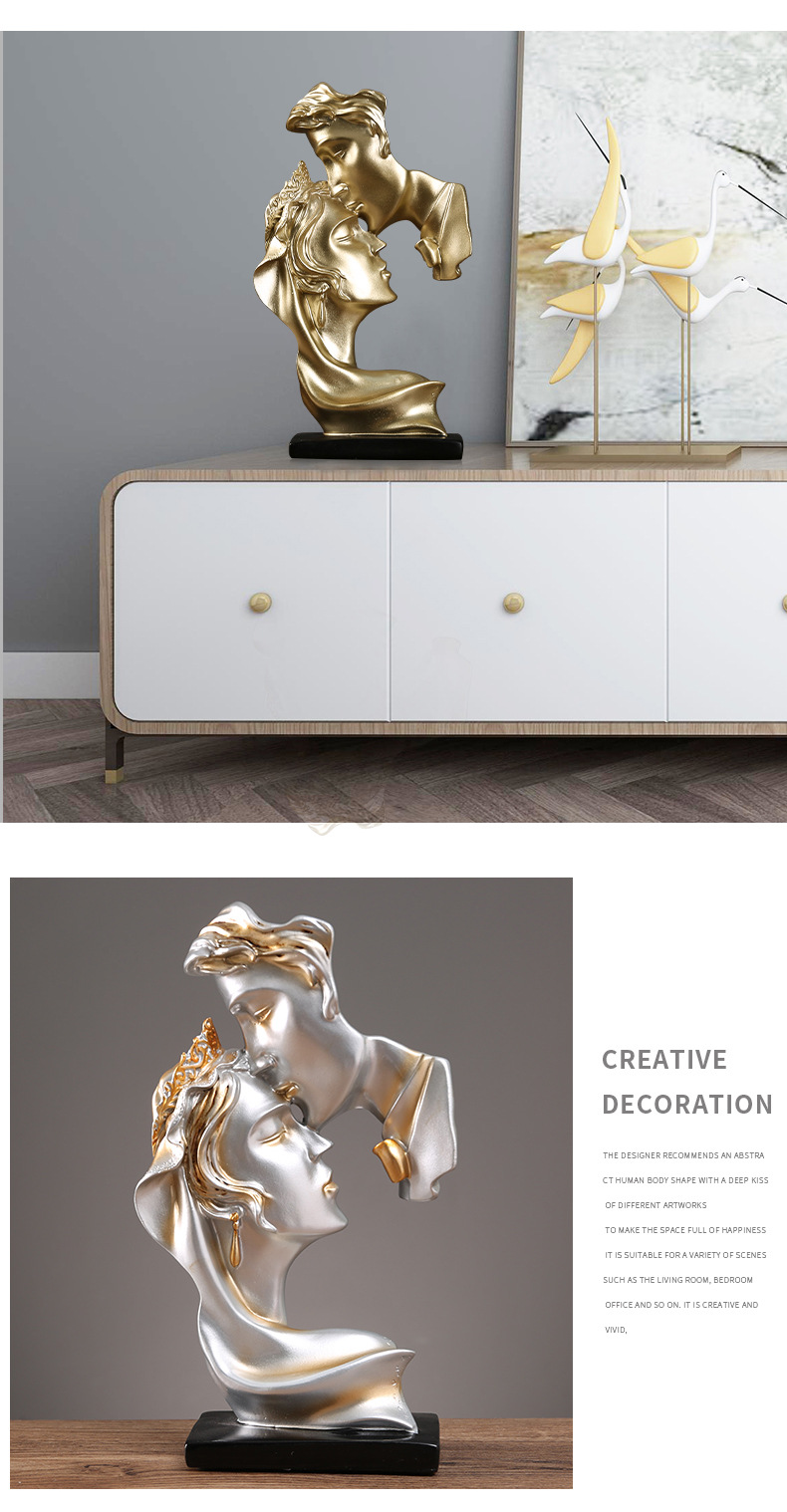 One Kiss Love Light 럭셔리 커플 동상 수지 공예 장식품 홈 거실 와인 캐비닛 현관 장식