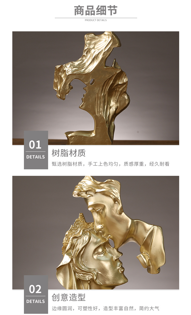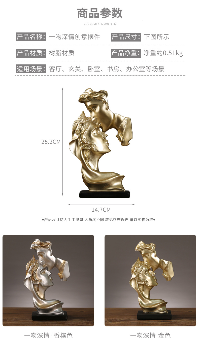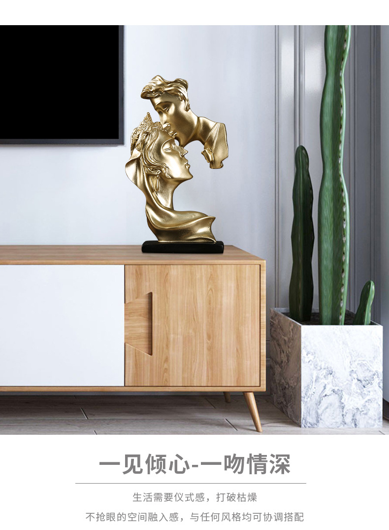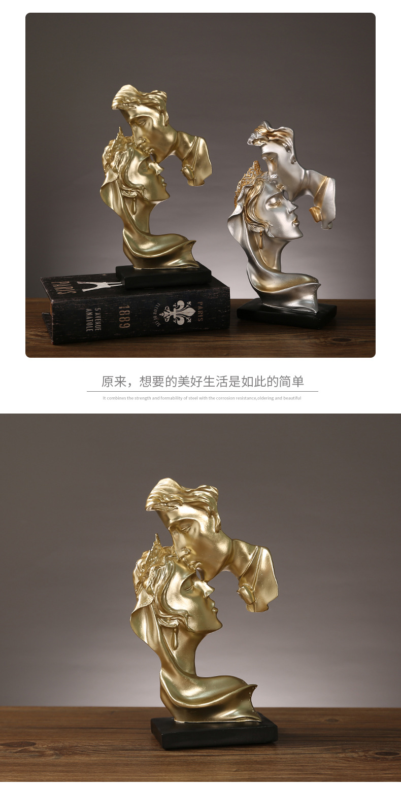 One Kiss Love Light 럭셔리 커플 동상 수지 공예 장식품 홈 거실 와인 캐비닛 현관 장식