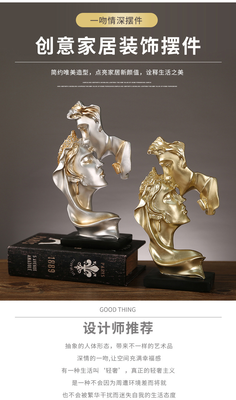 One Kiss Love Light 럭셔리 커플 동상 수지 공예 장식품 홈 거실 와인 캐비닛 현관 장식스토어 가기