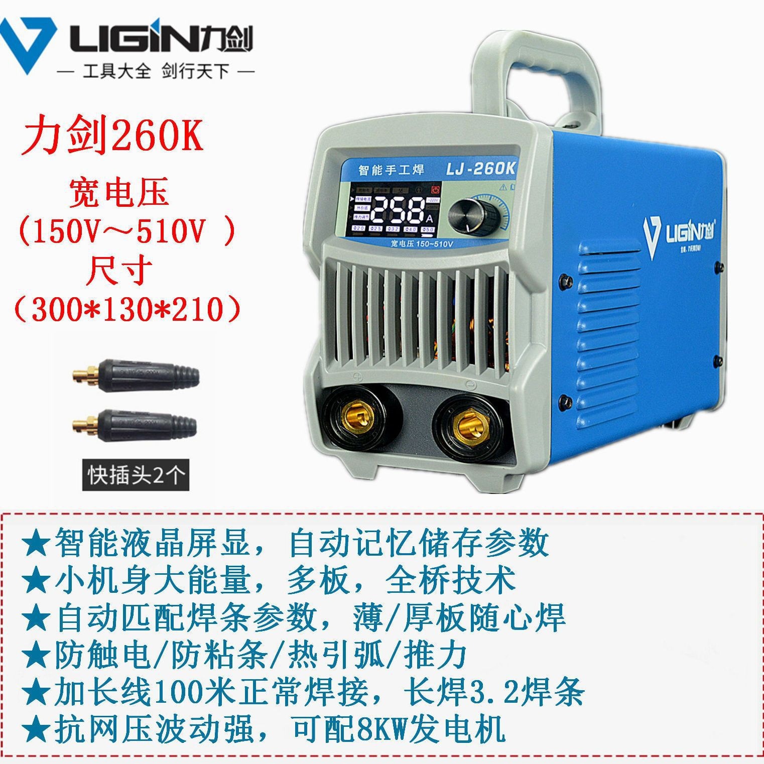 • 힘검 LJ-260K(넓은 전압/2선) + 5m 용접 와이어 + 마스크 + 장갑 + 용접 클램프 +