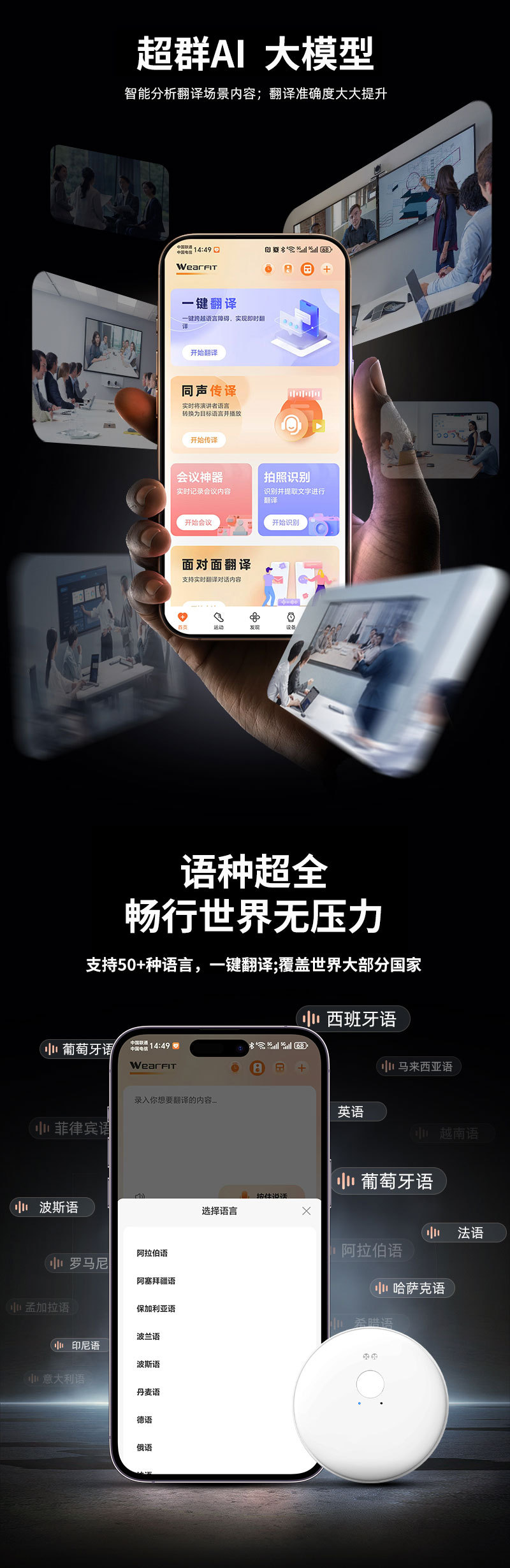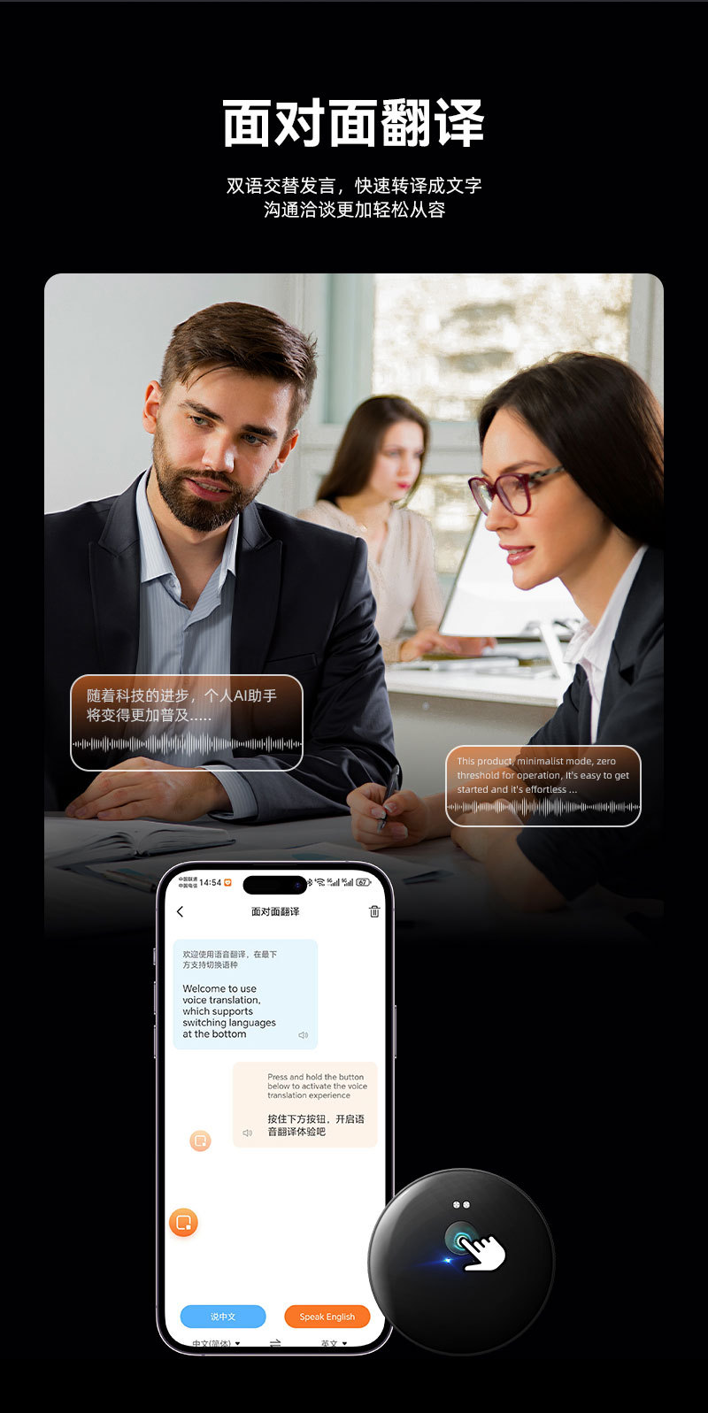 新款Ai102实时智能翻译机同声翻译50+种语言ai翻译助手出国旅游