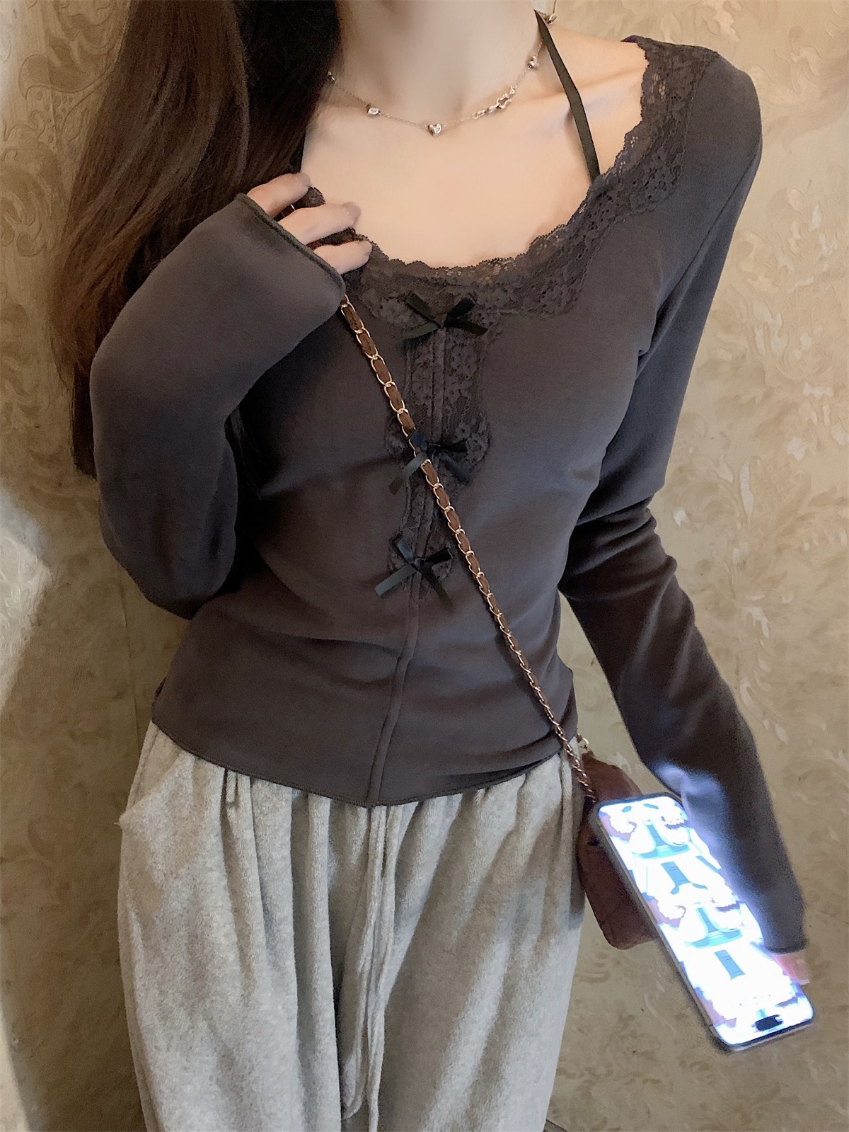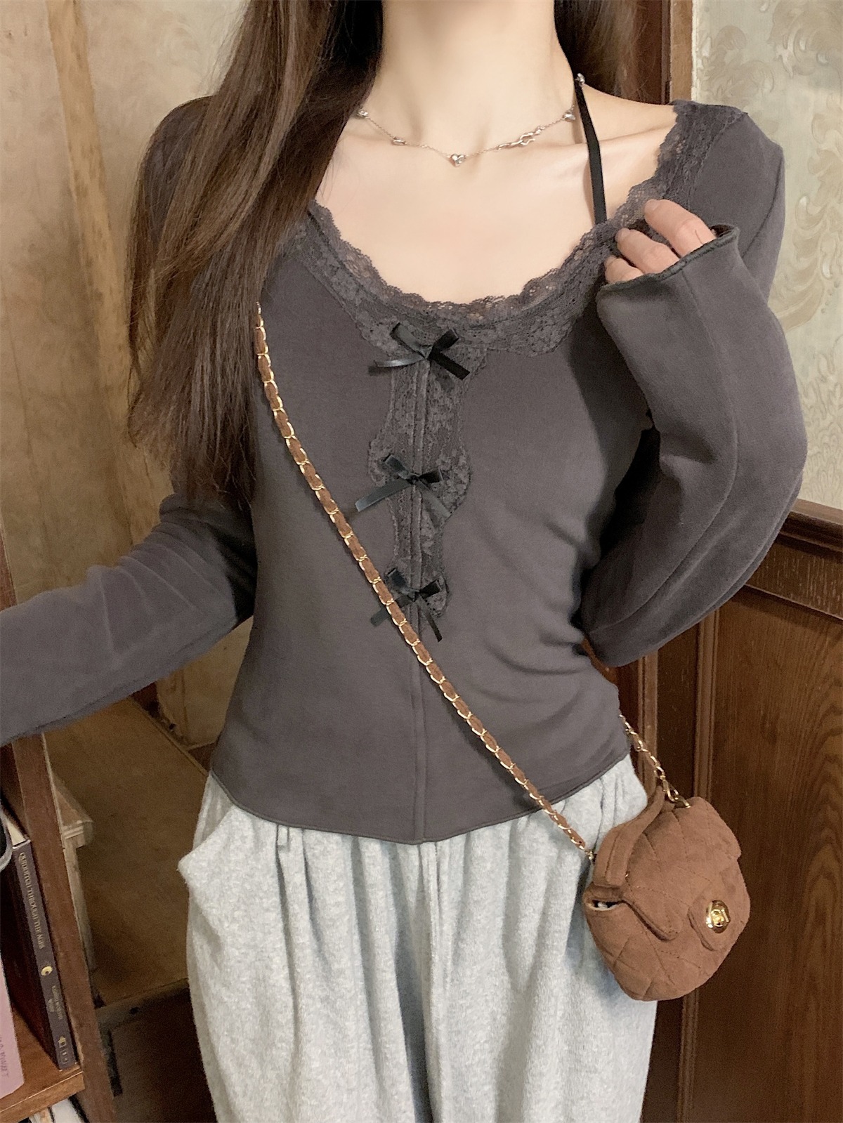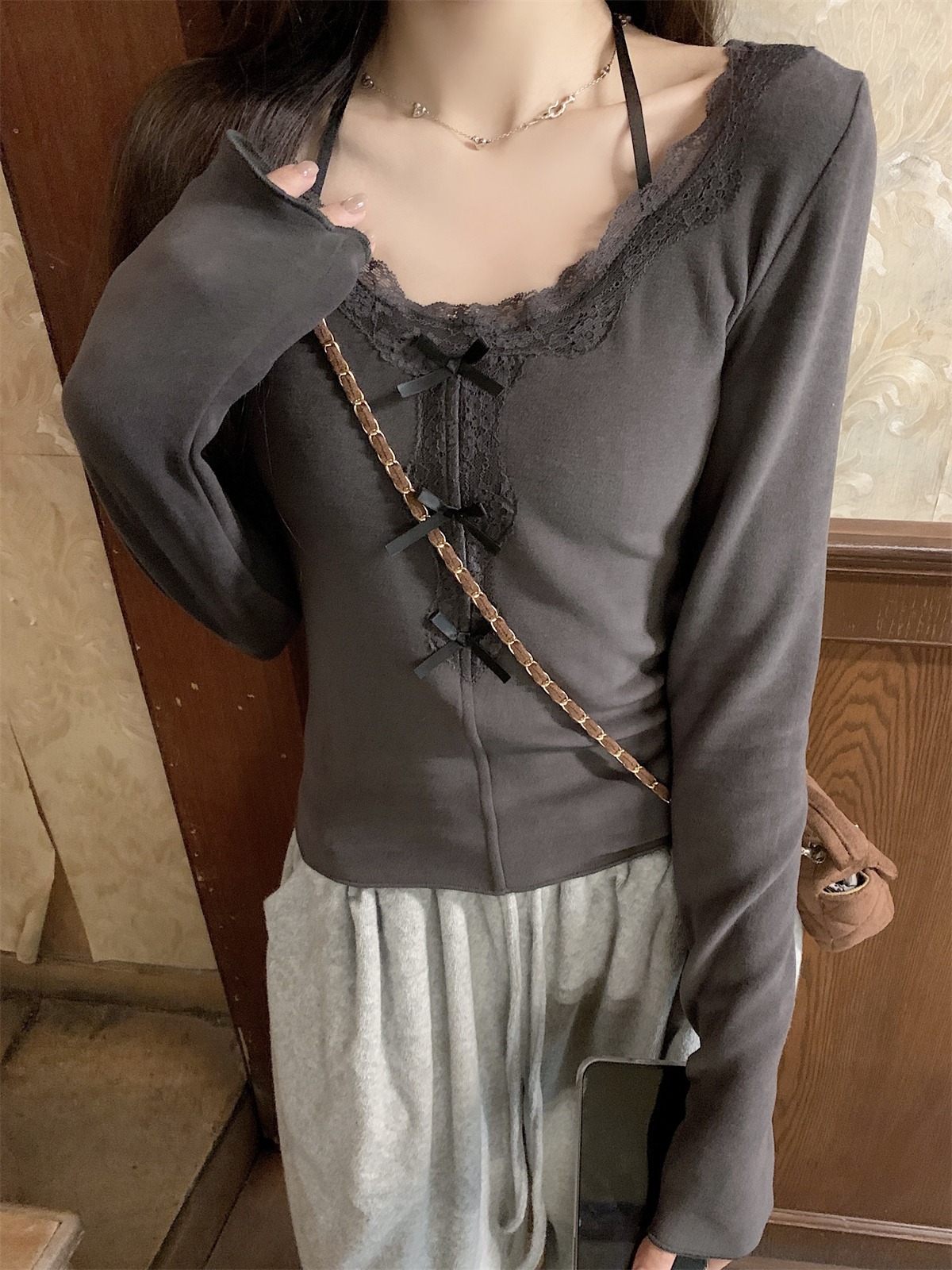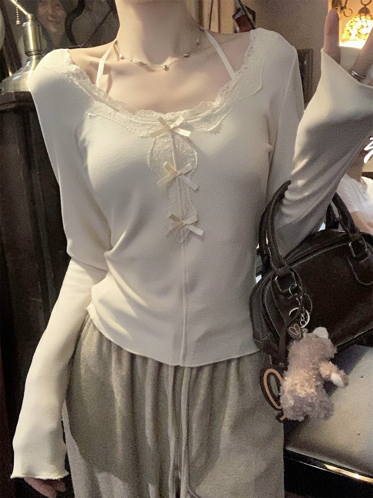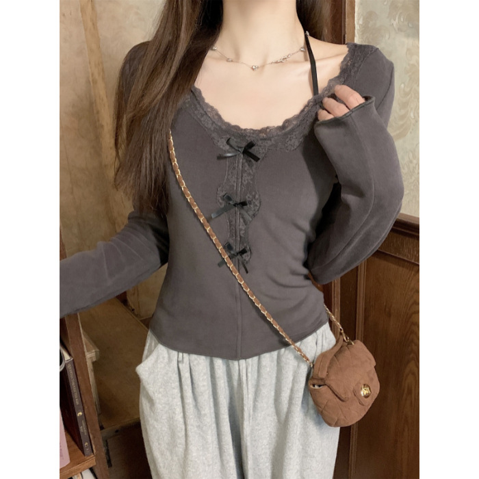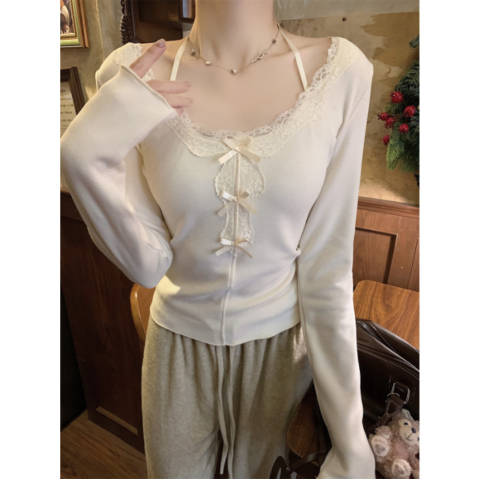 국경 도매 가을과 겨울 스레드 벨벳 인테리어 따뜻한 슬림 기질 섹시한 레이스 긴 소매 티셔츠 여성베이스 셔츠스토어 가기