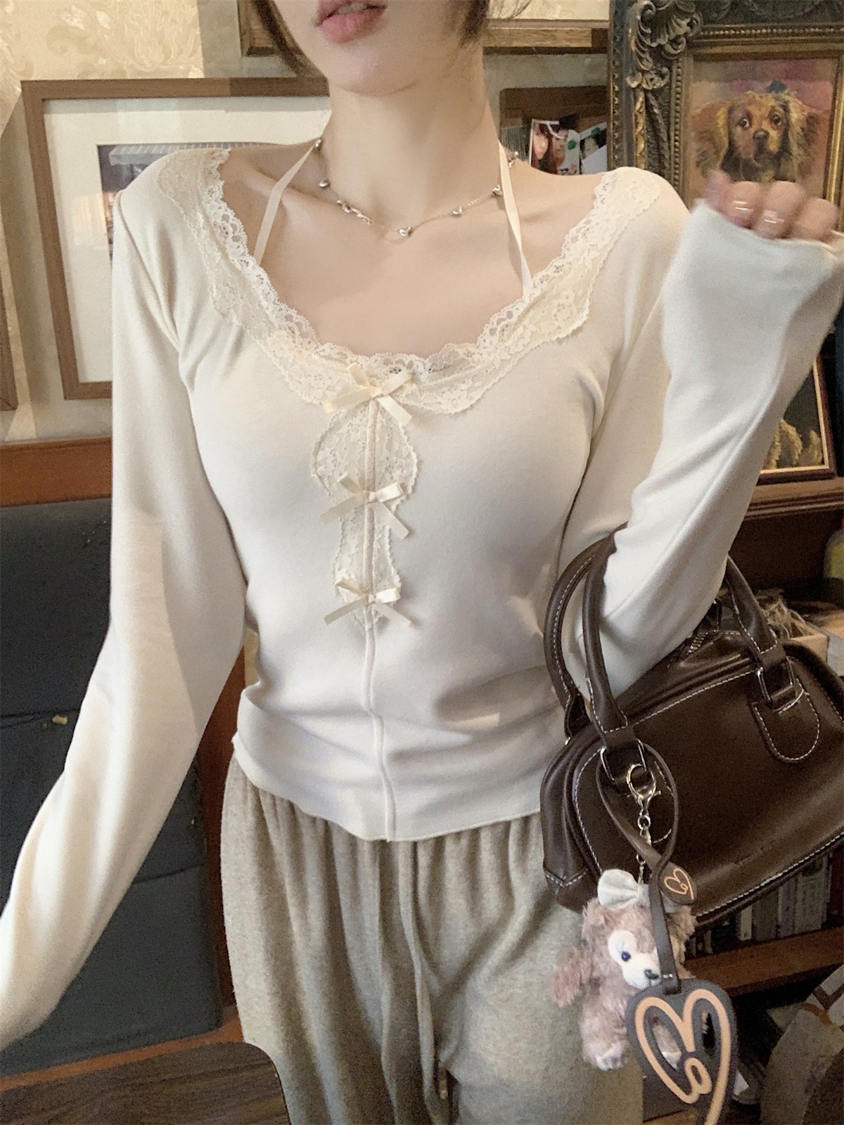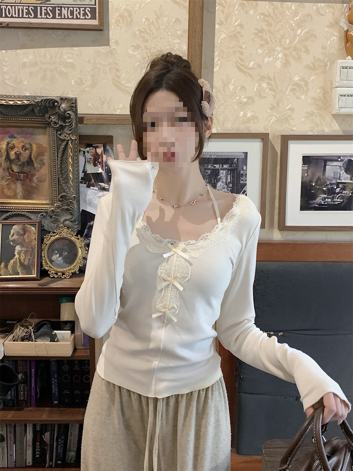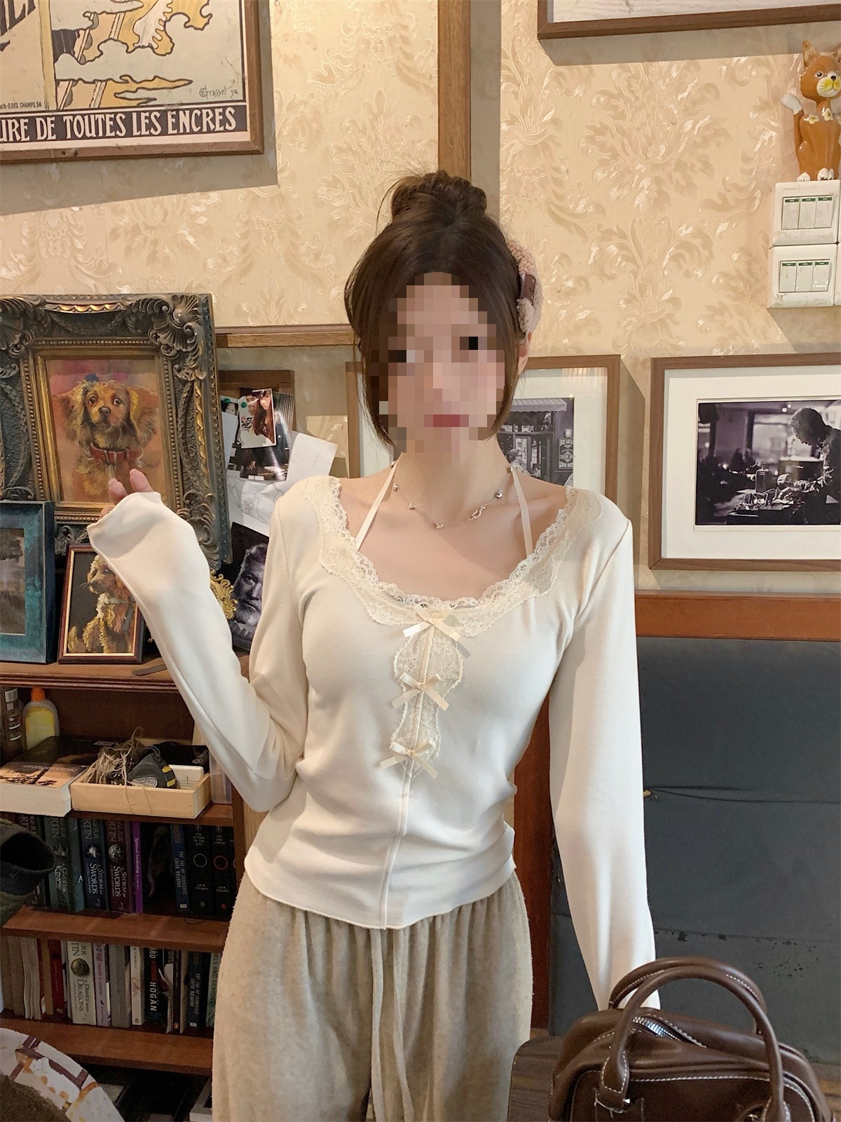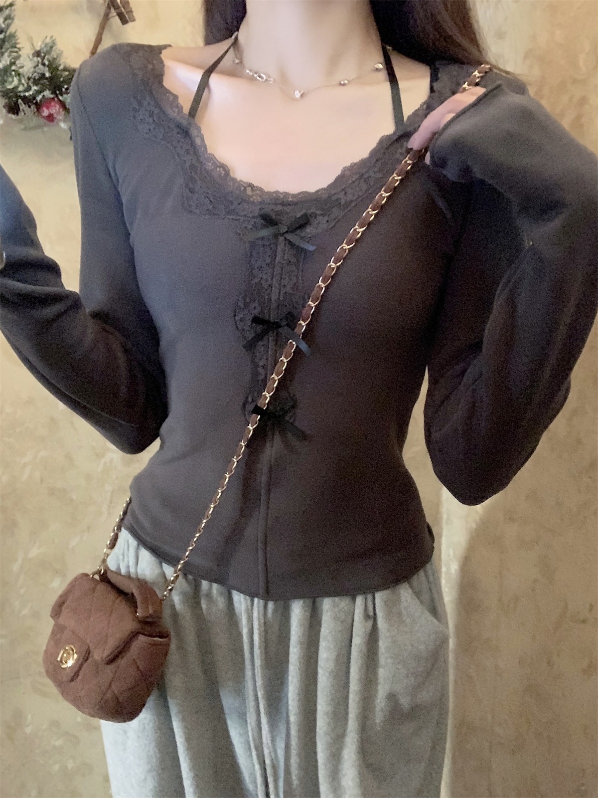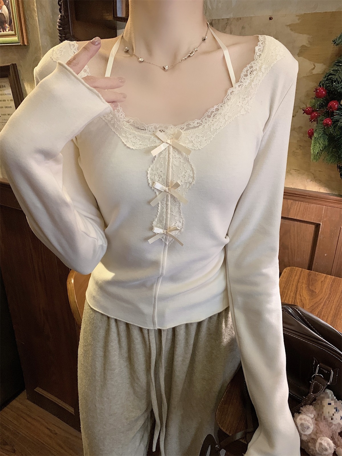 국경 도매 가을과 겨울 스레드 벨벳 인테리어 따뜻한 슬림 기질 섹시한 레이스 긴 소매 티셔츠 여성베이스 셔츠스토어 가기