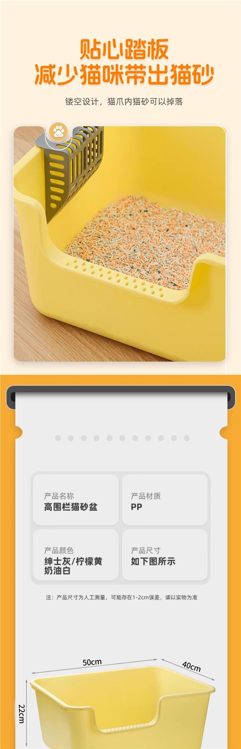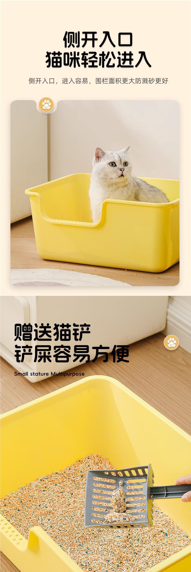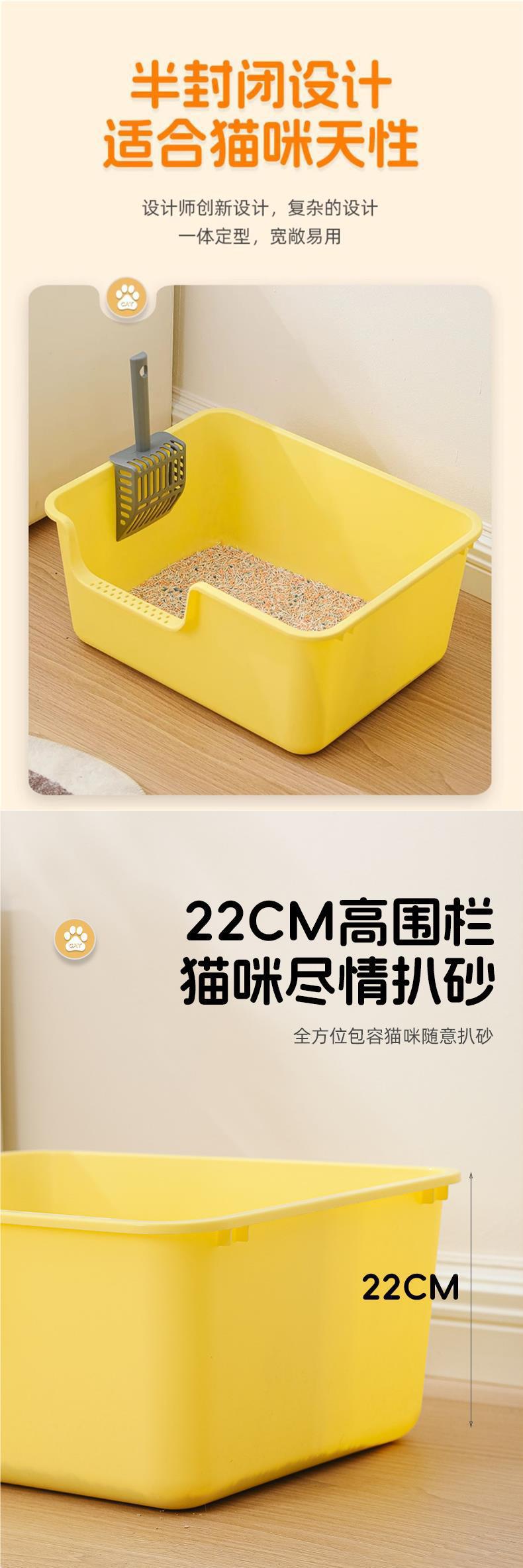 • (업그레이드 및 넓어진 고양이 배변 상자) 50CM 노란색 대형 [무료 고양이 배변 국자]