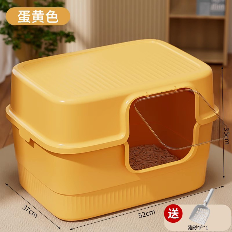 • 완전 밀폐형 고양이 배변 상자 치즈 노란색(고양이 배변 국자 포함)