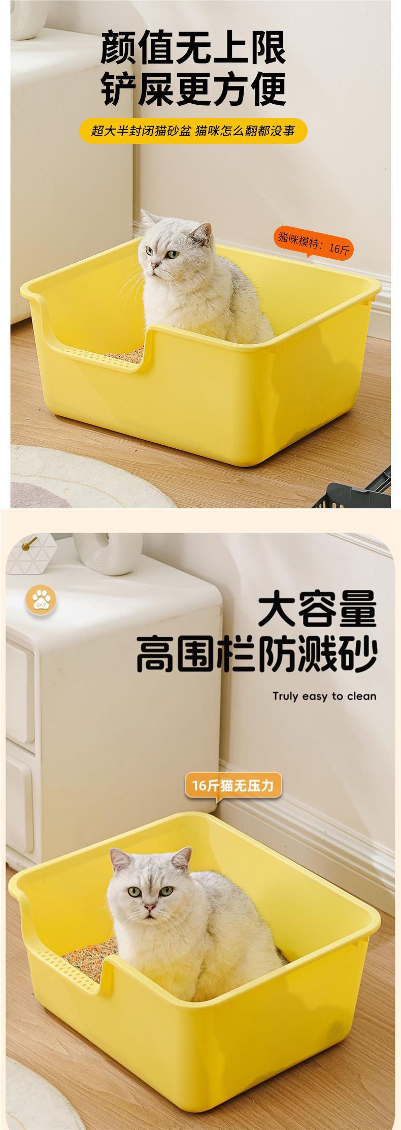 • 80CM 빅맥 고양이 배변 상자 노란색(뚱뚱한 고양이와 여러 고양이가 있는 가족에게 선호됨) [무료 고양이 배변 상자