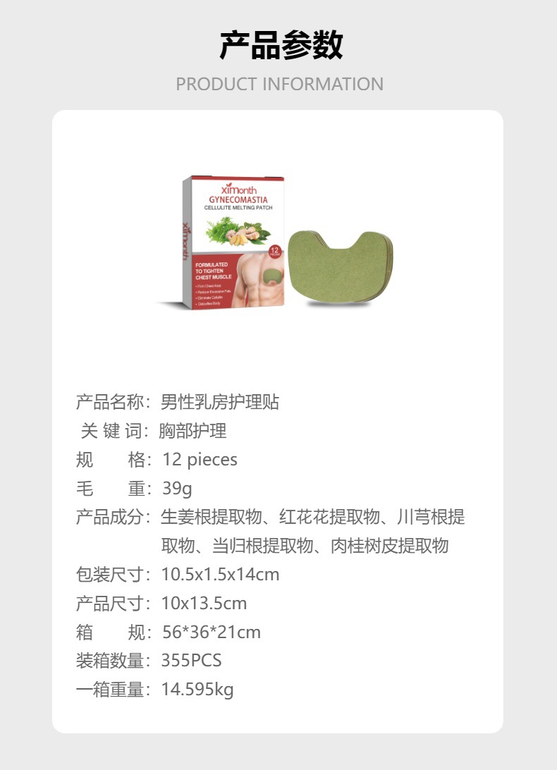 Ximonth 남성 유방 관리 패치 남성 가슴 보습 스킨 케어 패치