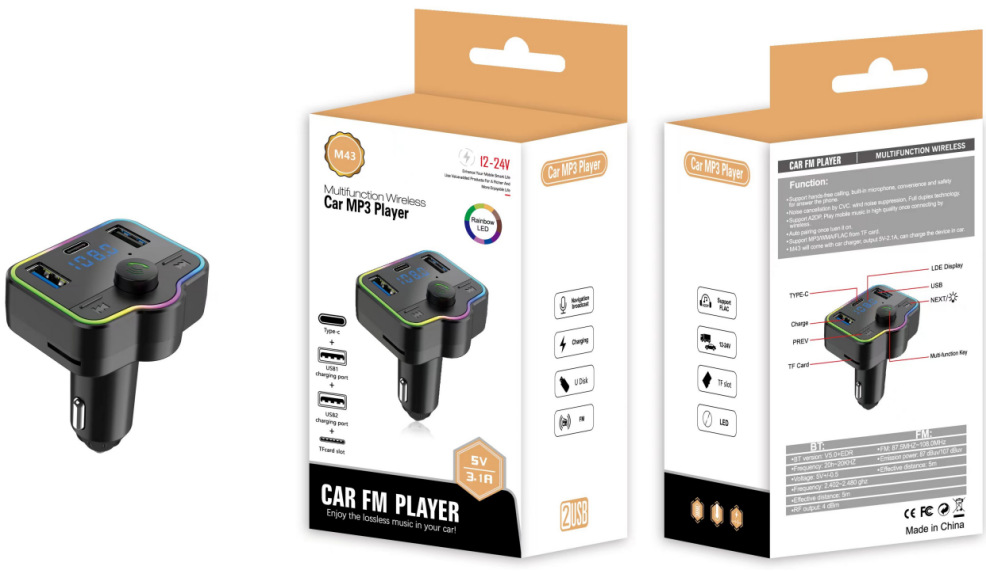 M43 국경 자동차 mp3 플레이어 자동차 블루투스 자동차 충전기 송신기 자동차 담배 라이터