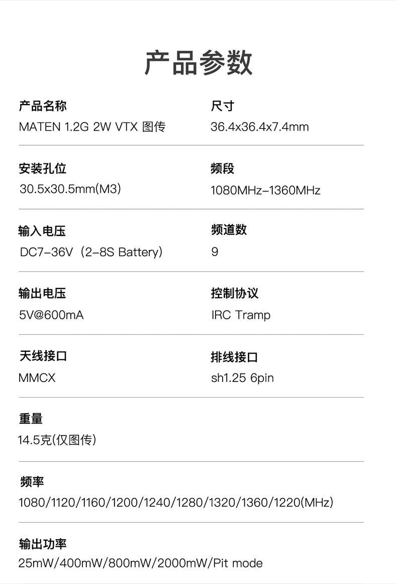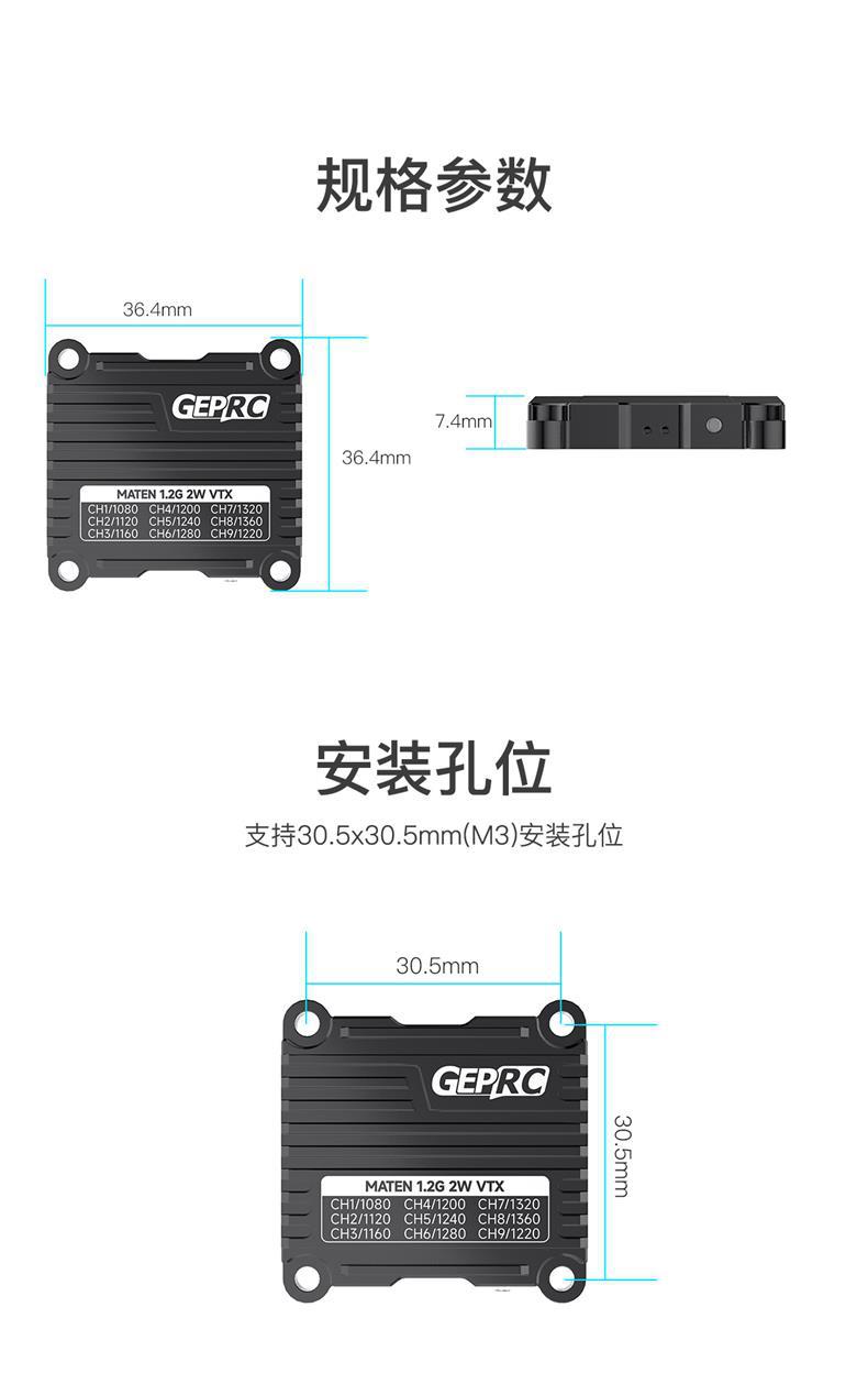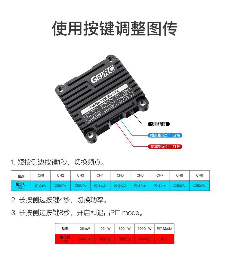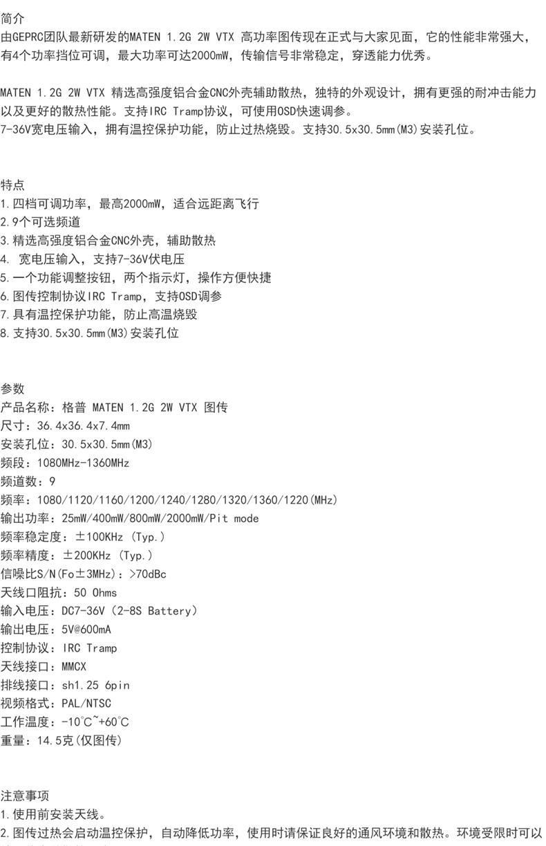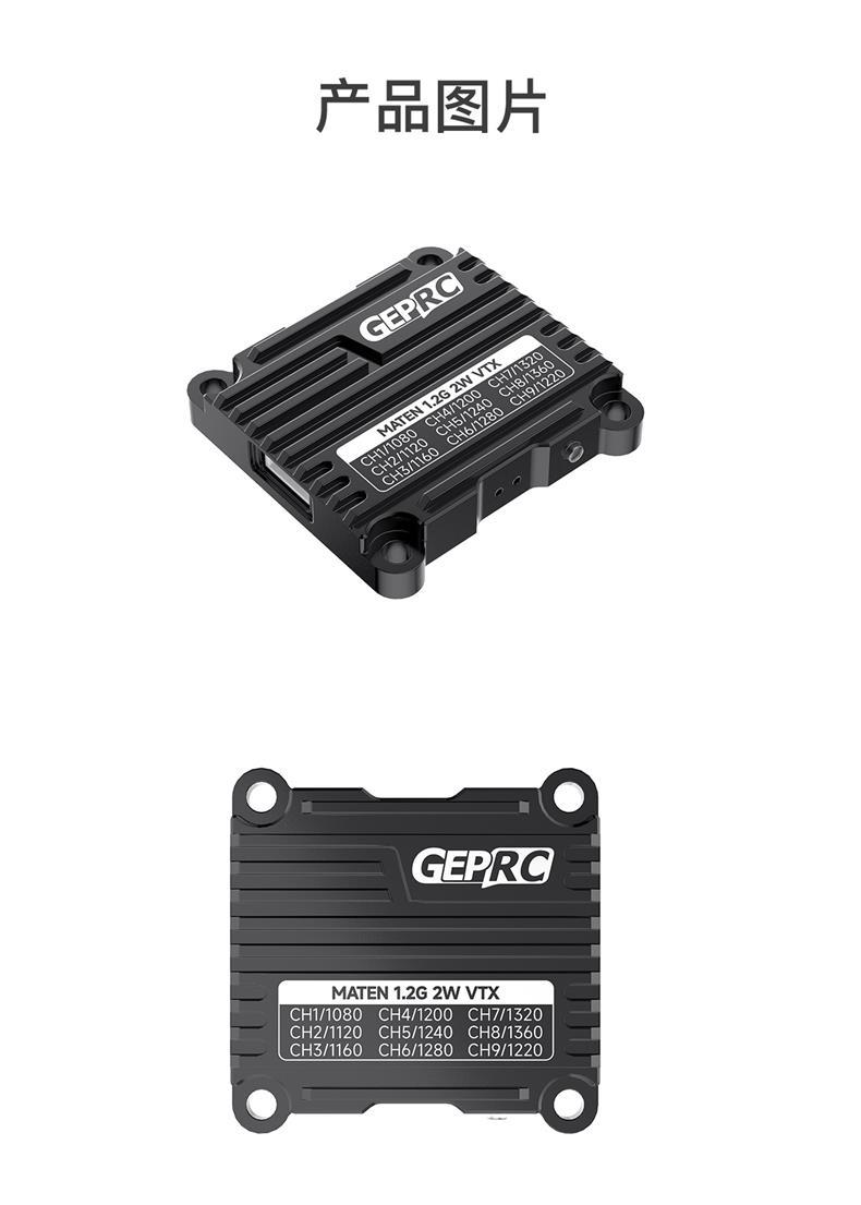 GEPRC Gepp MATEN 1.2G 2W VTX 교차 기계 그림 전송 방열 신호 안정화 OSD 조정 참조